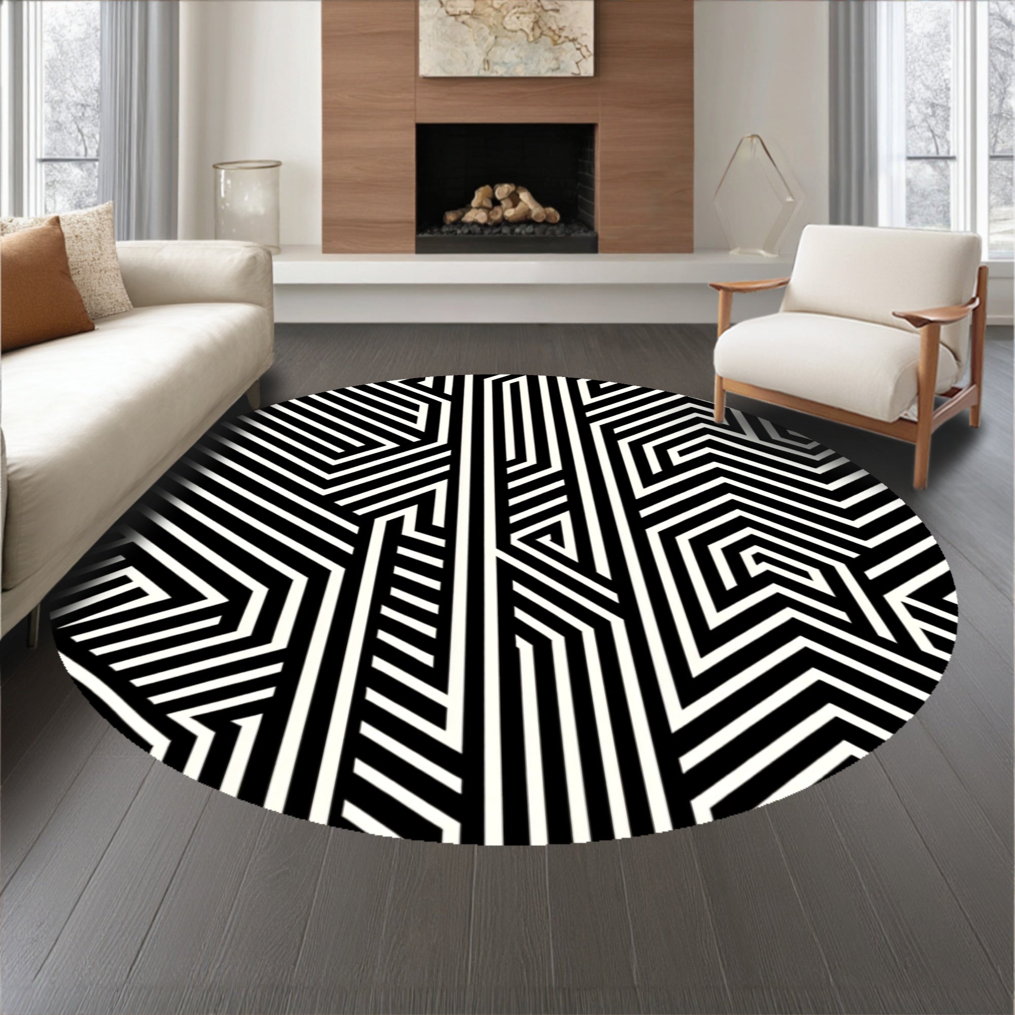Ultra Soft Area Rug, Non Slip, Stain Resistant, Washable Area Rugs for Living Room, Bedroom, Monochrome Art Chevron Illusion Motif(Black) Overview: