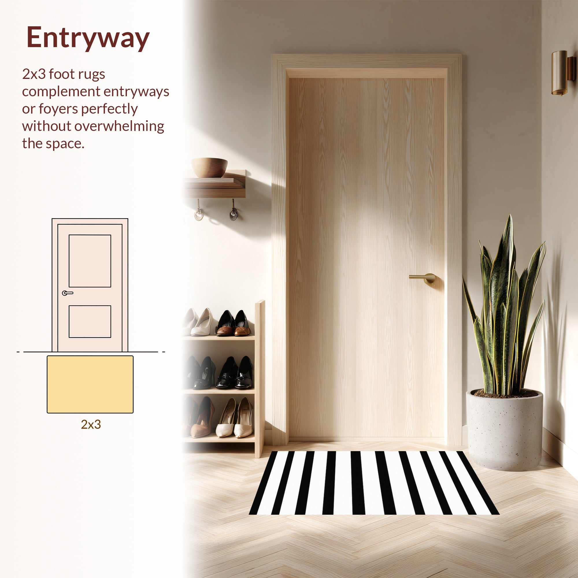 Flatwoven High Traffic Area Rug, Monochrome Cabana Striped for Entryway Chic, Non Slip, Stain Resistant, Washable Area Rugs for Living Room, Bedroom (Black) Overview: