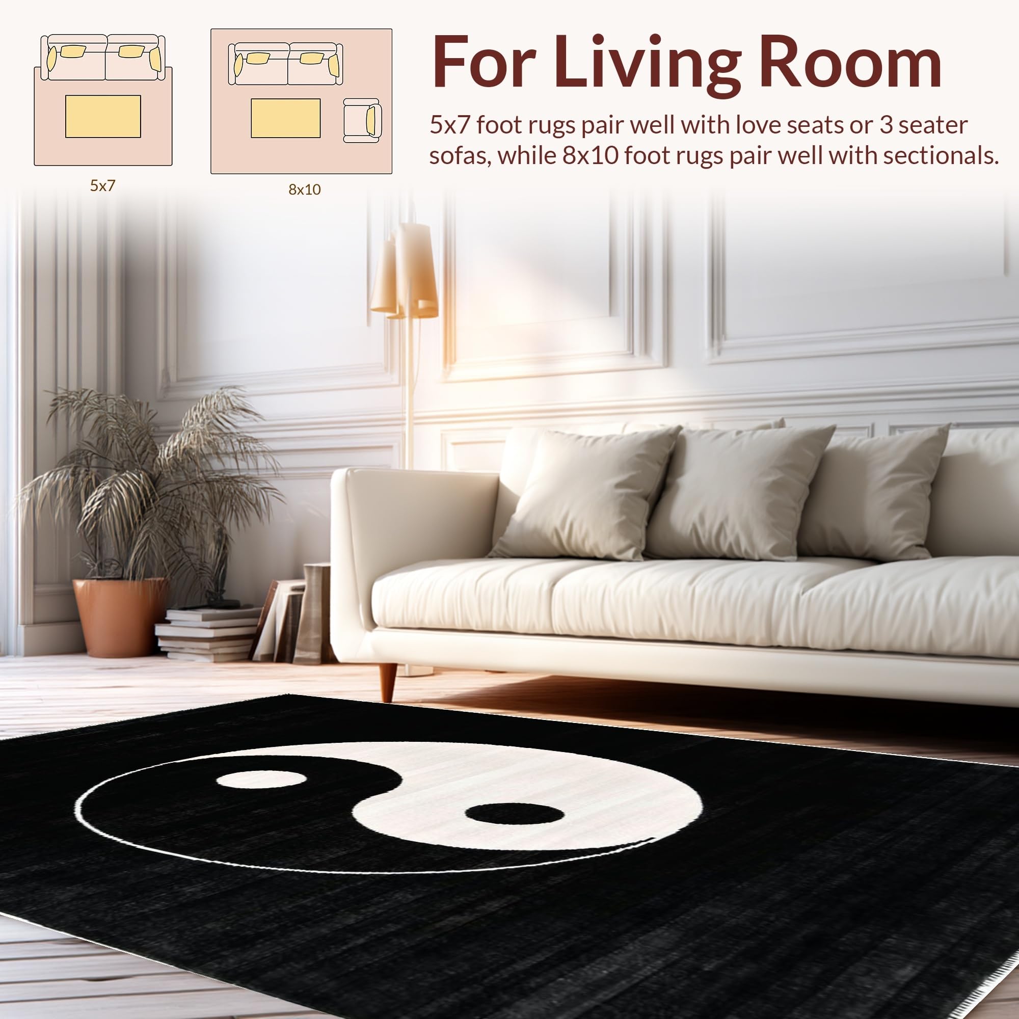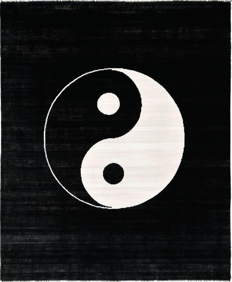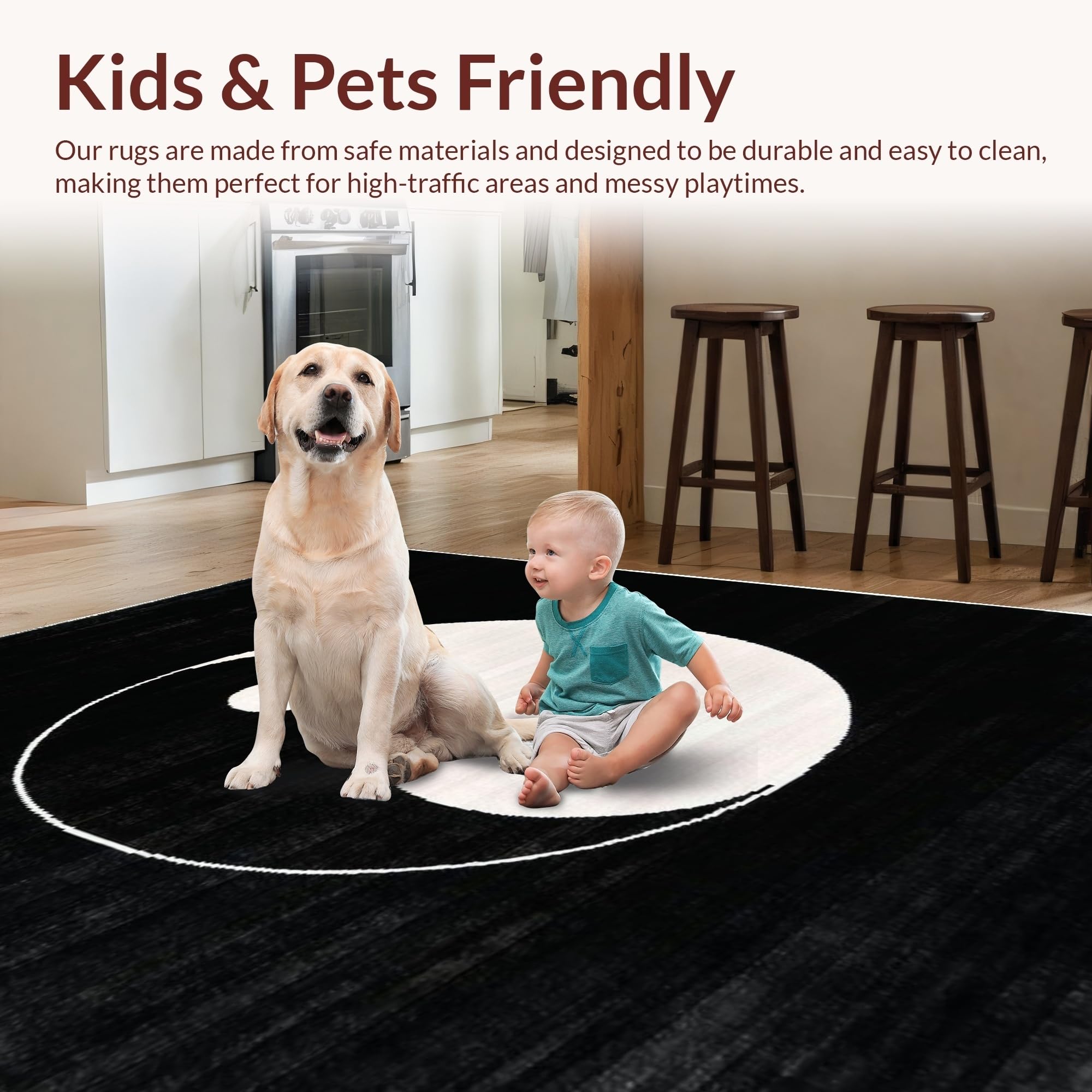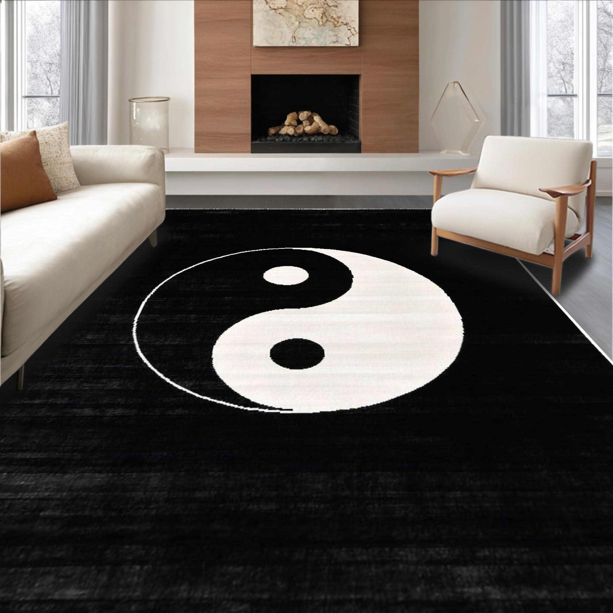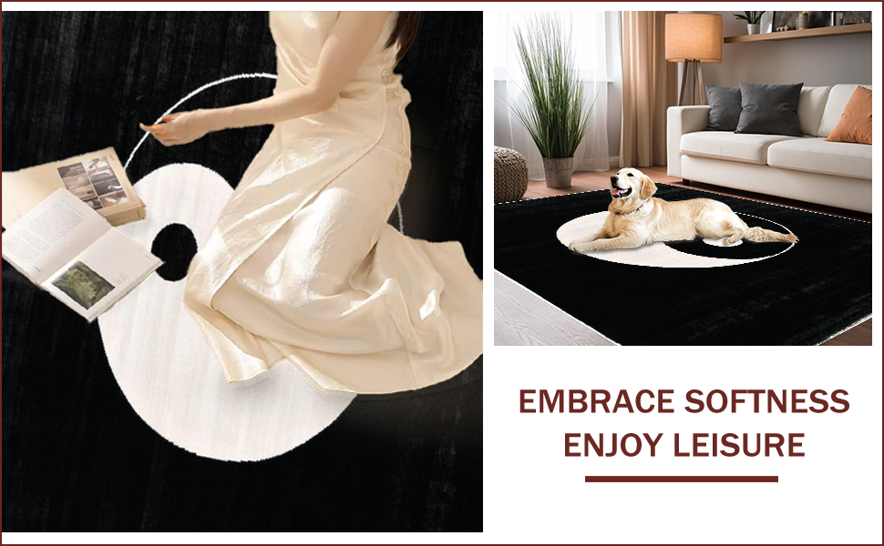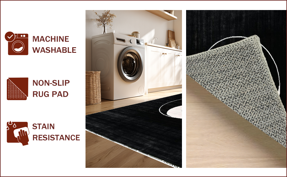 Ultra Soft Area Rug, Non Slip, Stain Resistant, Washable Area Rugs for Living Room, Bedroom, Monochrome Circular Geometric Motif(Black) Overview: