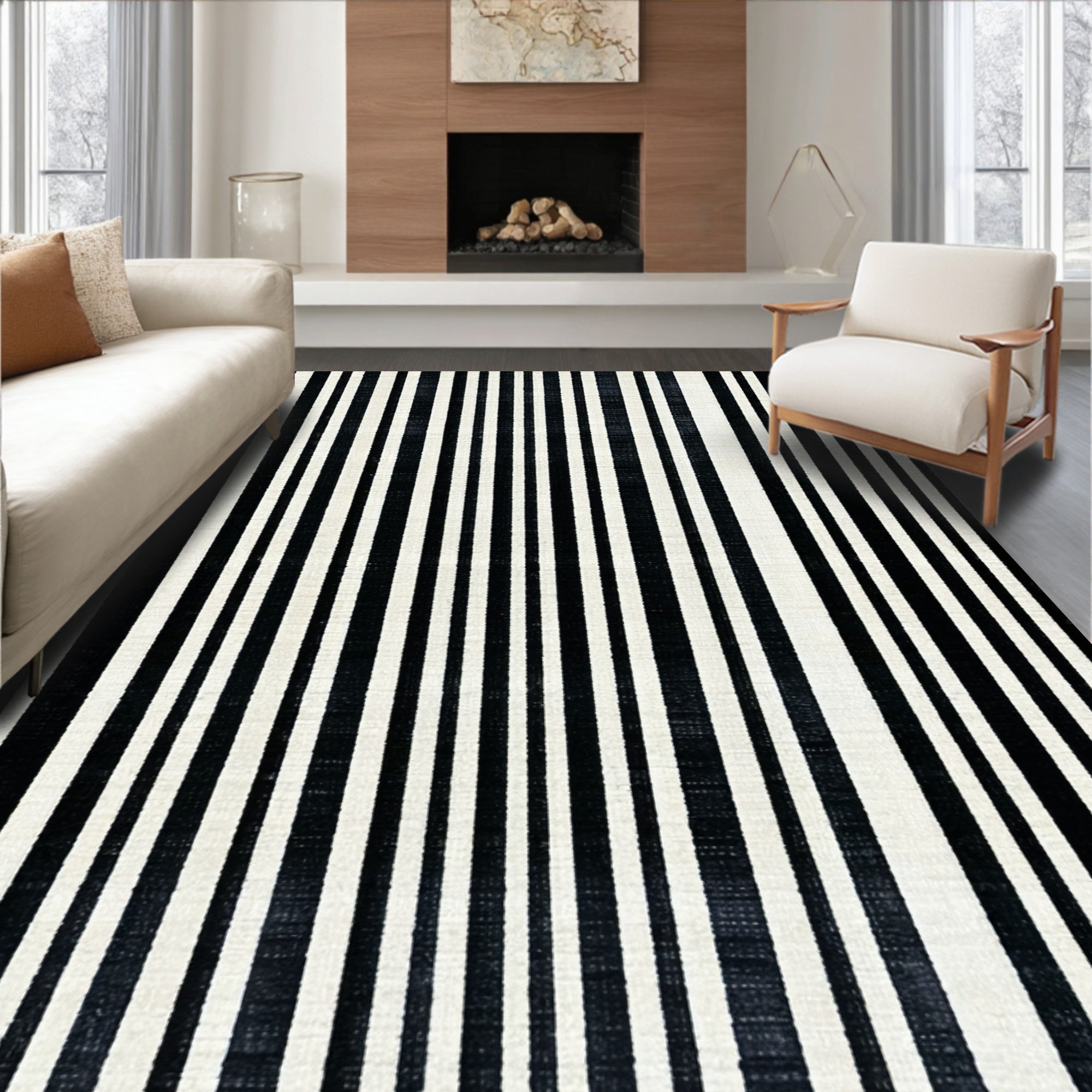 Ultra Soft Area Rug, Non Slip, Stain Resistant, Washable Area Rugs for Living Room, Bedroom, Monochrome Maze: Graphic Stripe Woven Accent Rug for Entry(Black) Overview: