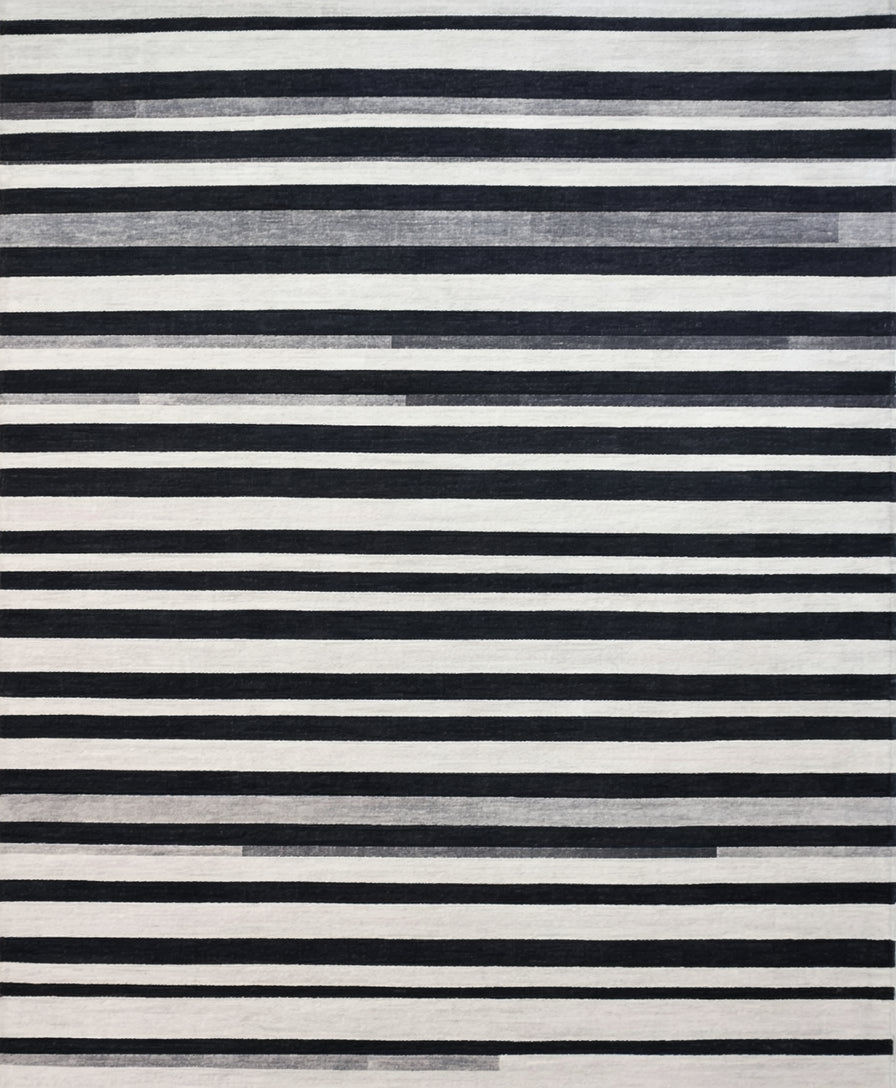 Monochrome Striped Flat Woven Floor Covering With Farmhouse Inspired Design(Gray)