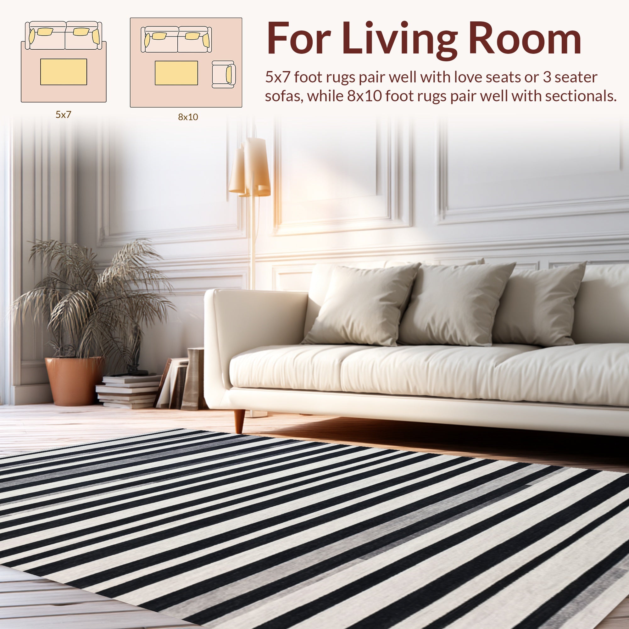 Ultra Soft Area Rug, Non Slip, Stain Resistant, Washable Area Rugs for Living Room, Bedroom, Monochrome Striped Flat Woven Floor Covering With Farmhouse Inspired Design(Gray) Overview: