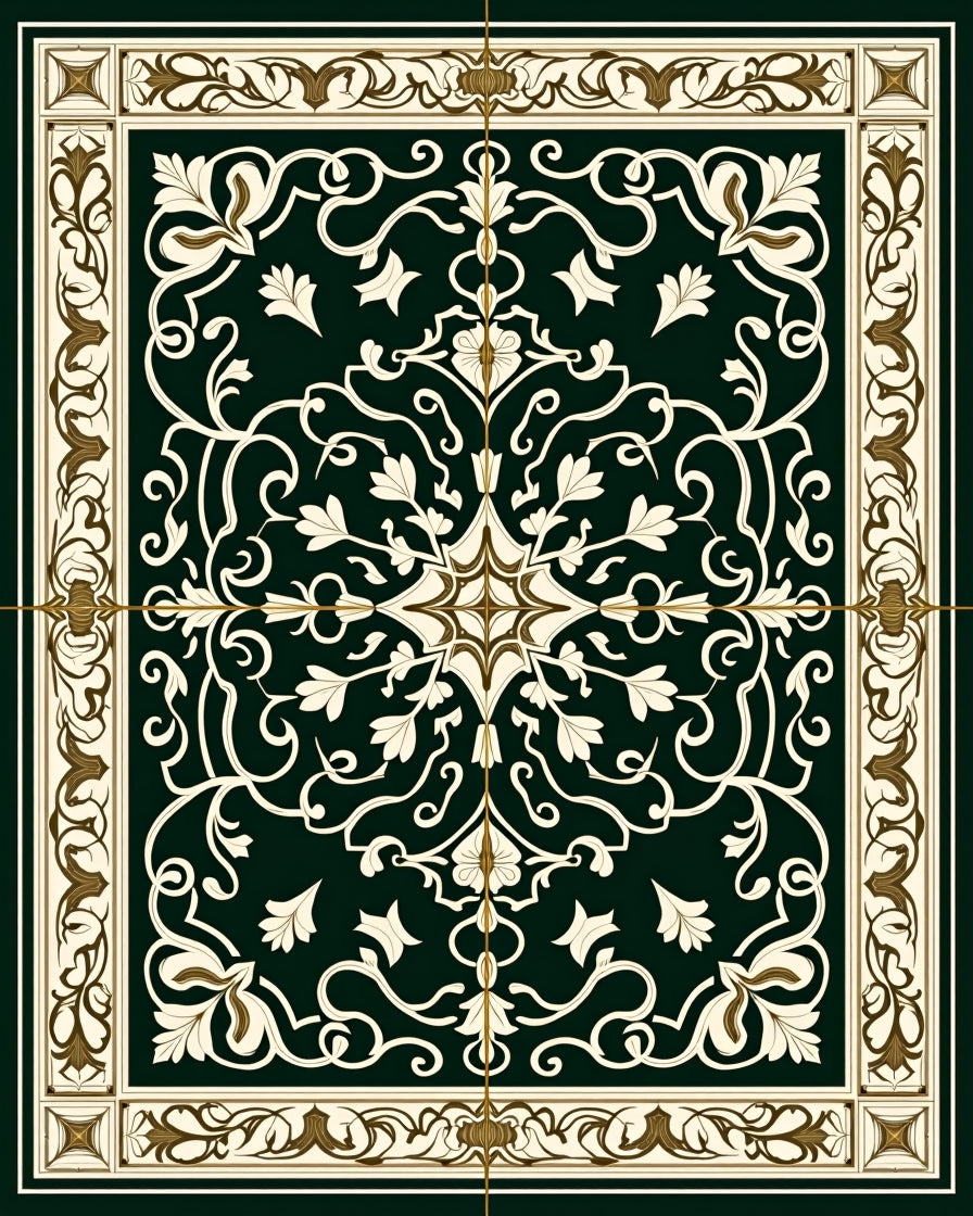 Moody Florals Medallion Botanical Art Nouveau Damask(Green)
