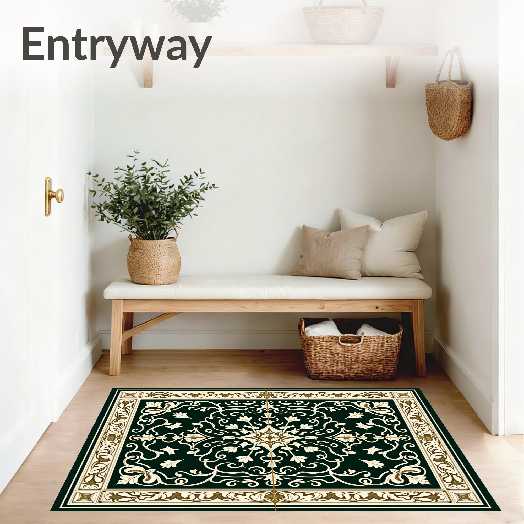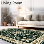 Flatwoven High Traffic Area Rug, Moody Florals Medallion Botanical Art Nouveau Damask, Non Slip, Stain Resistant, Washable Area Rugs for Living Room, Bedroom (Green) Overview: