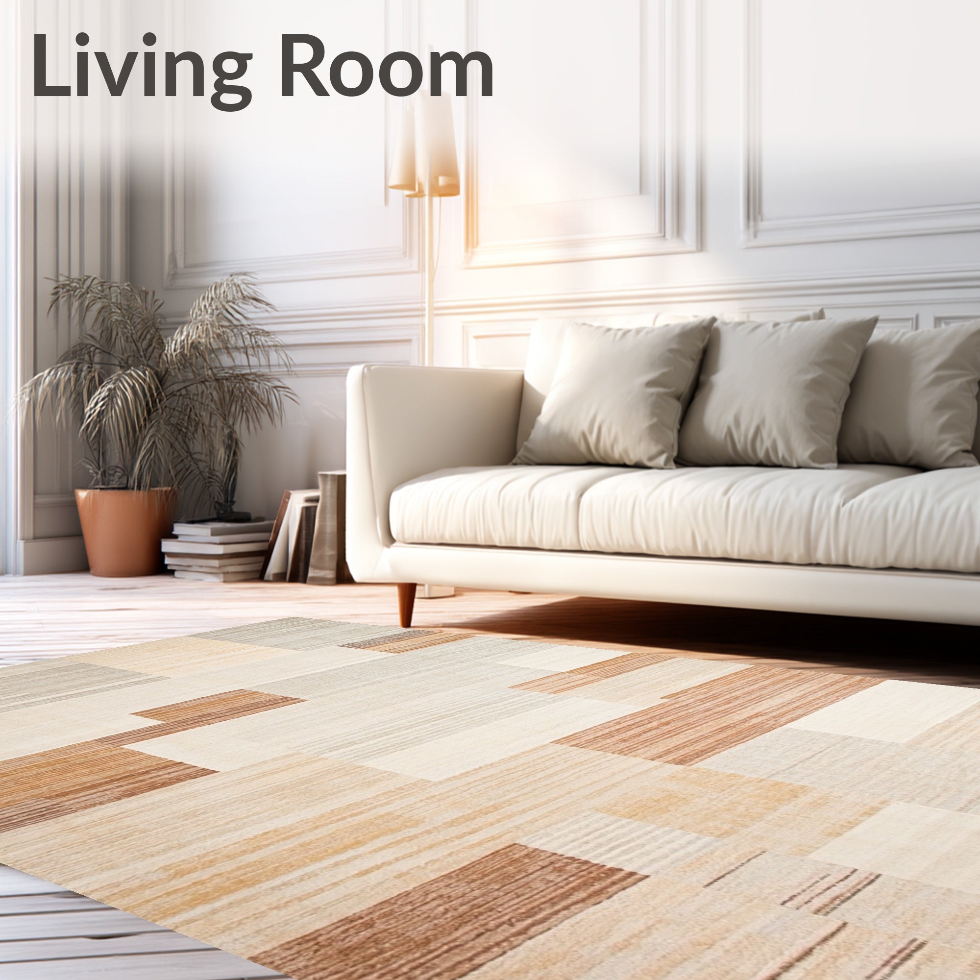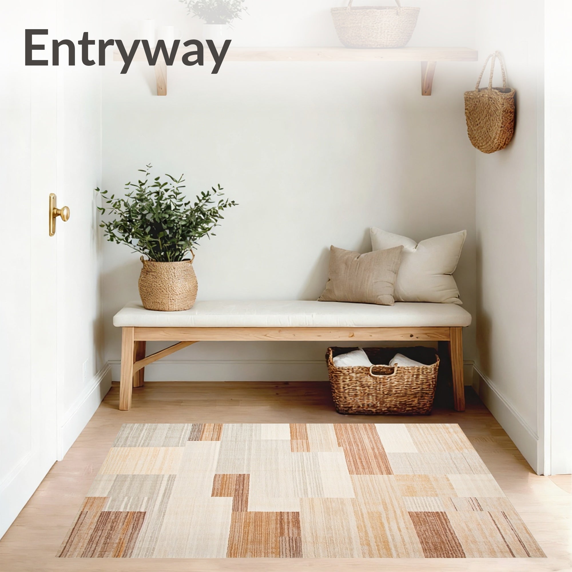 Ultra Soft Area Rug, Non Slip, Stain Resistant, Washable Area Rugs for Living Room, Bedroom, Mountain Lodge Adorned with Fragmented Timber Lines and Sand Palette(Beige) Overview: