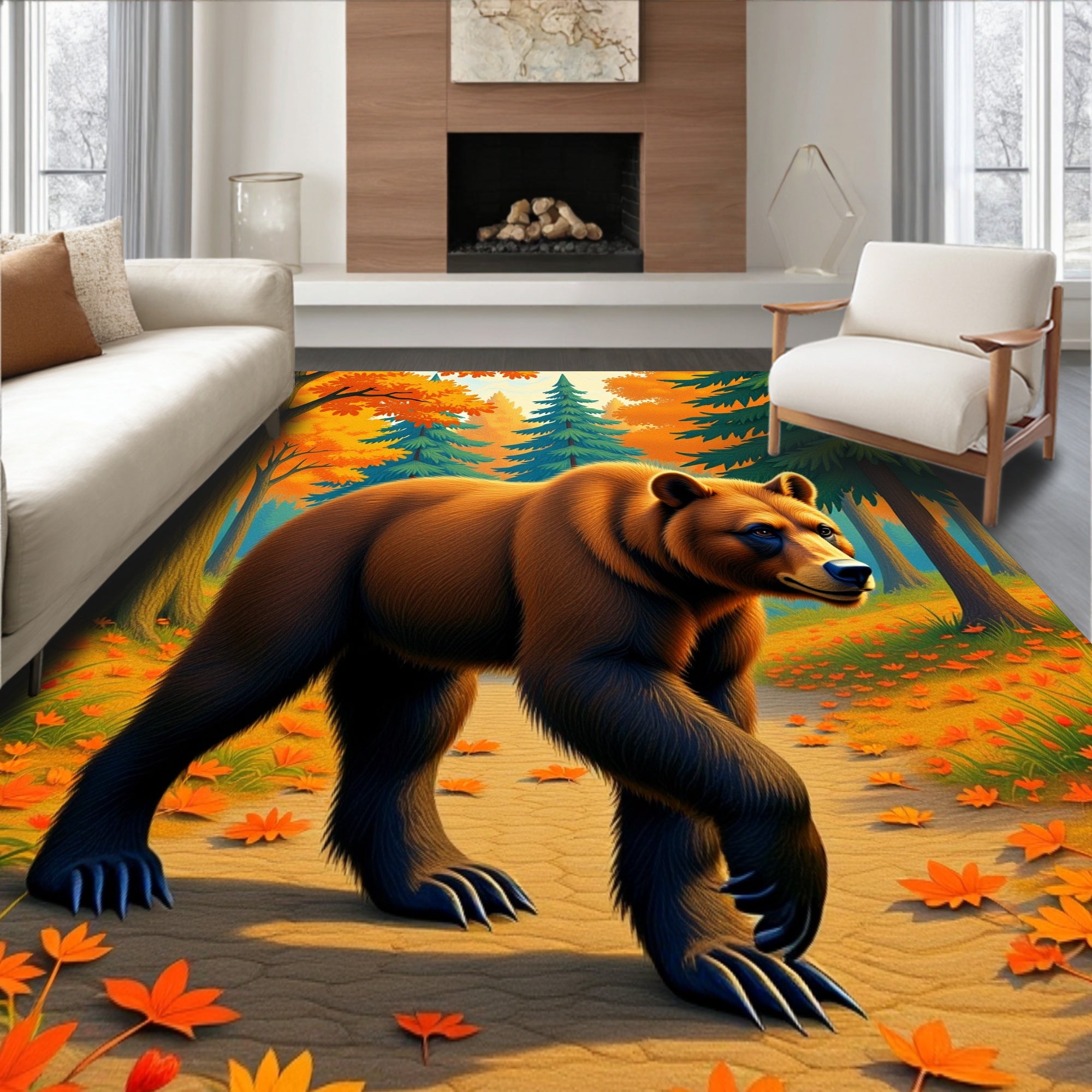 Ultra Soft Area Rug, Non Slip, Stain Resistant, Washable Area Rugs for Living Room, Bedroom, Mountain Wildlife Decorative Walking Bruin Tapestry(Brown) Overview: