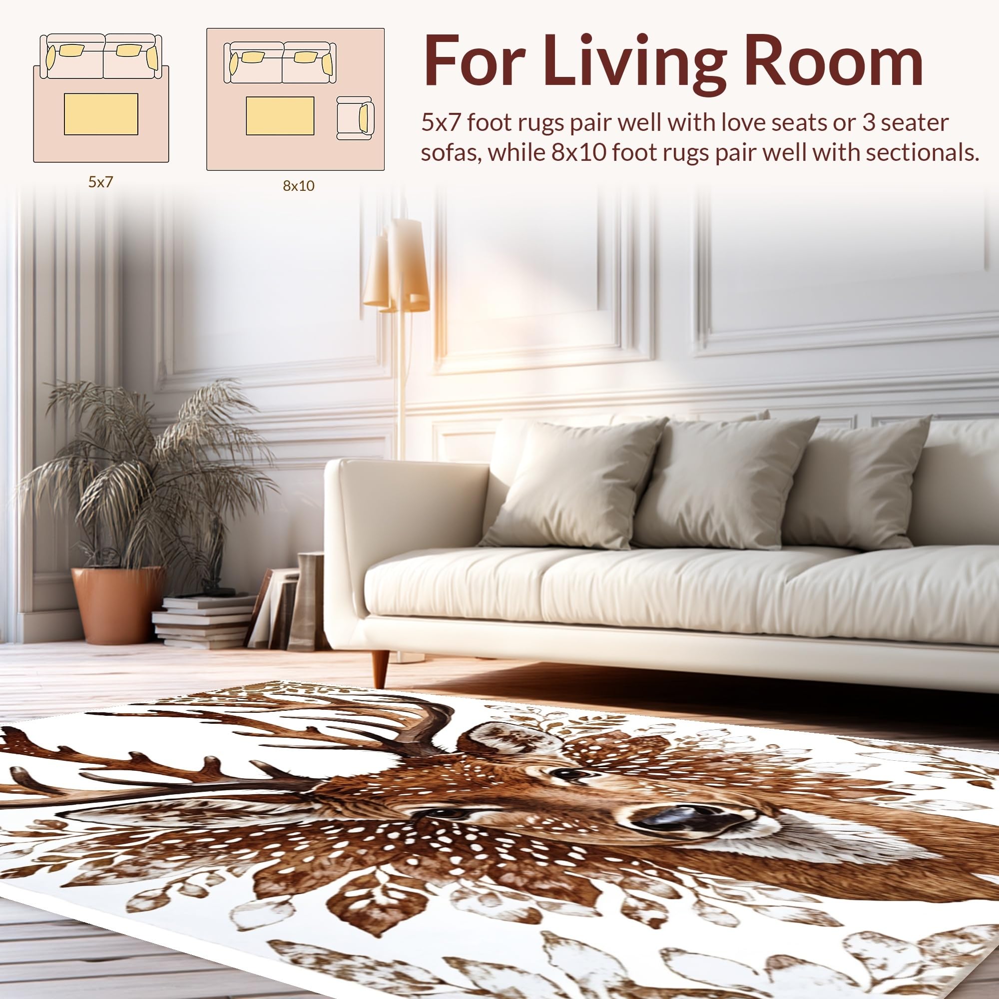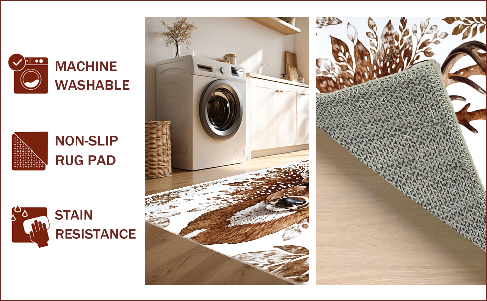 Ultra Soft Area Rug, Non Slip, Stain Resistant, Washable Area Rugs for Living Room, Bedroom, Multicolor Wildlife Living Room Area Mat(Brown) Overview: