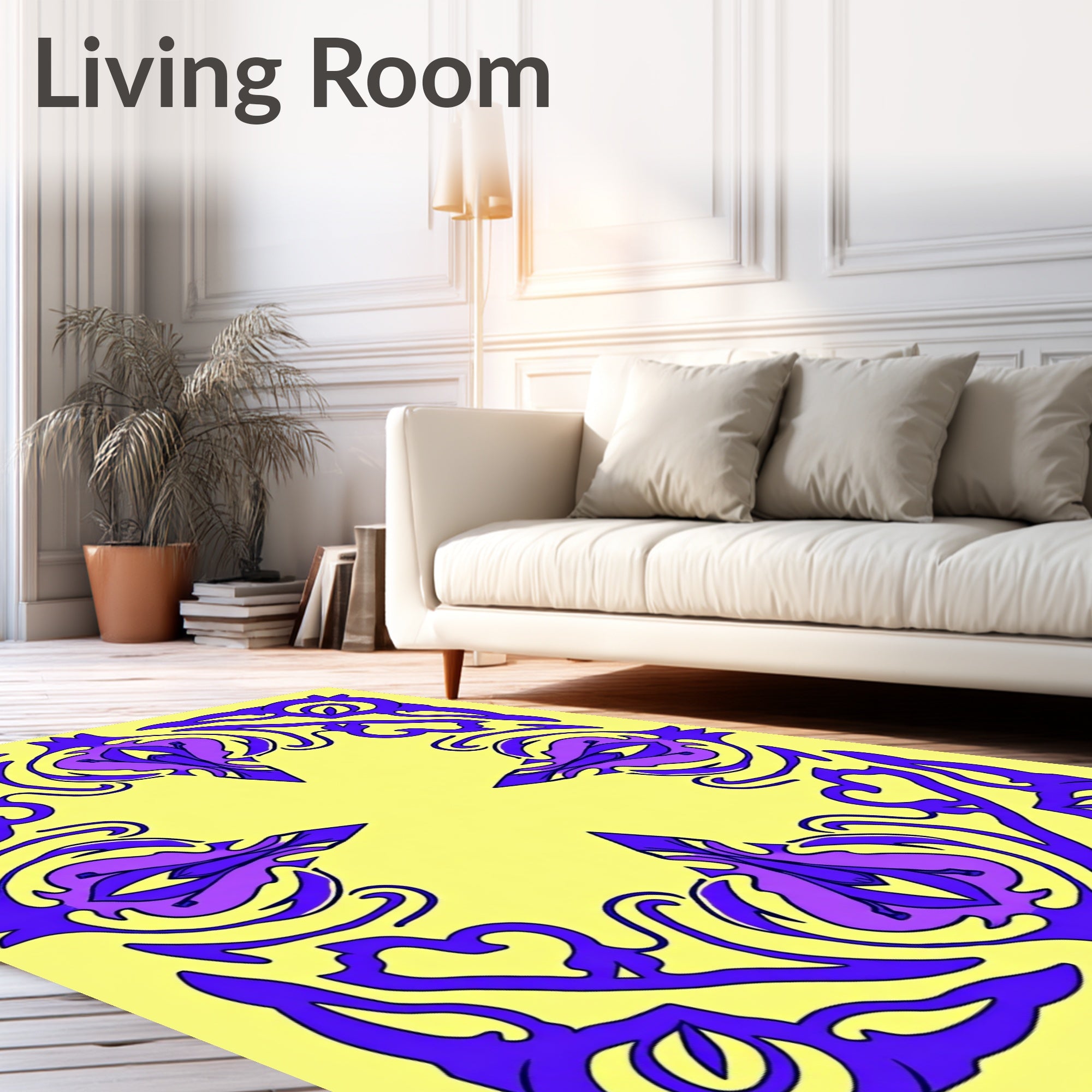 Ultra Soft Area Rug, Non Slip, Stain Resistant, Washable Area Rugs for Living Room, Bedroom, Mystic Grandeur Nouveau Arabesque Whimsical Ethereal Symphony(Yellow) Overview: