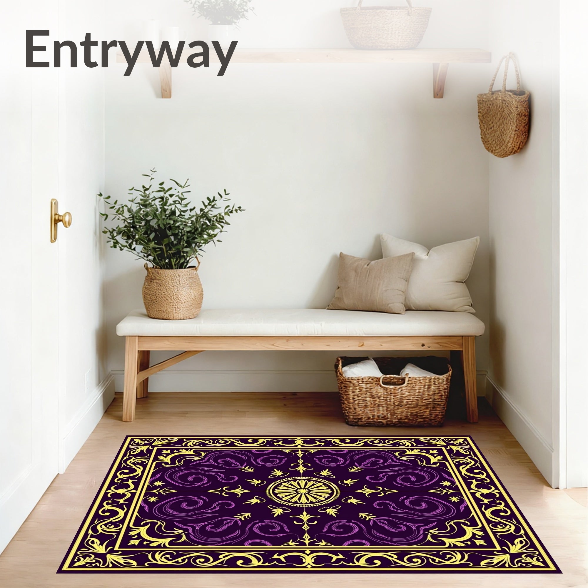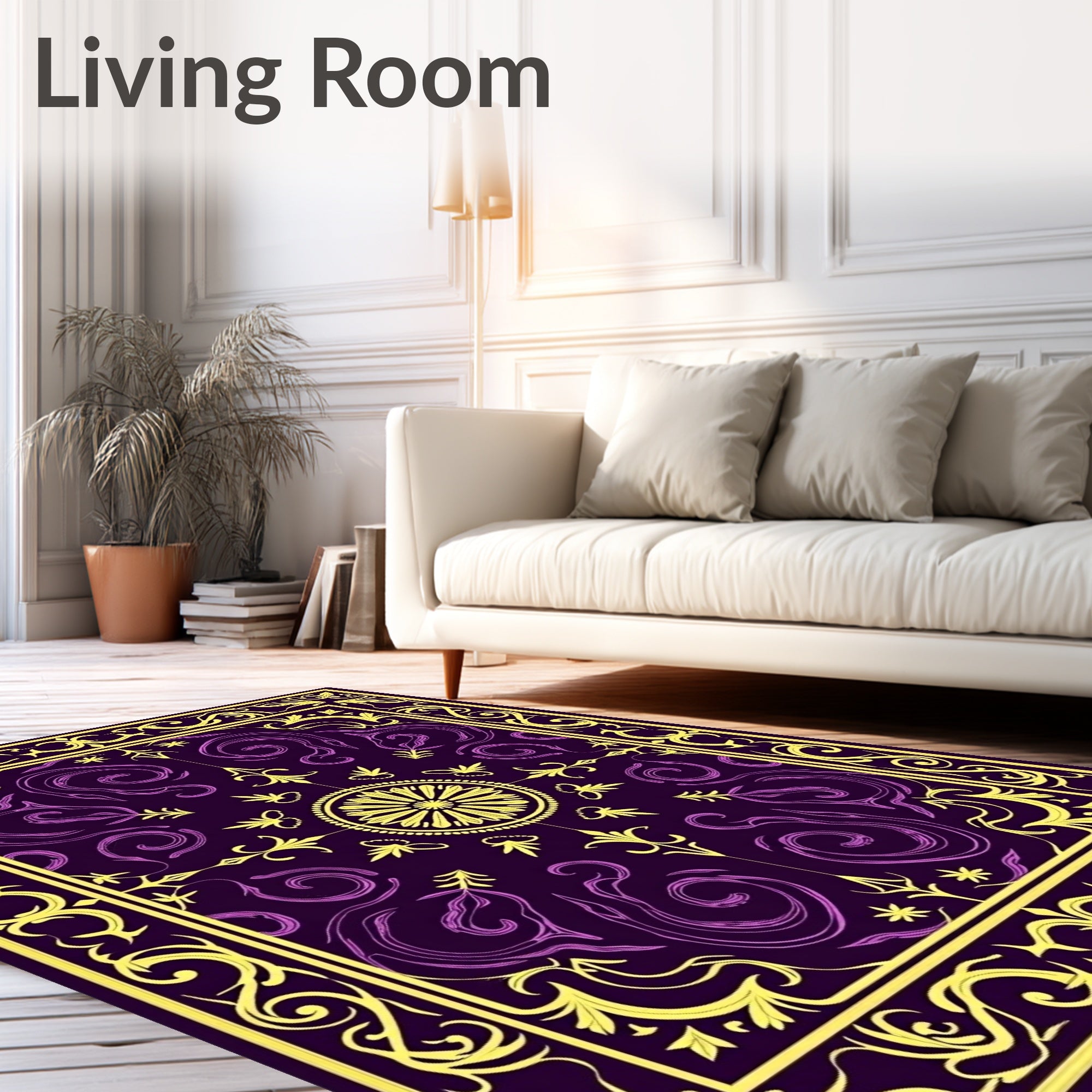 Ultra Soft Area Rug, Non Slip, Stain Resistant, Washable Area Rugs for Living Room, Bedroom, Mystic Swirl Enchanted Dusk Jewel Tone Vintage(Purple) Overview:
