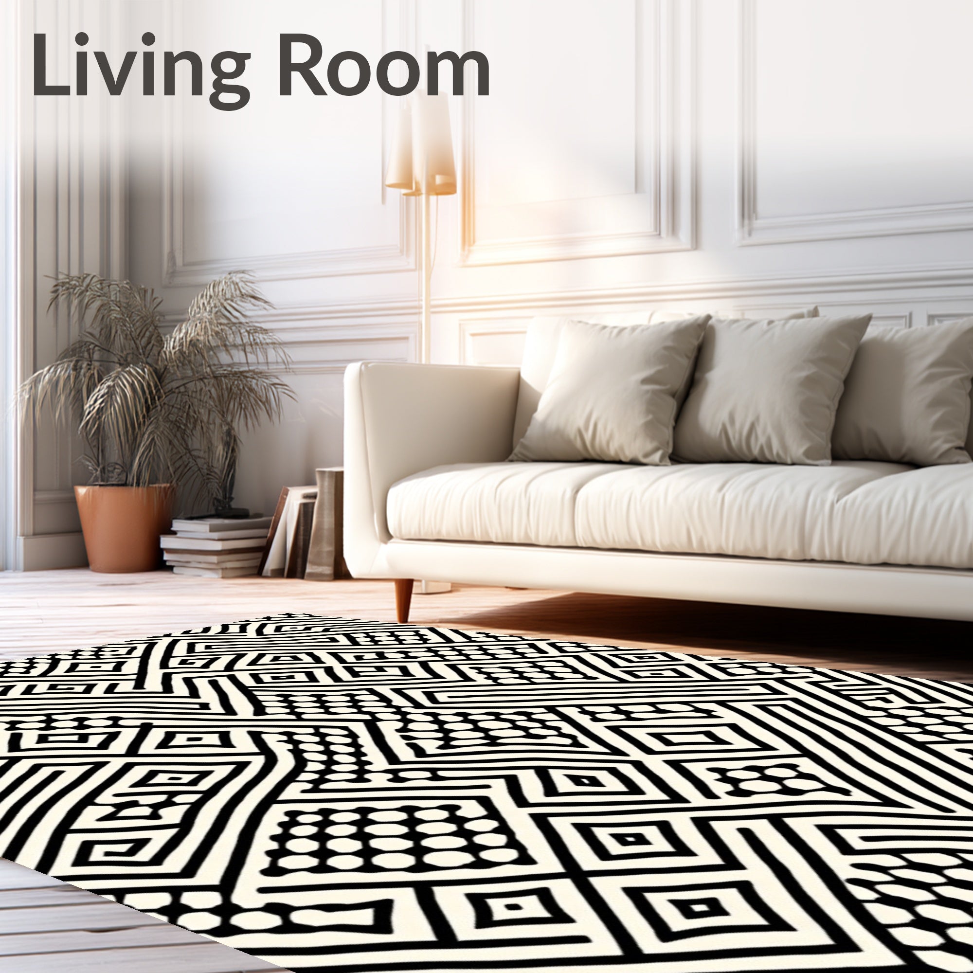 Ultra Soft Area Rug, Non Slip, Stain Resistant, Washable Area Rugs for Living Room, Bedroom, Mystic Web Ancient(Black) Overview: