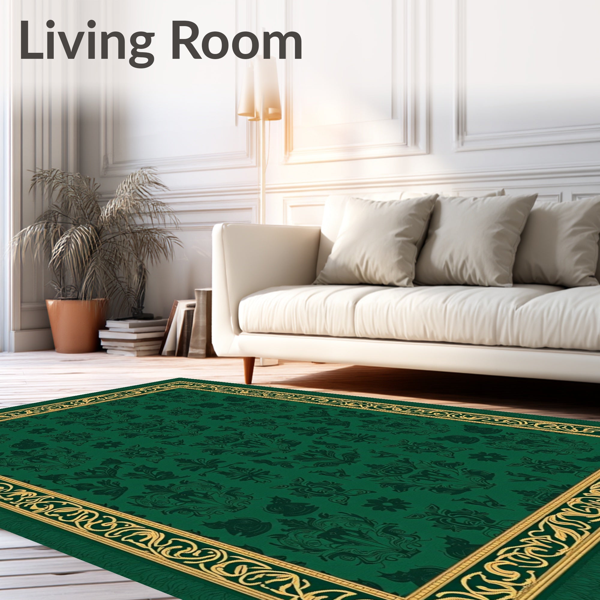 Ultra Soft Area Rug, Non Slip, Stain Resistant, Washable Area Rugs for Living Room, Bedroom, Mystical Forest Baroque Luxury Grandeur Foliage Majesty(Green) Overview: