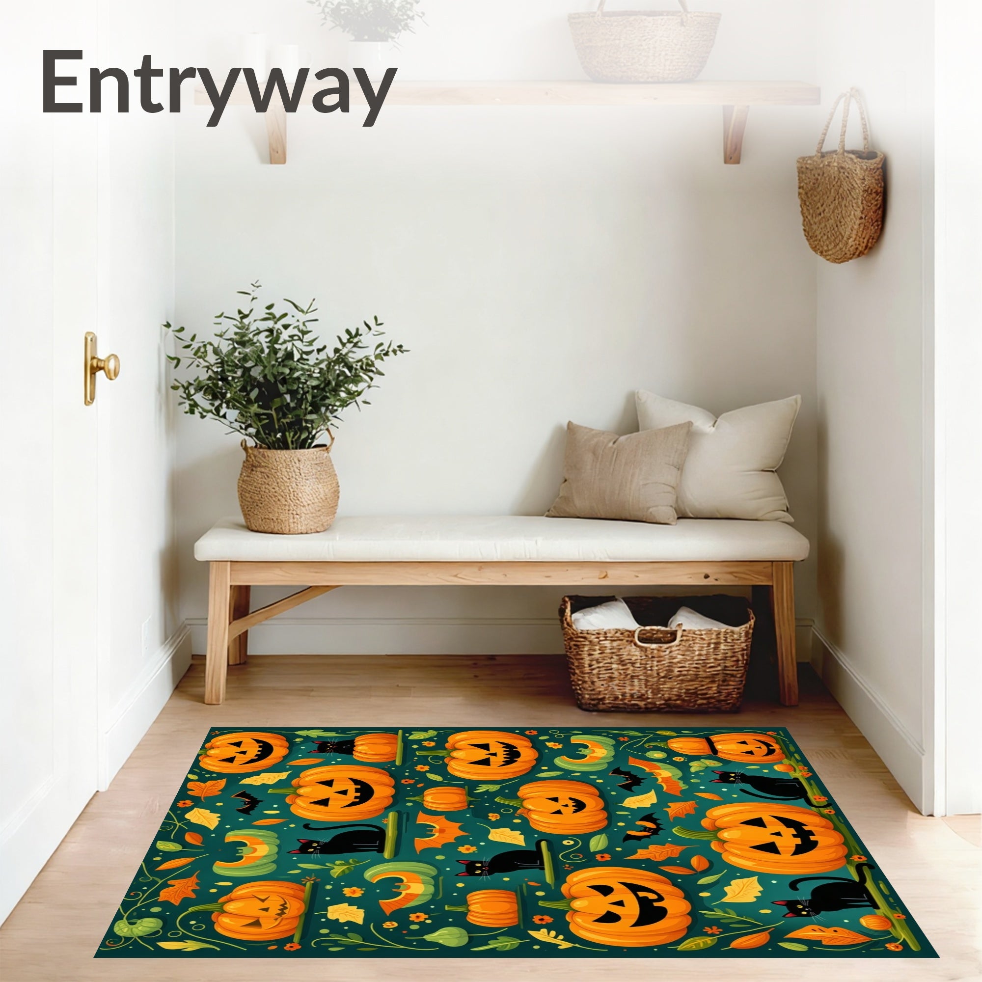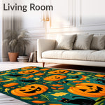 Flatwoven High Traffic Area Rug, Mystical Halloween Pumpkin Patch Design, Non Slip, Stain Resistant, Washable Area Rugs for Living Room, Bedroom (Orange) Overview: