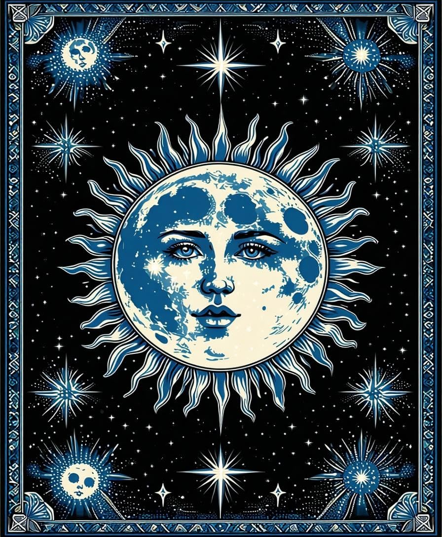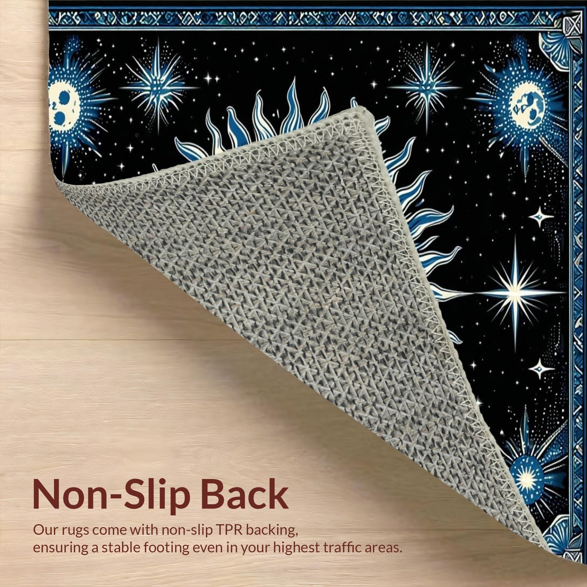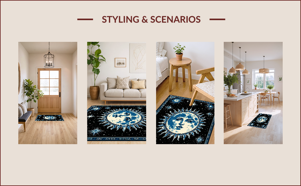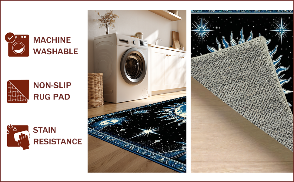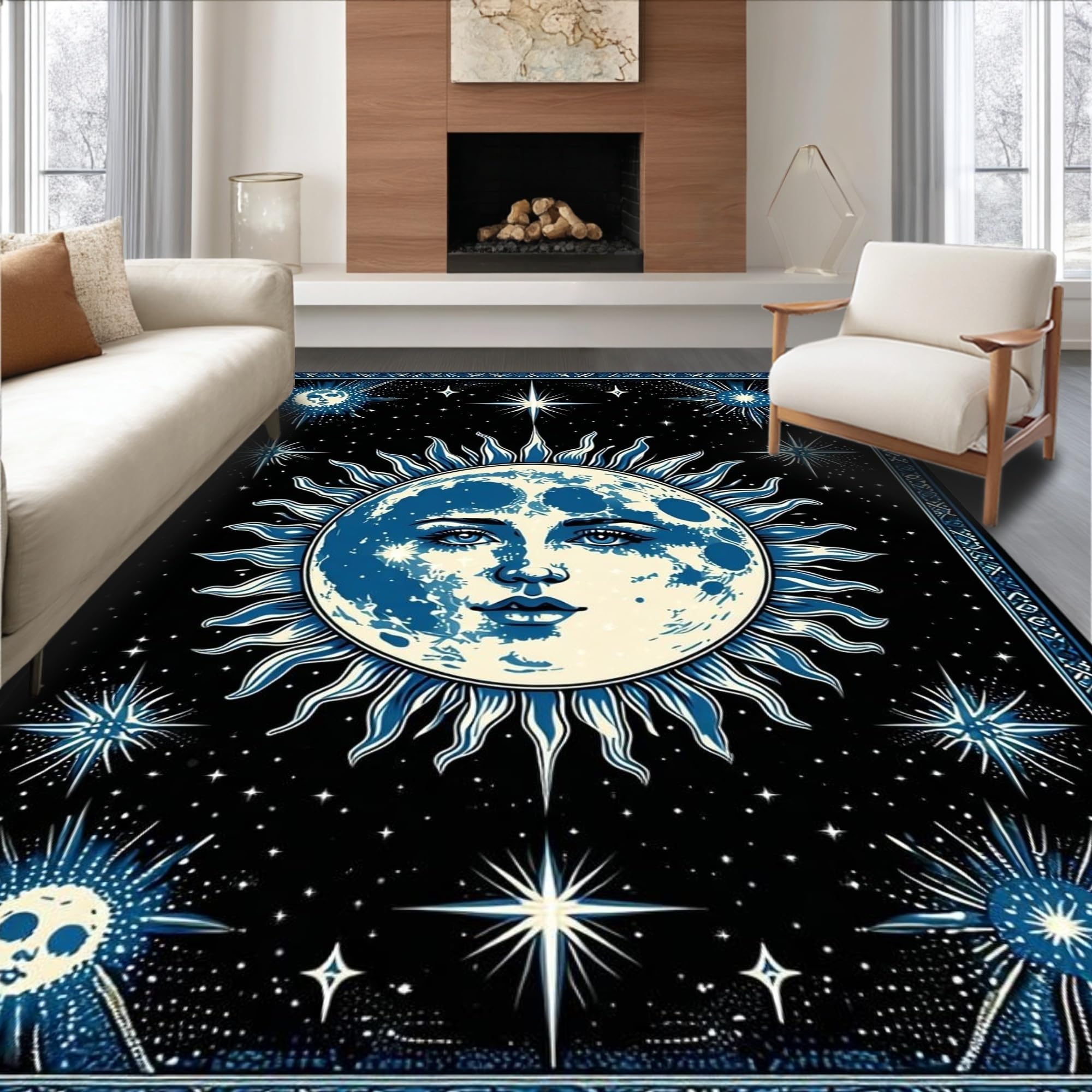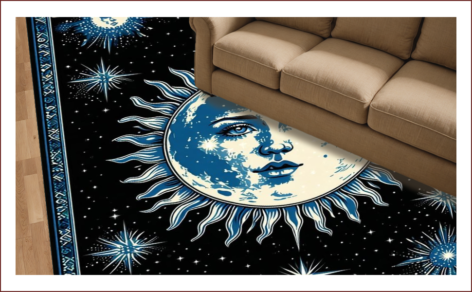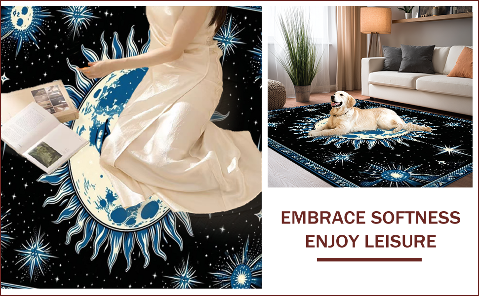 Ultra Soft Area Rug, Non Slip, Stain Resistant, Washable Area Rugs for Living Room, Bedroom, Mystical Lunar Embrace Aesthetic(Black) Overview: