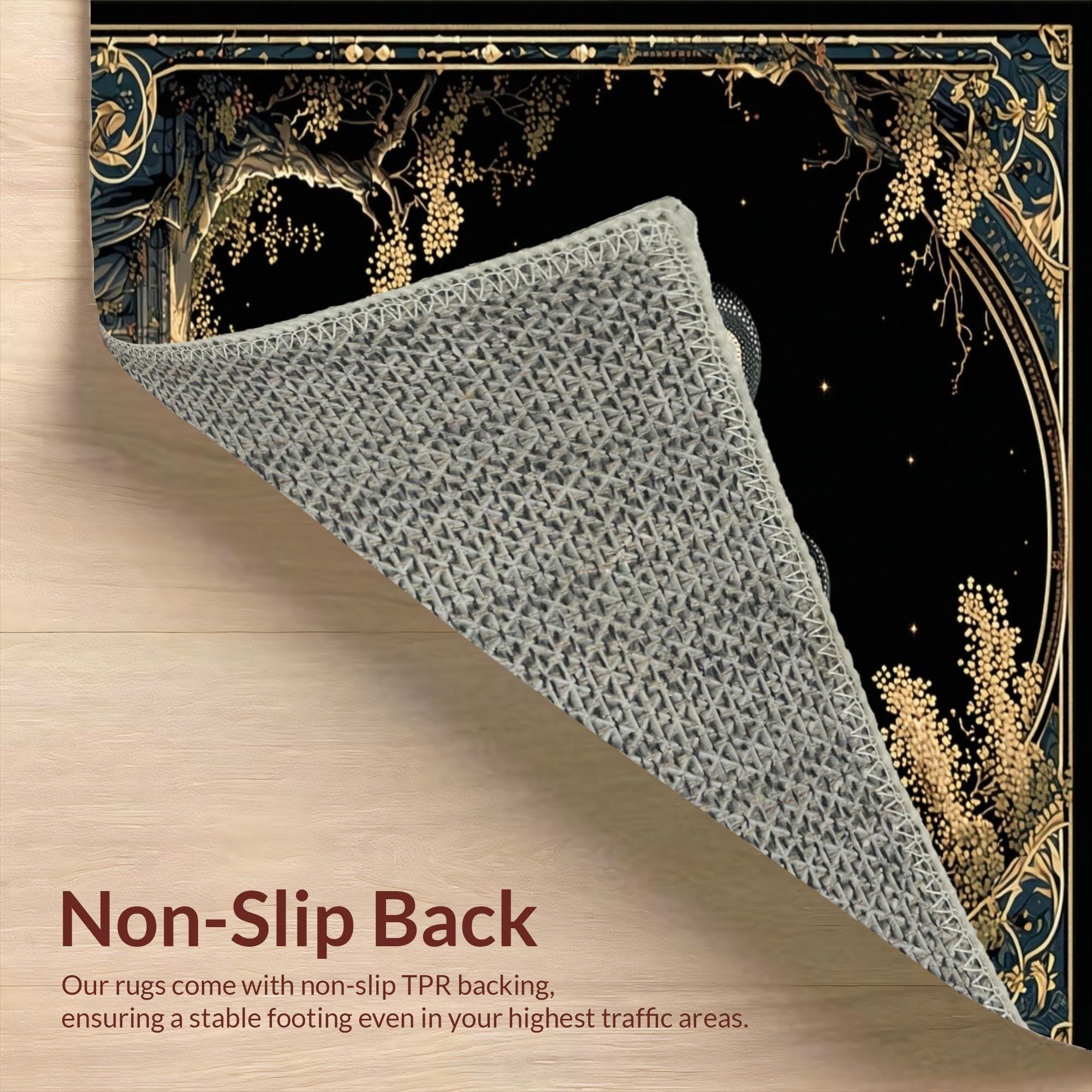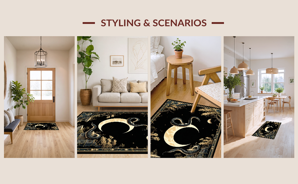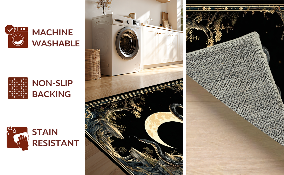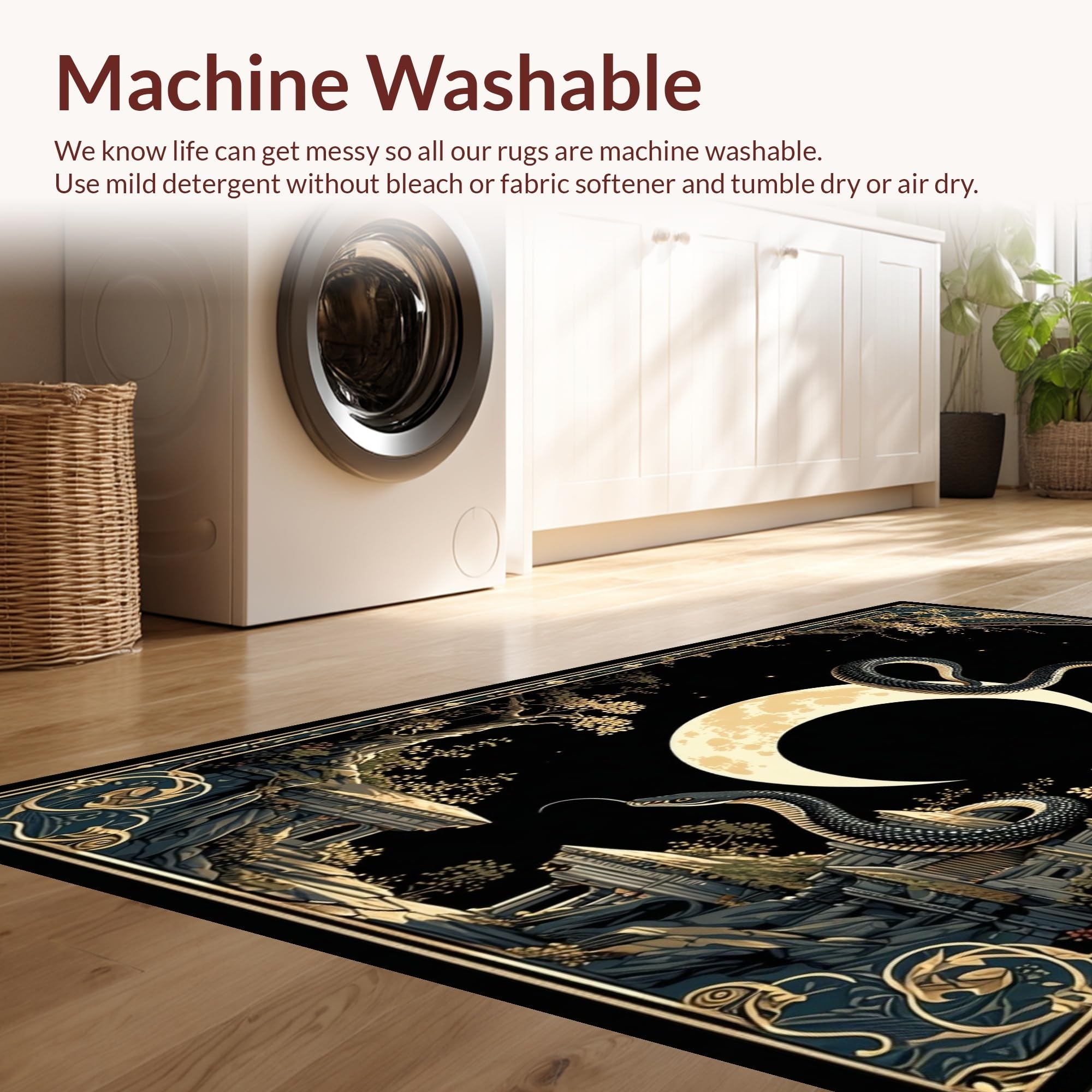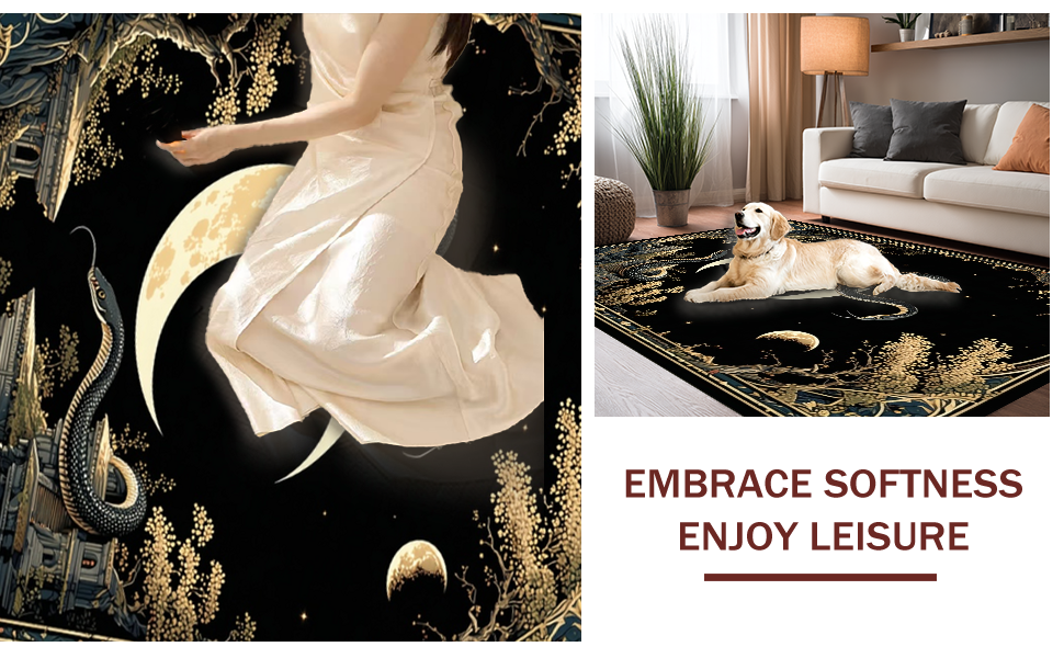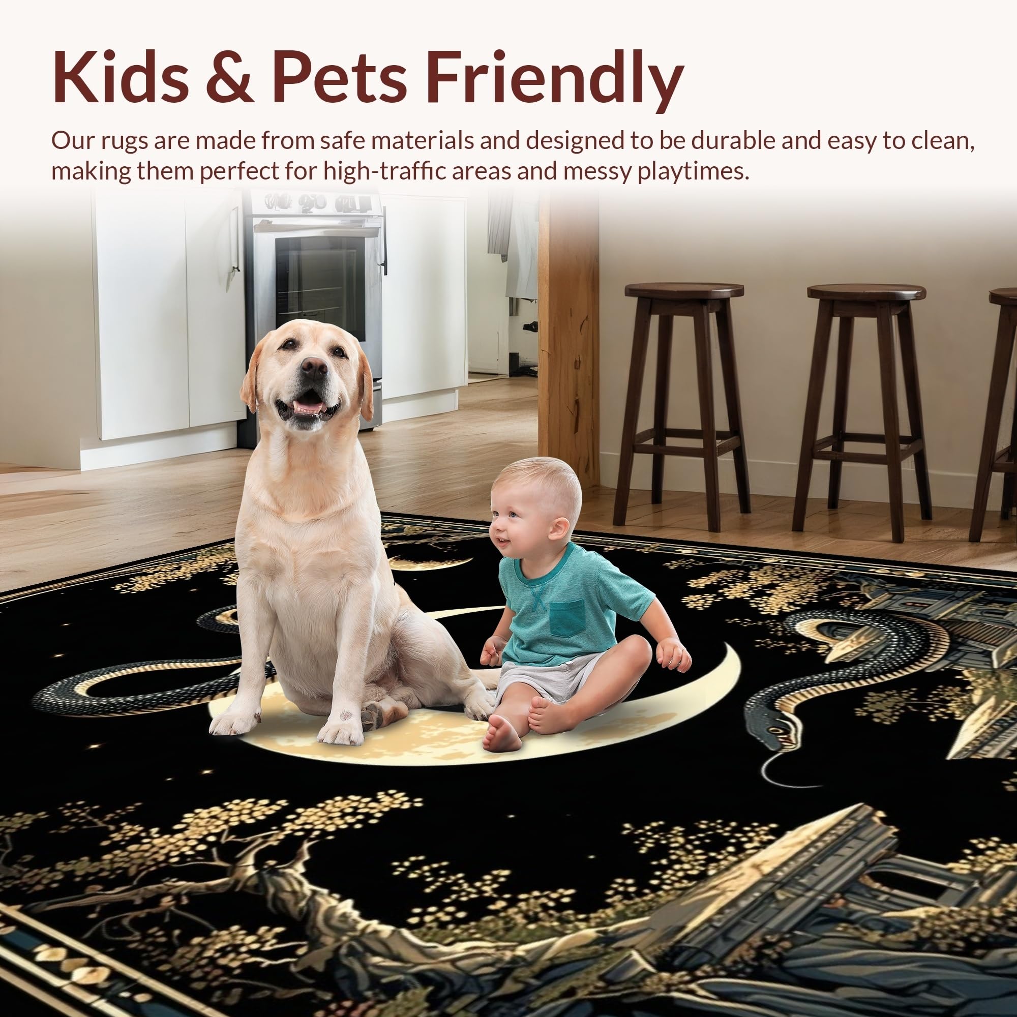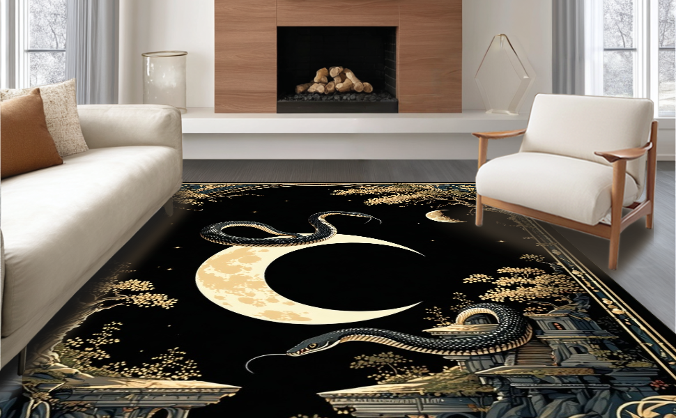 Ultra Soft Area Rug, Non Slip, Stain Resistant, Washable Area Rugs for Living Room, Bedroom, Mystical Moonlit Serpent Design(Black) Overview: