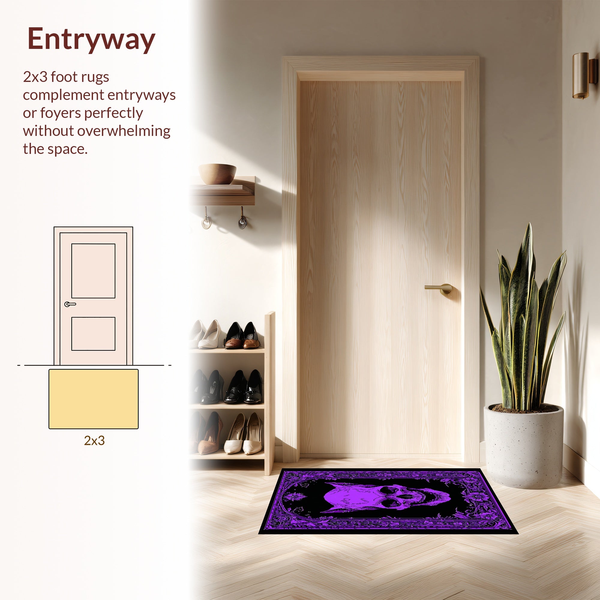 Flatwoven High Traffic Area Rug, Mystical Skull Patterned Art, Non Slip, Stain Resistant, Washable Area Rugs for Living Room, Bedroom (Purple) Overview:
