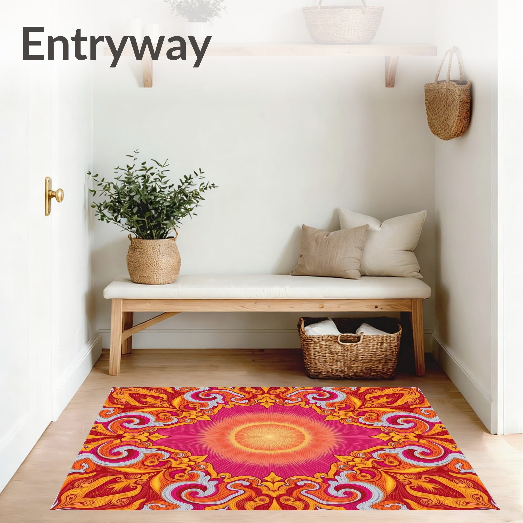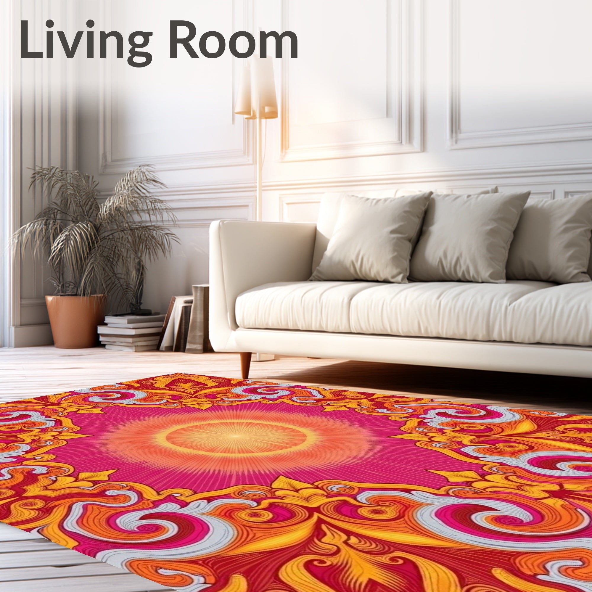 Ultra Soft Area Rug, Non Slip, Stain Resistant, Washable Area Rugs for Living Room, Bedroom, Mystical Sunburst Botanical Swirl Elegant Decorative(Pink) Overview: