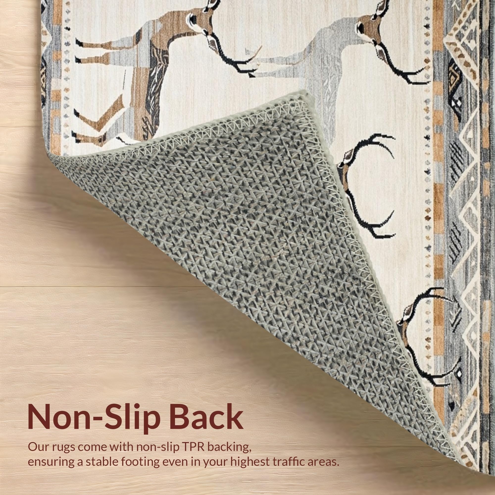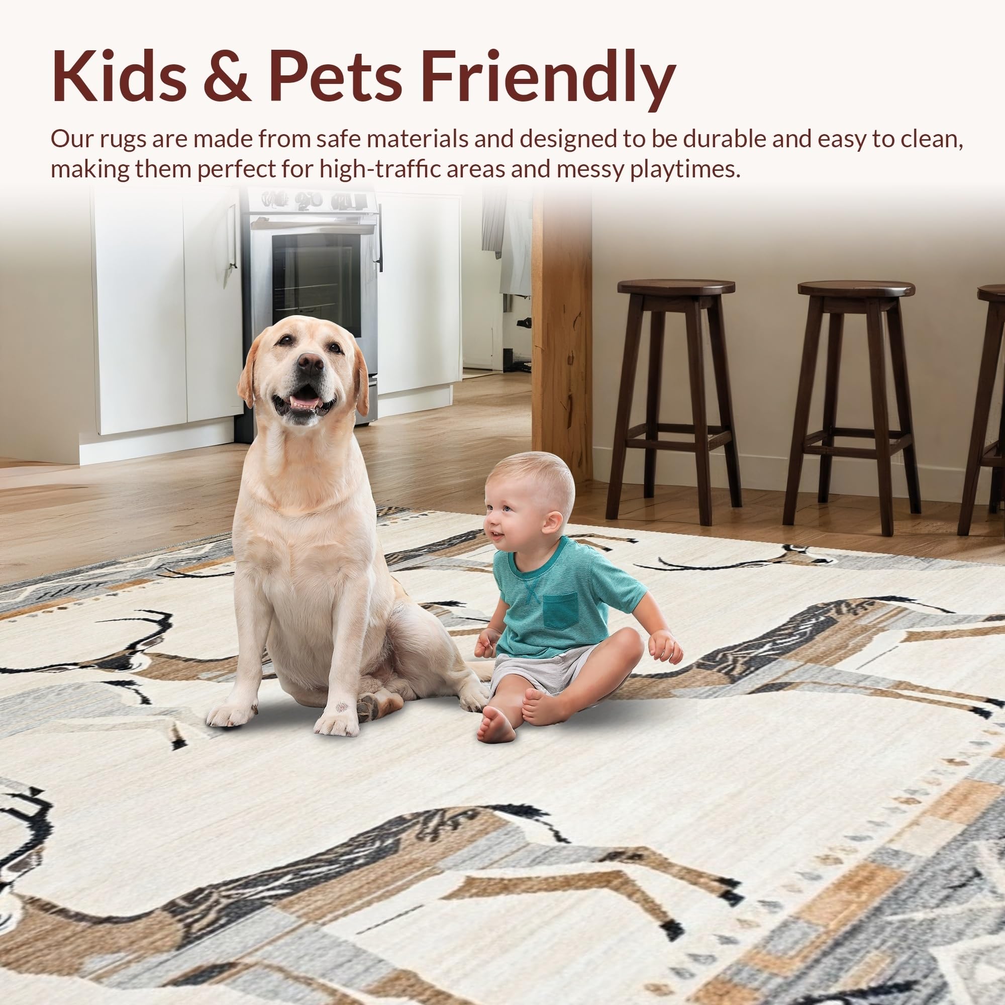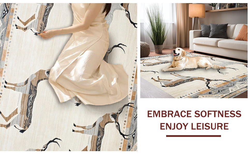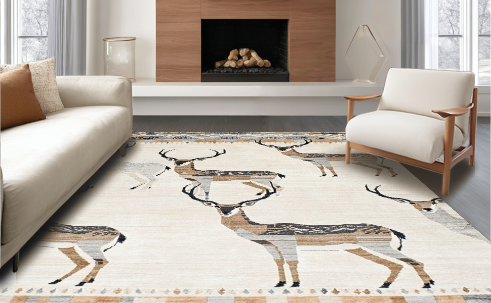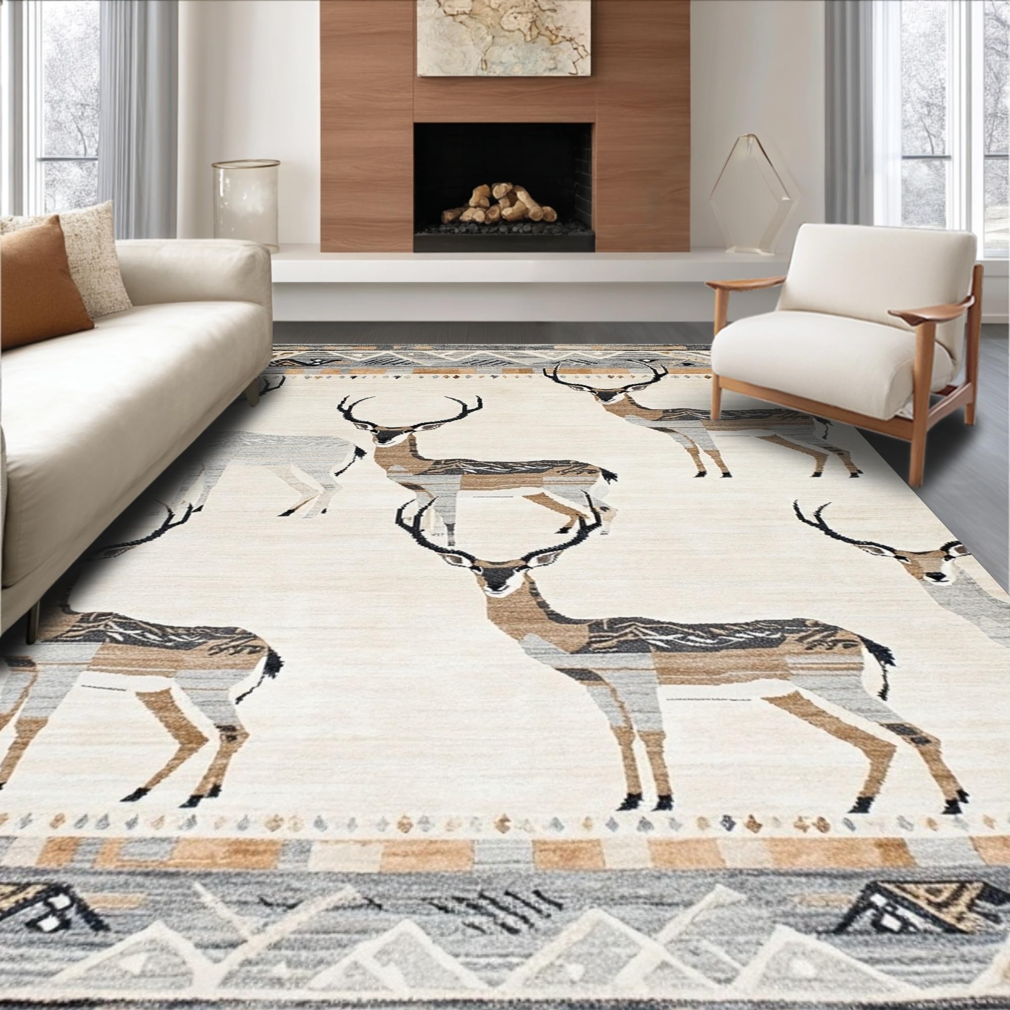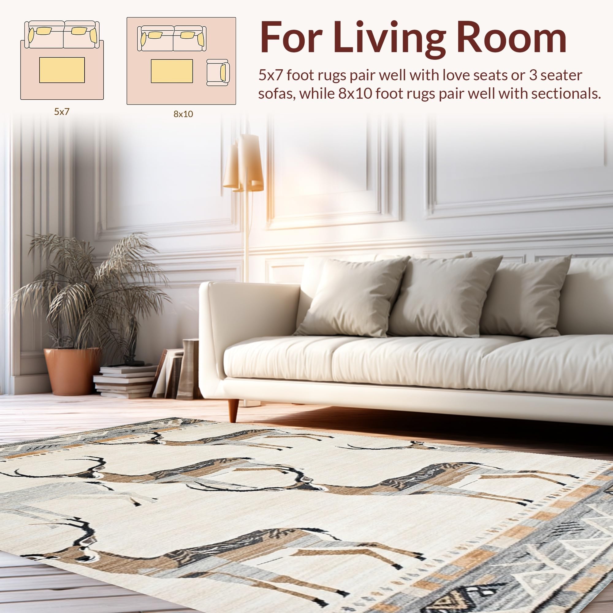 Ultra Soft Area Rug, Non Slip, Stain Resistant, Washable Area Rugs for Living Room, Bedroom, Naturalistic Earthy Animal Motif(Beige) Overview: