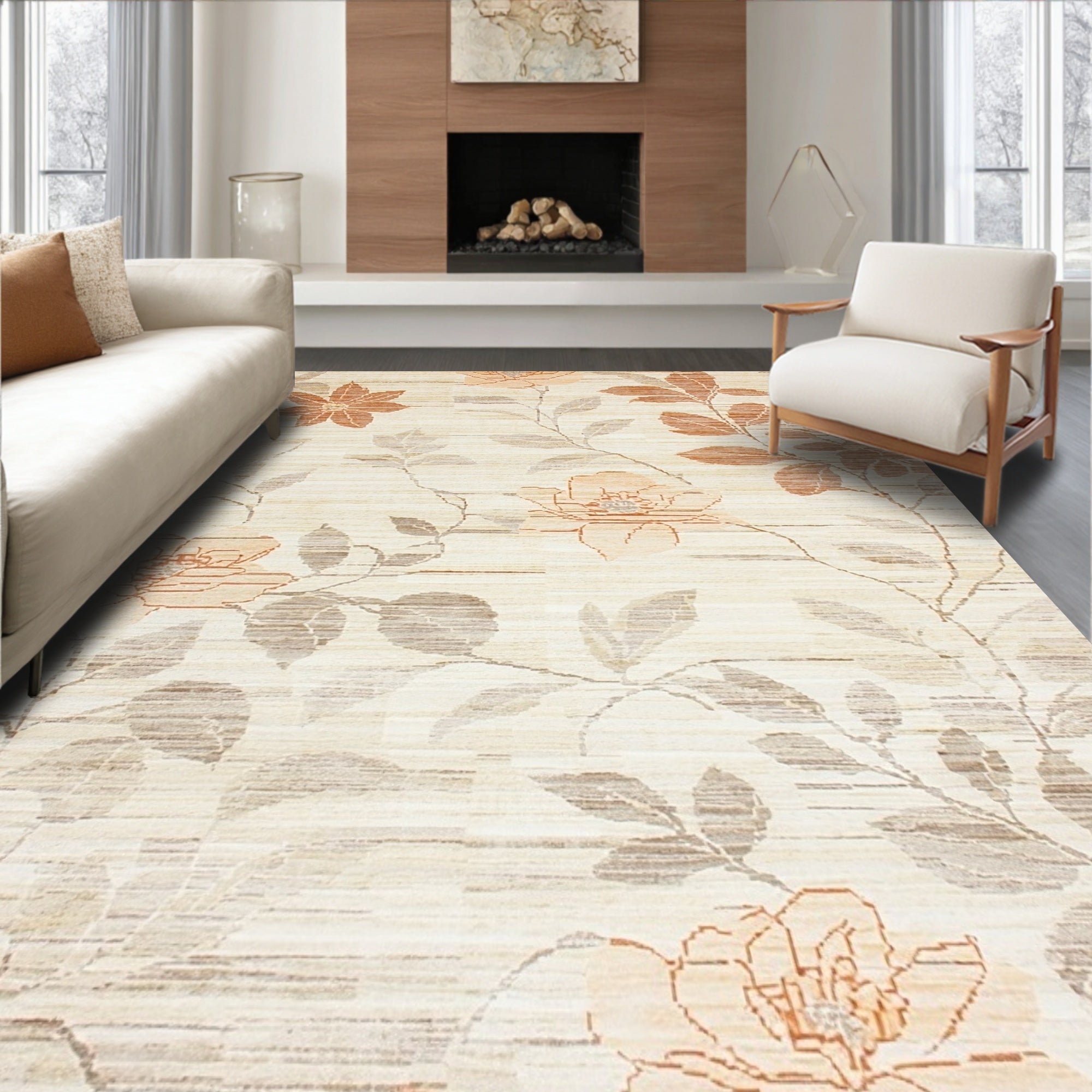 Ultra Soft Area Rug, Non Slip, Stain Resistant, Washable Area Rugs for Living Room, Bedroom, Nature Collection Area Earthy Bloom(Beige) Overview: