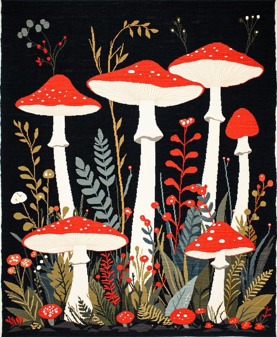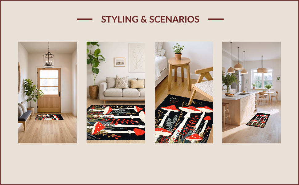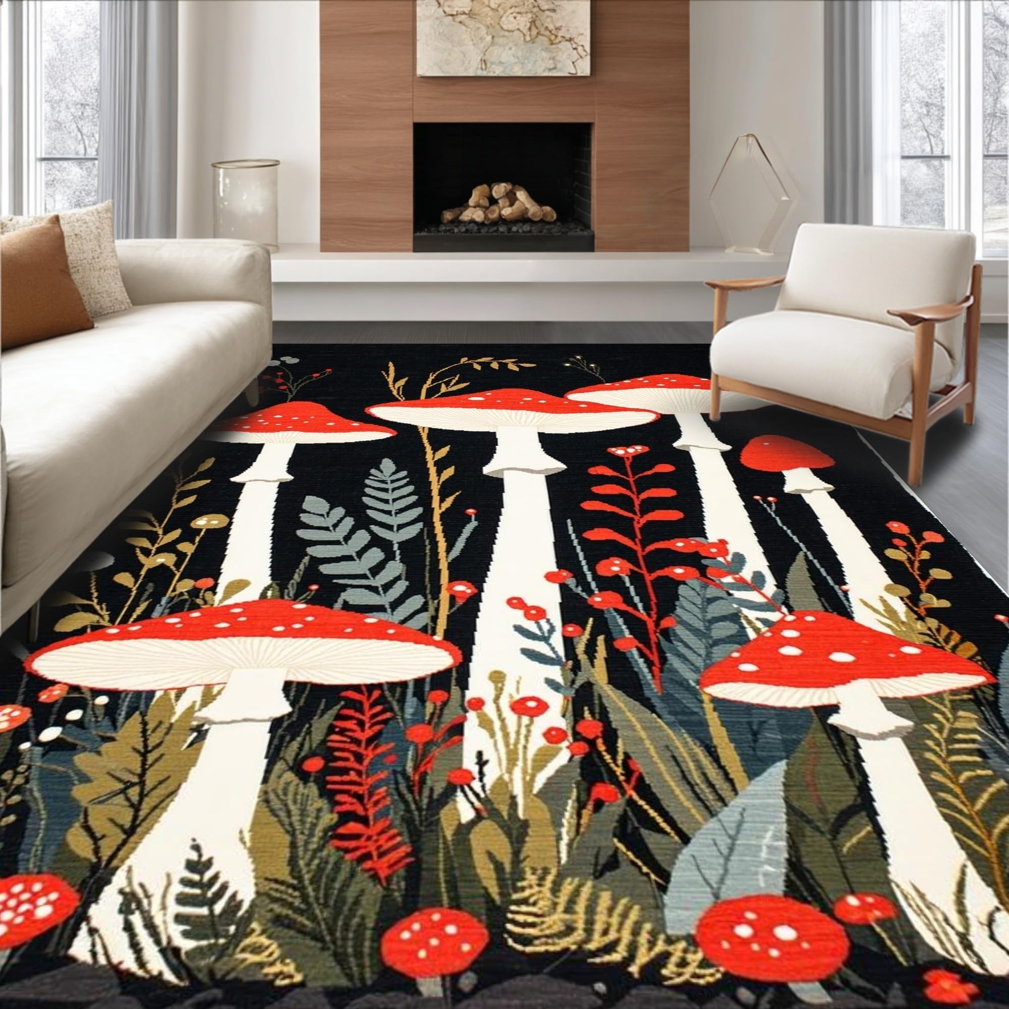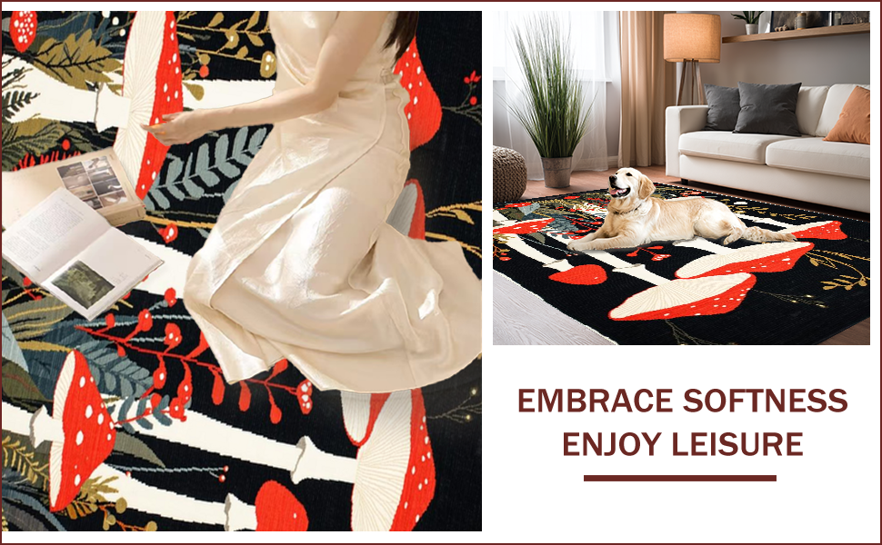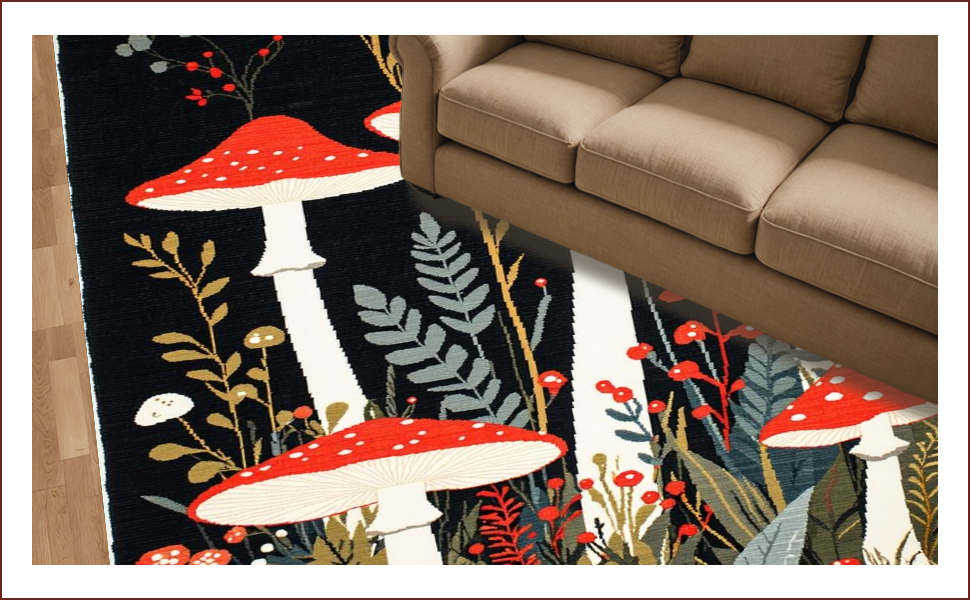 Ultra Soft Area Rug, Non Slip, Stain Resistant, Washable Area Rugs for Living Room, Bedroom, Nature-Inspired Black Aesthetic(Red) Overview: