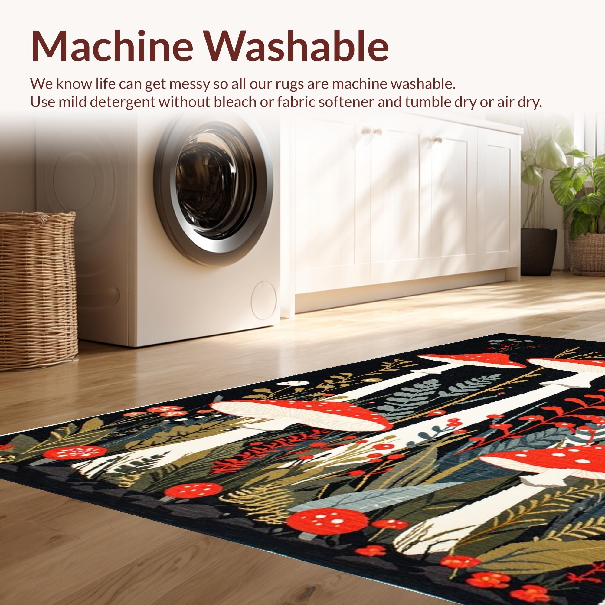 - Machine Washable: Our rugs can be easily thrown in the wash machine.