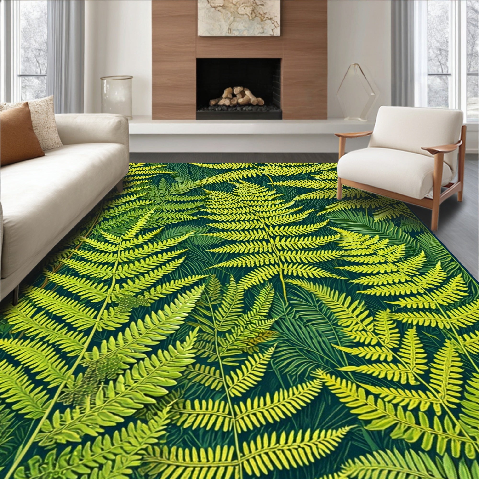 Flatwoven High Traffic Area Rug, Nature Inspired Green Contour Design, Non Slip, Stain Resistant, Washable Area Rugs for Living Room, Bedroom (Green) Overview: