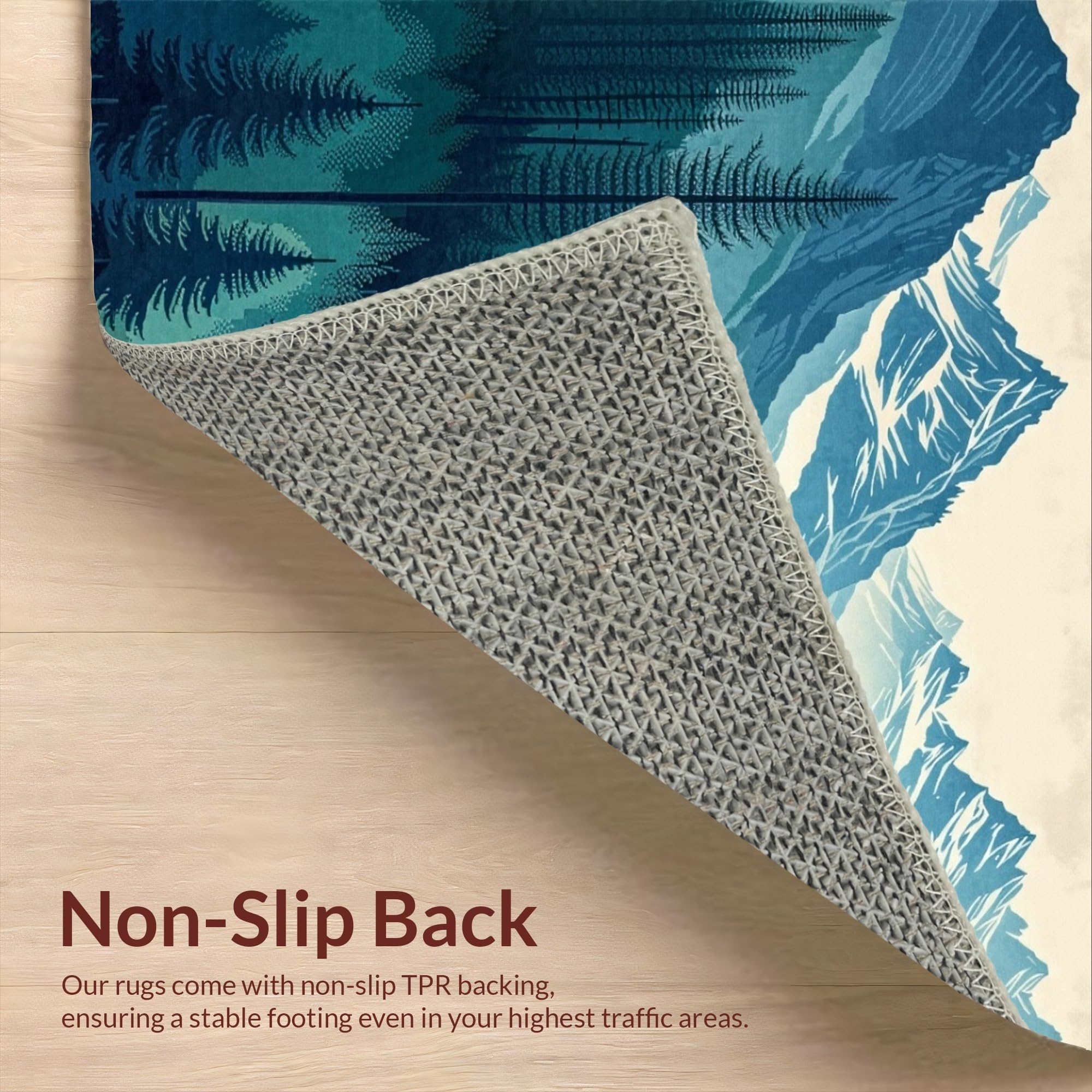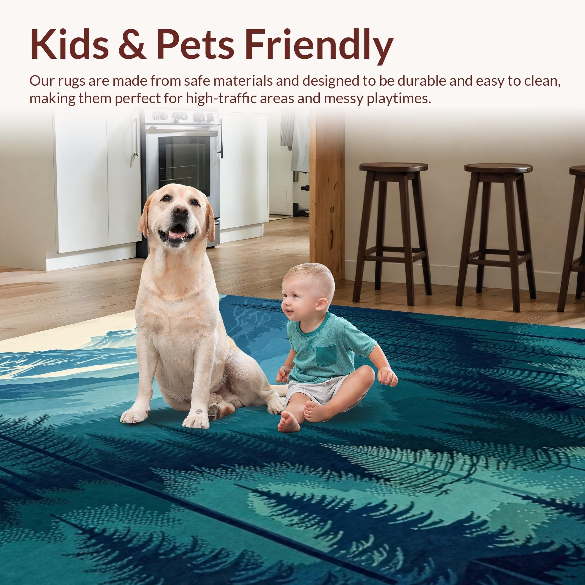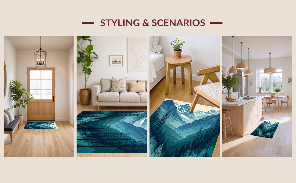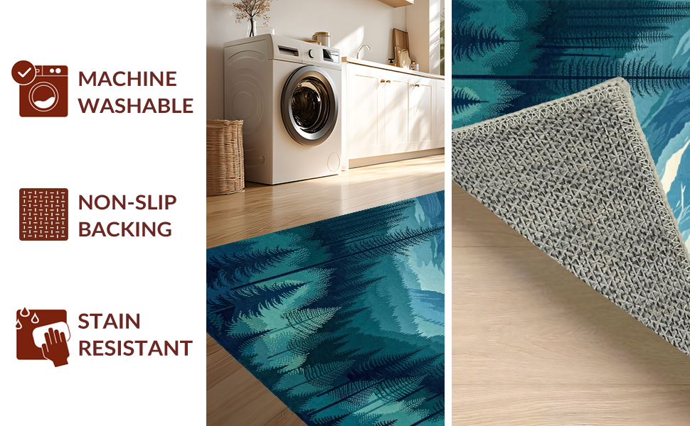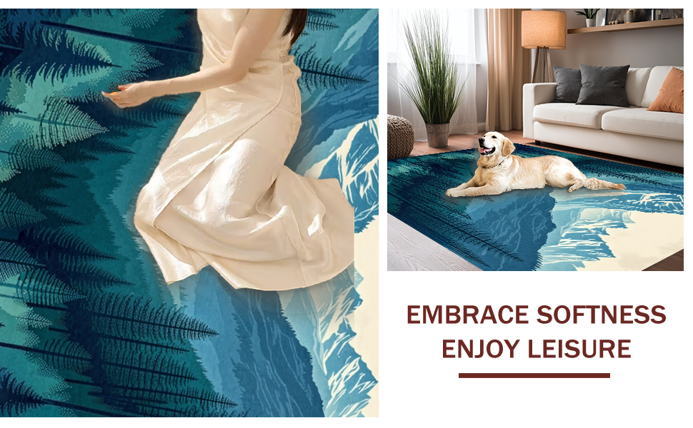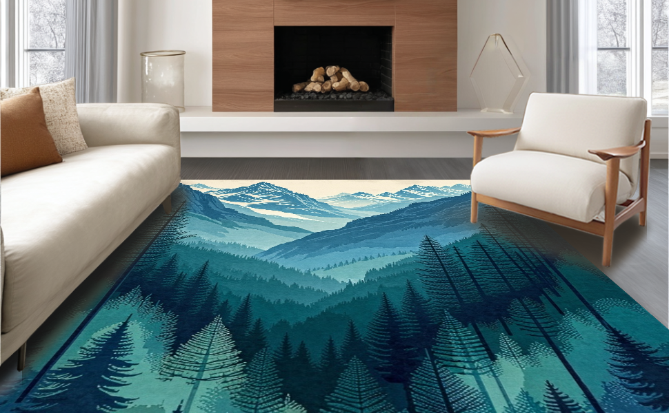 Ultra Soft Area Rug, Non Slip, Stain Resistant, Washable Area Rugs for Living Room, Bedroom, Nature-Inspired Teal Forest Theme(Blue) Overview: