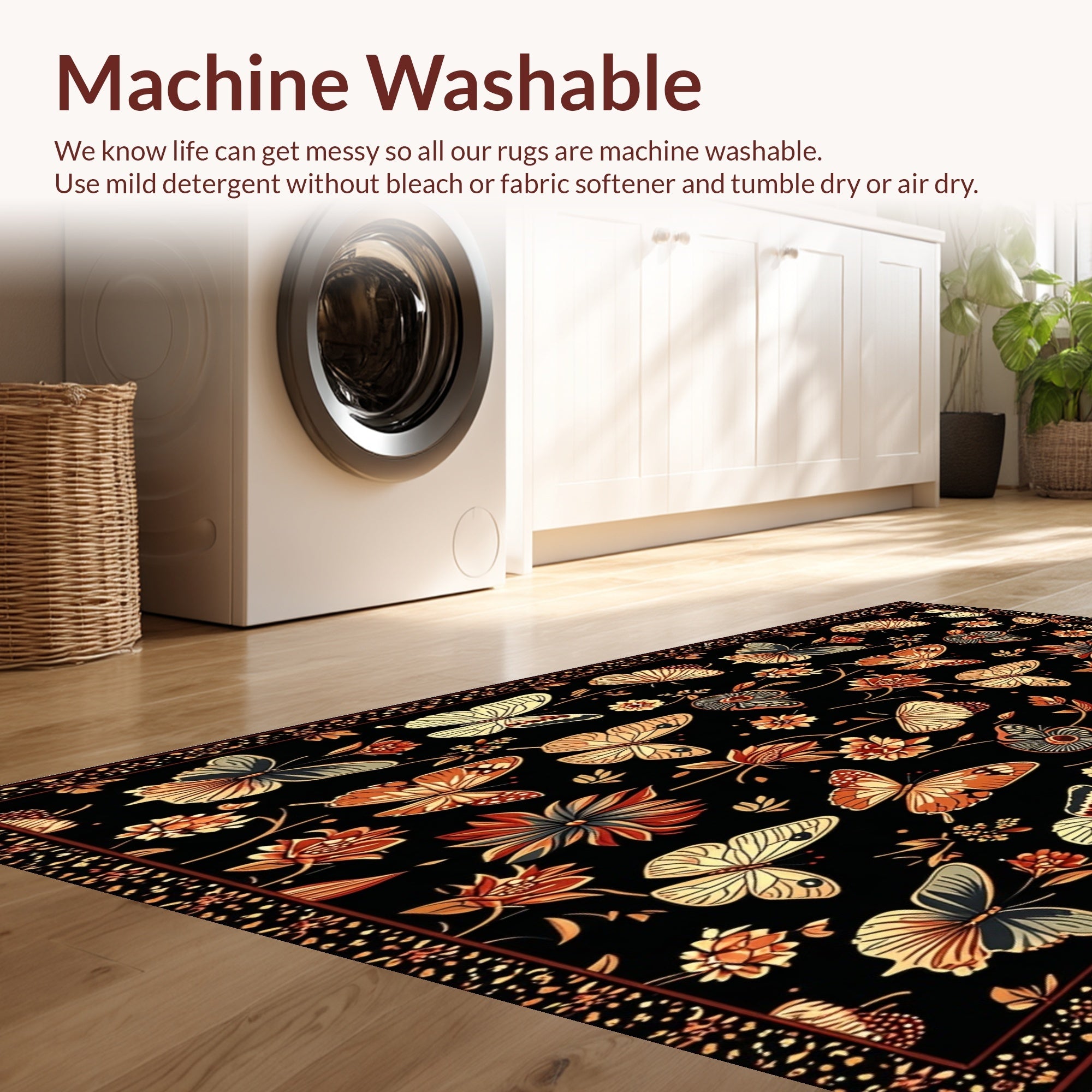 - Machine Washable: Our rugs can be easily thrown in the wash machine.