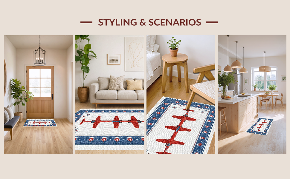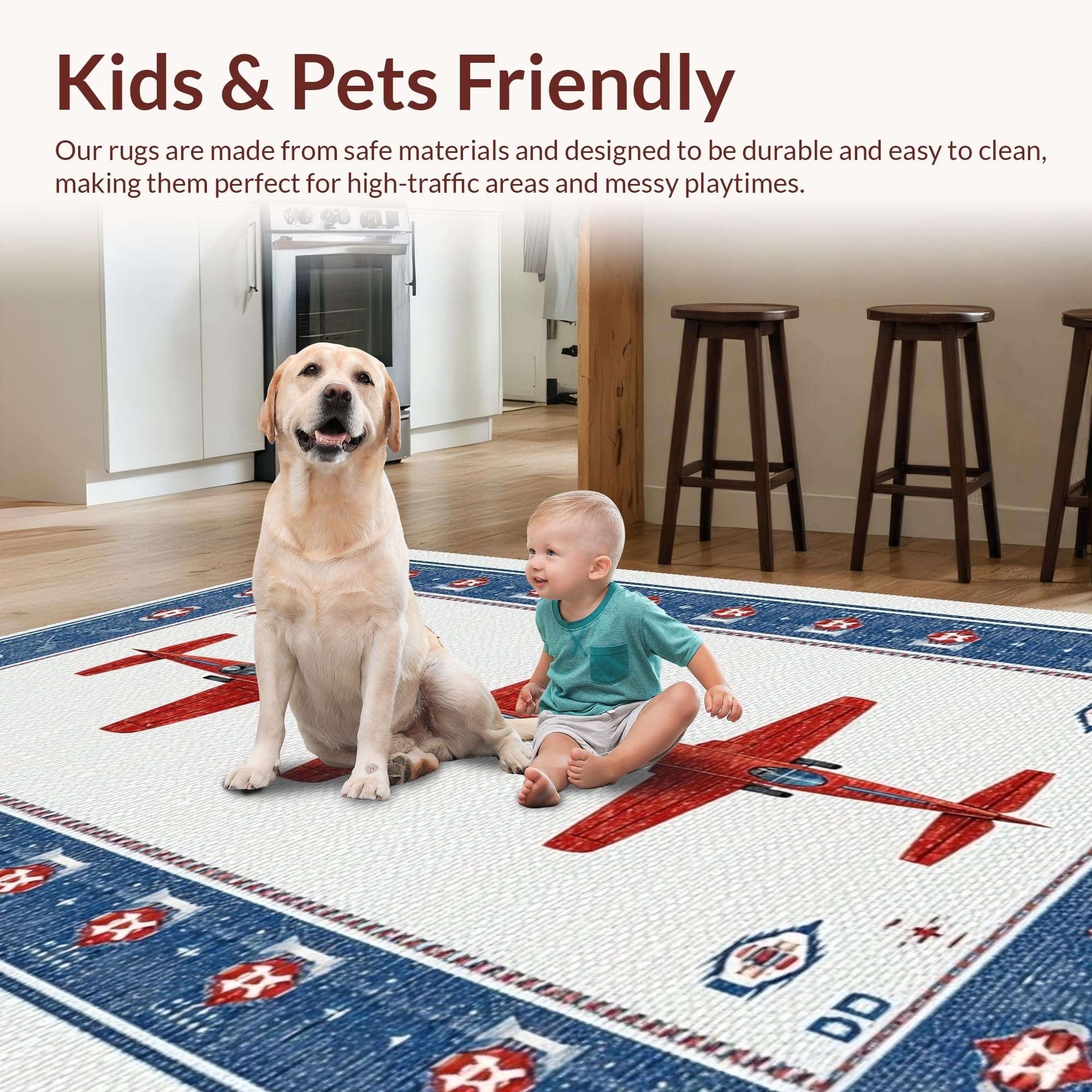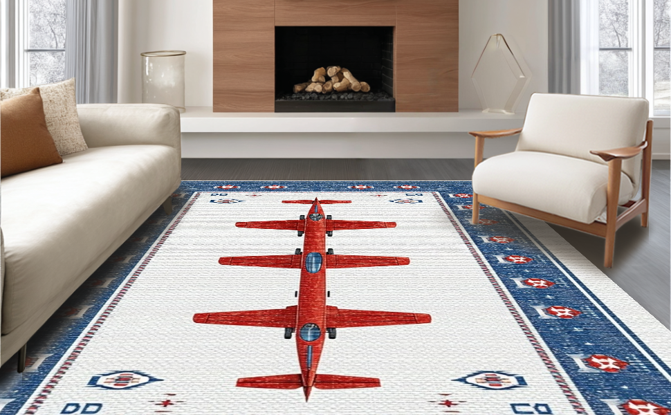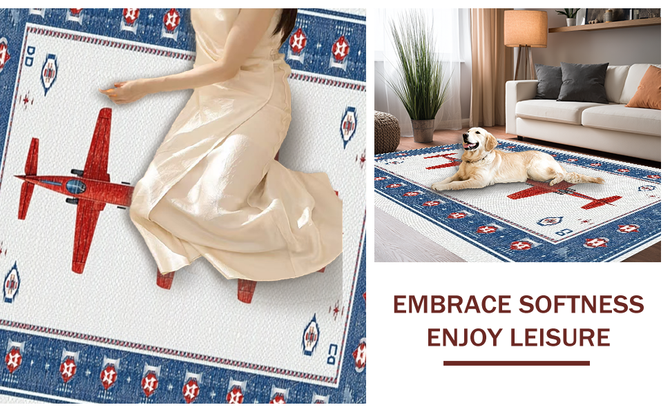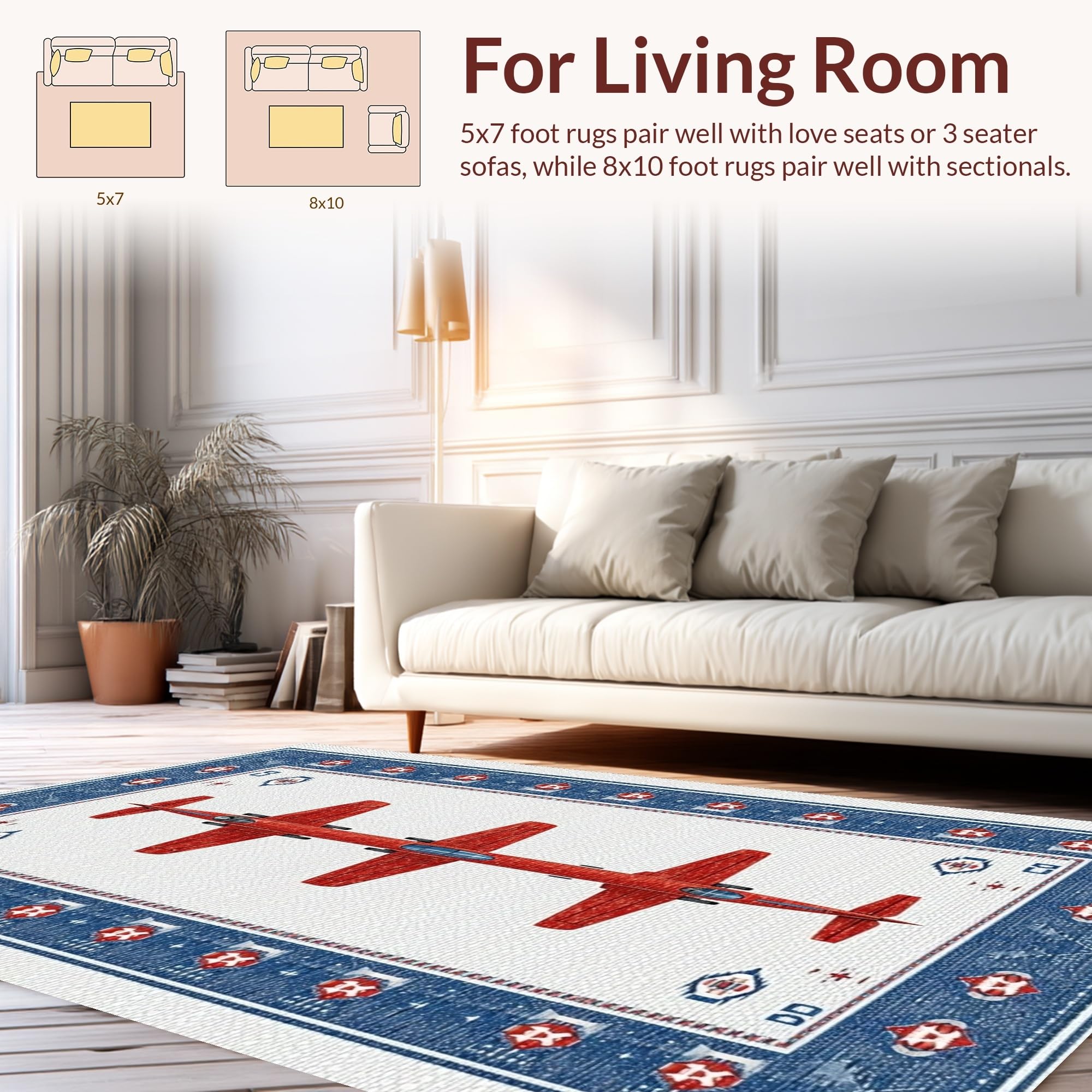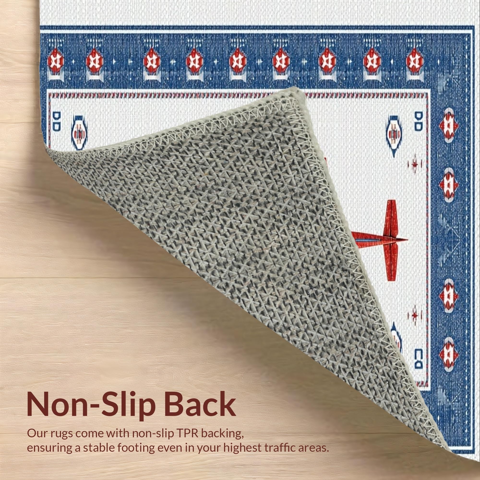 Ultra Soft Area Rug, Non Slip, Stain Resistant, Washable Area Rugs for Living Room, Bedroom, Nautical Blue Tone Design(Red) Overview: