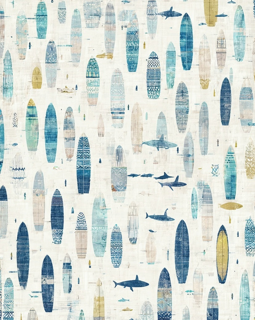 Nautical Surf Board Marine Life & Surfing Beach House(Blue)