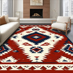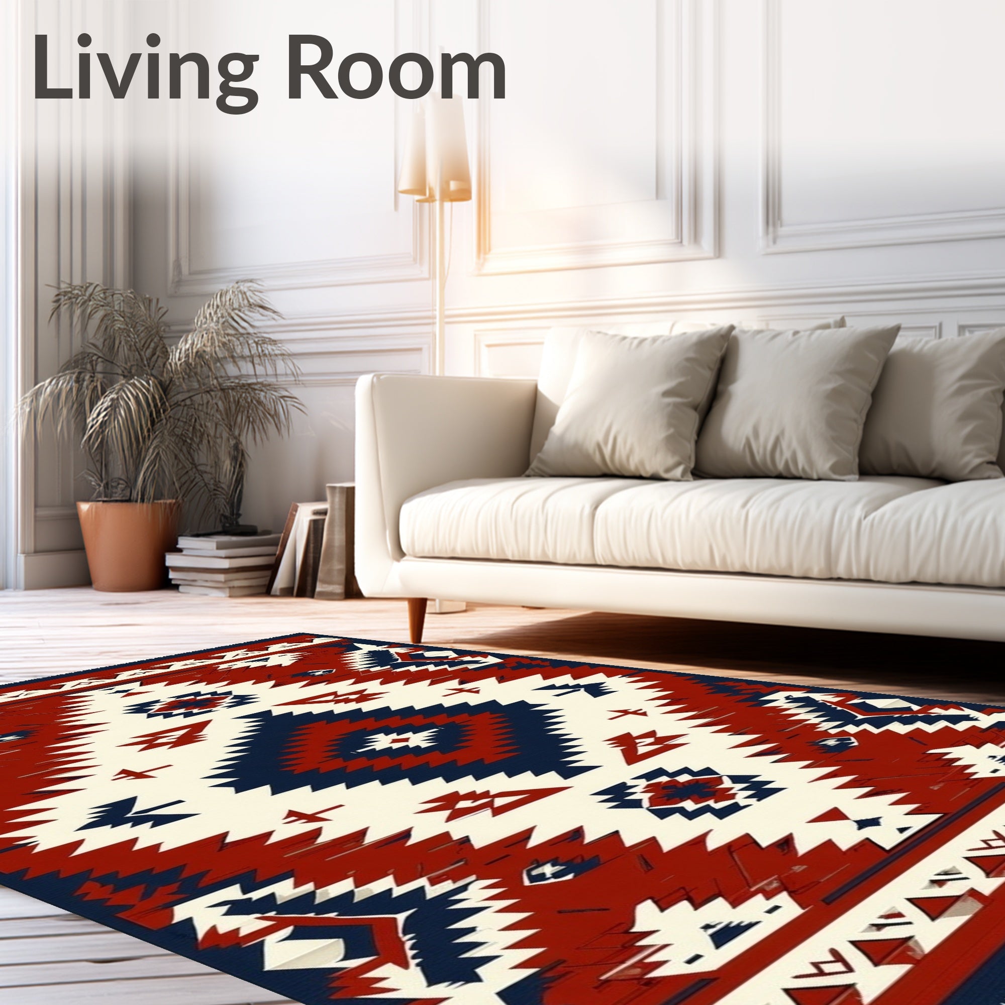 Flatwoven High Traffic Area Rug, Geometric Southwestern Accent, Non Slip, Stain Resistant, Washable Area Rugs for Living Room, Bedroom (Red) Overview: