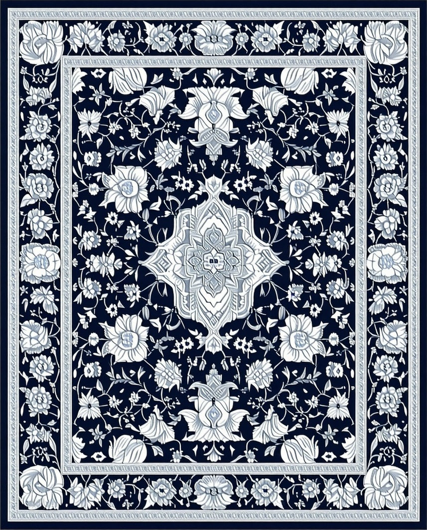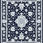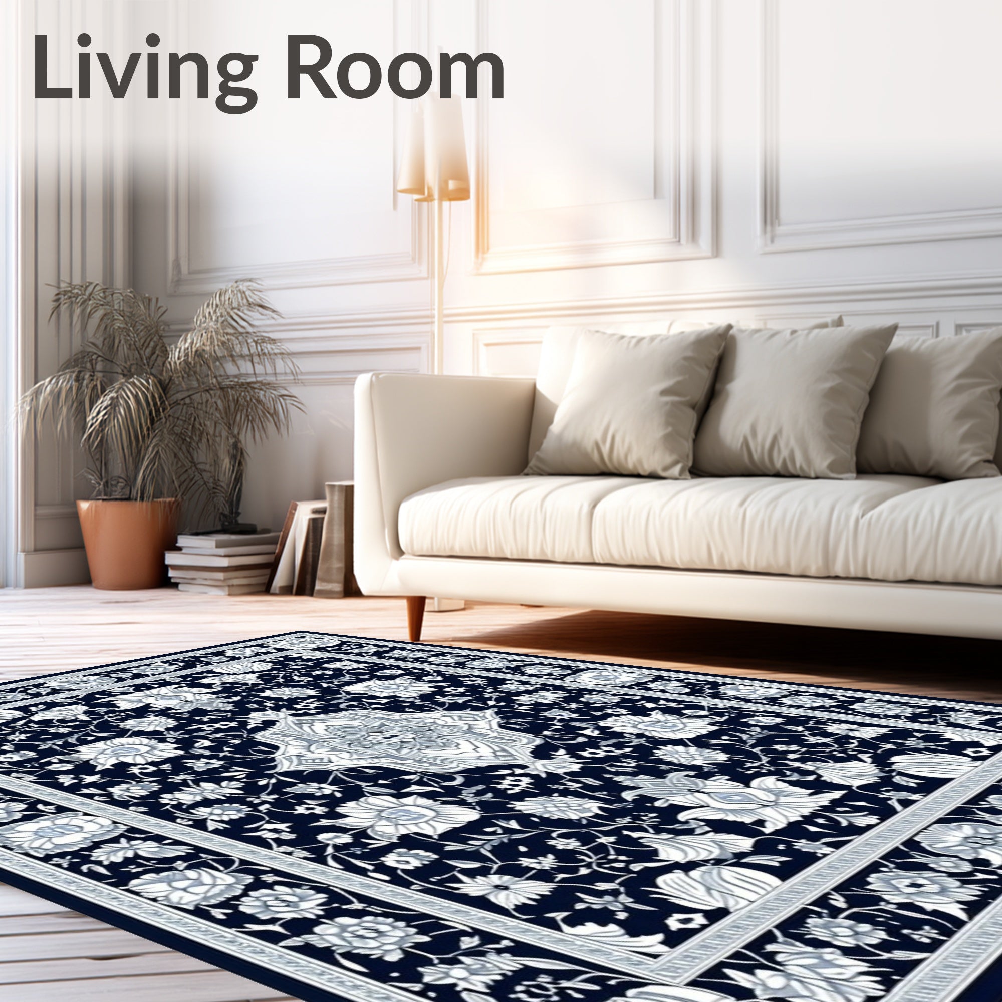 Flatwoven High Traffic Area Rug, Navy and Silver Abstract Floral with Intricate, Non Slip, Stain Resistant, Washable Area Rugs for Living Room, Bedroom (Blue) Overview: