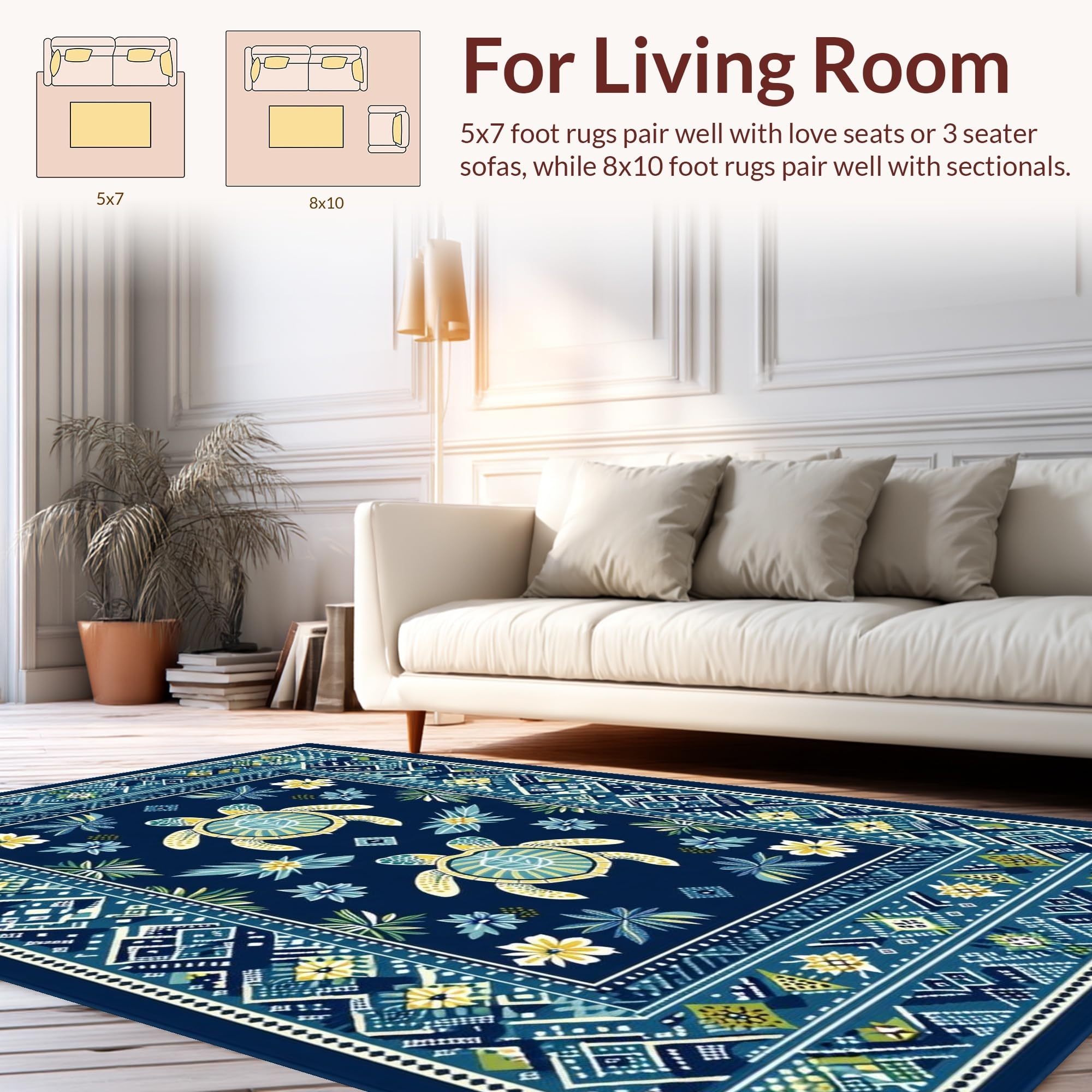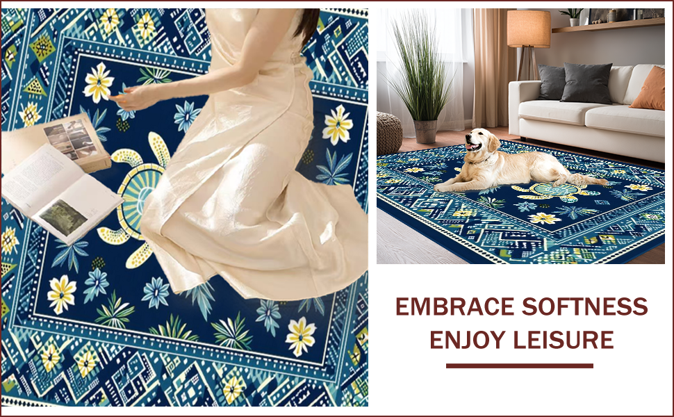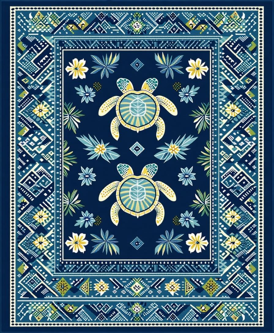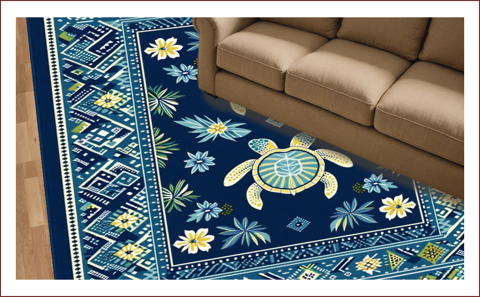 Ultra Soft Area Rug, Non Slip, Stain Resistant, Washable Area Rugs for Living Room, Bedroom, Navy Blue Coastal Symmetry Design(Blue) Overview: