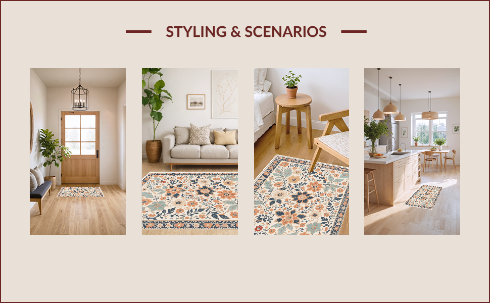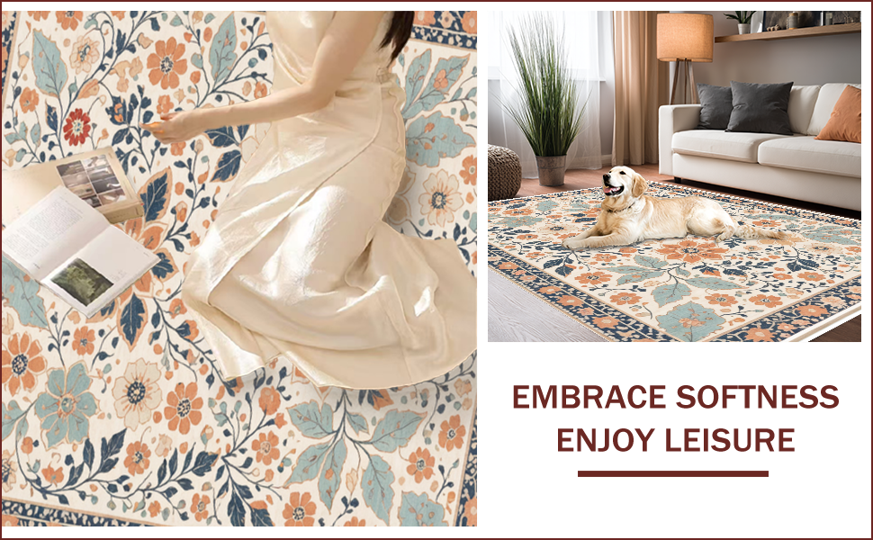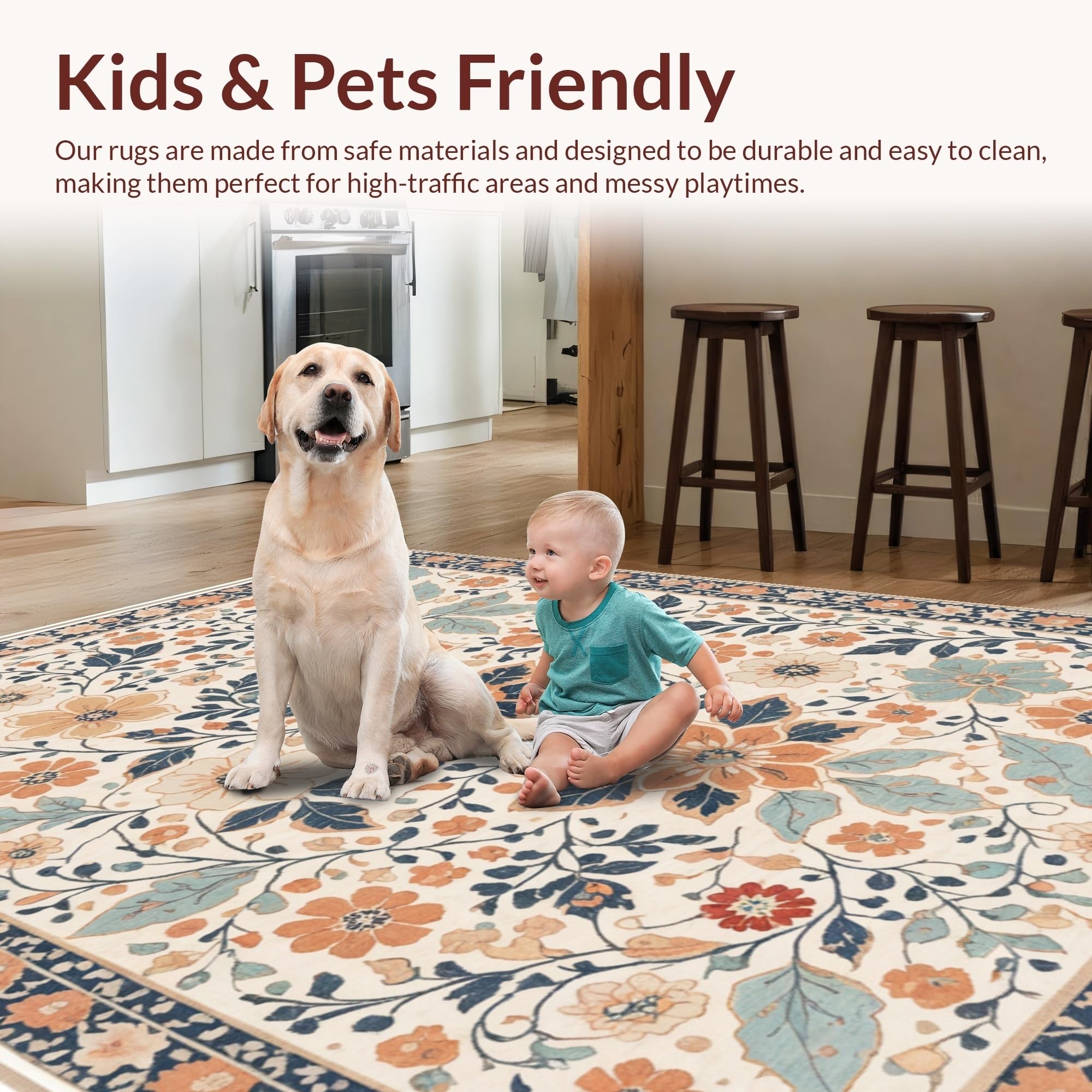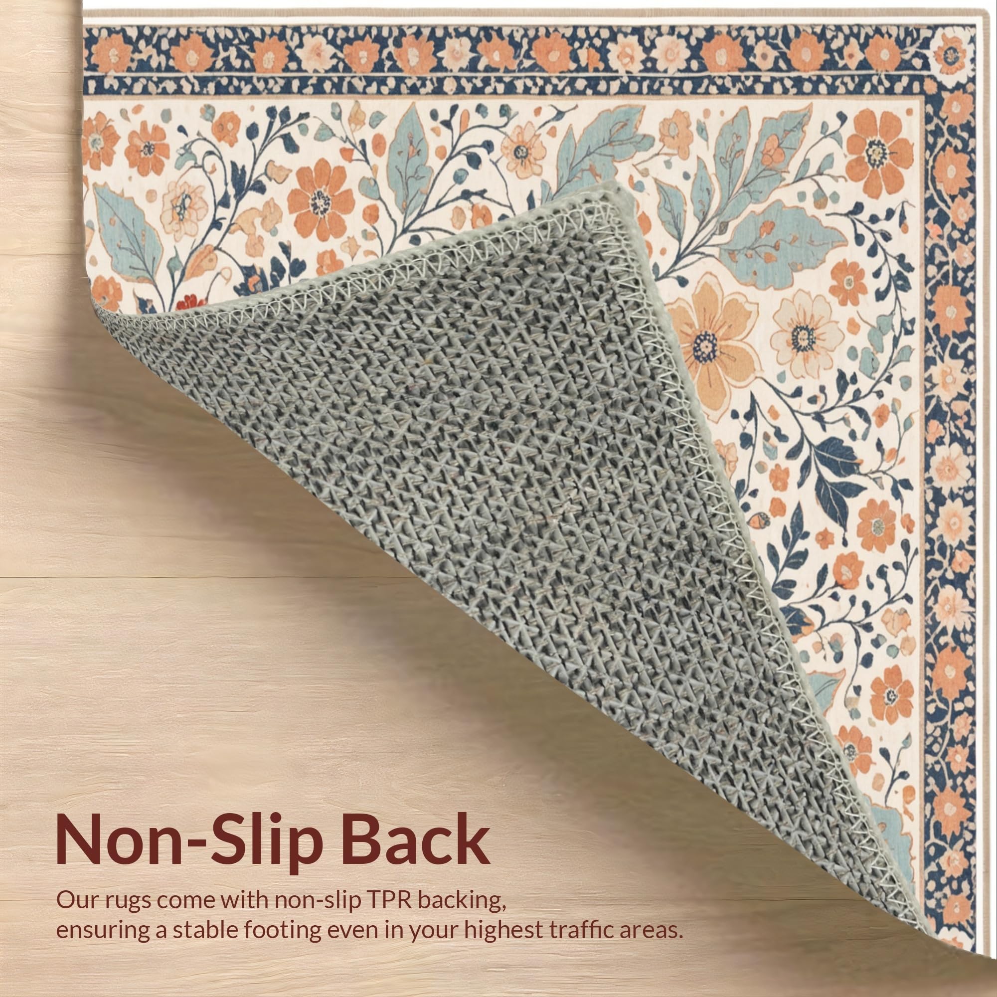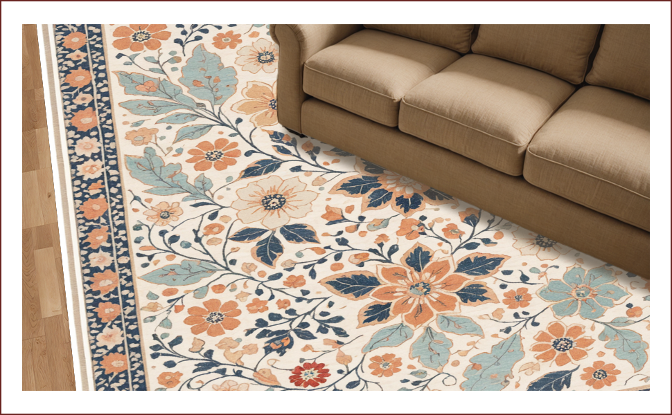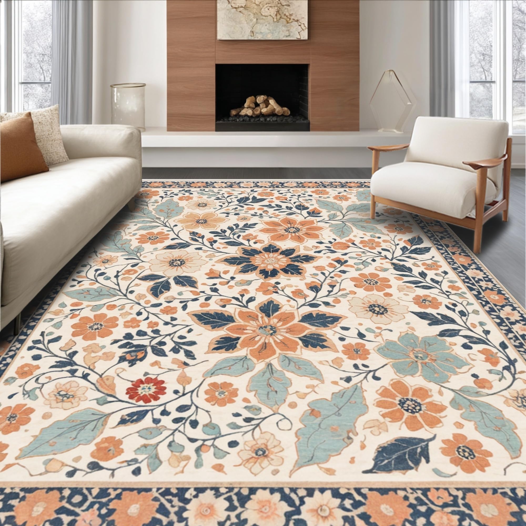 Ultra Soft Area Rug, Non Slip, Stain Resistant, Washable Area Rugs for Living Room, Bedroom, Navy Blue Orange Dining Room Stain-Resistant Boho Rug(Beige) Overview: