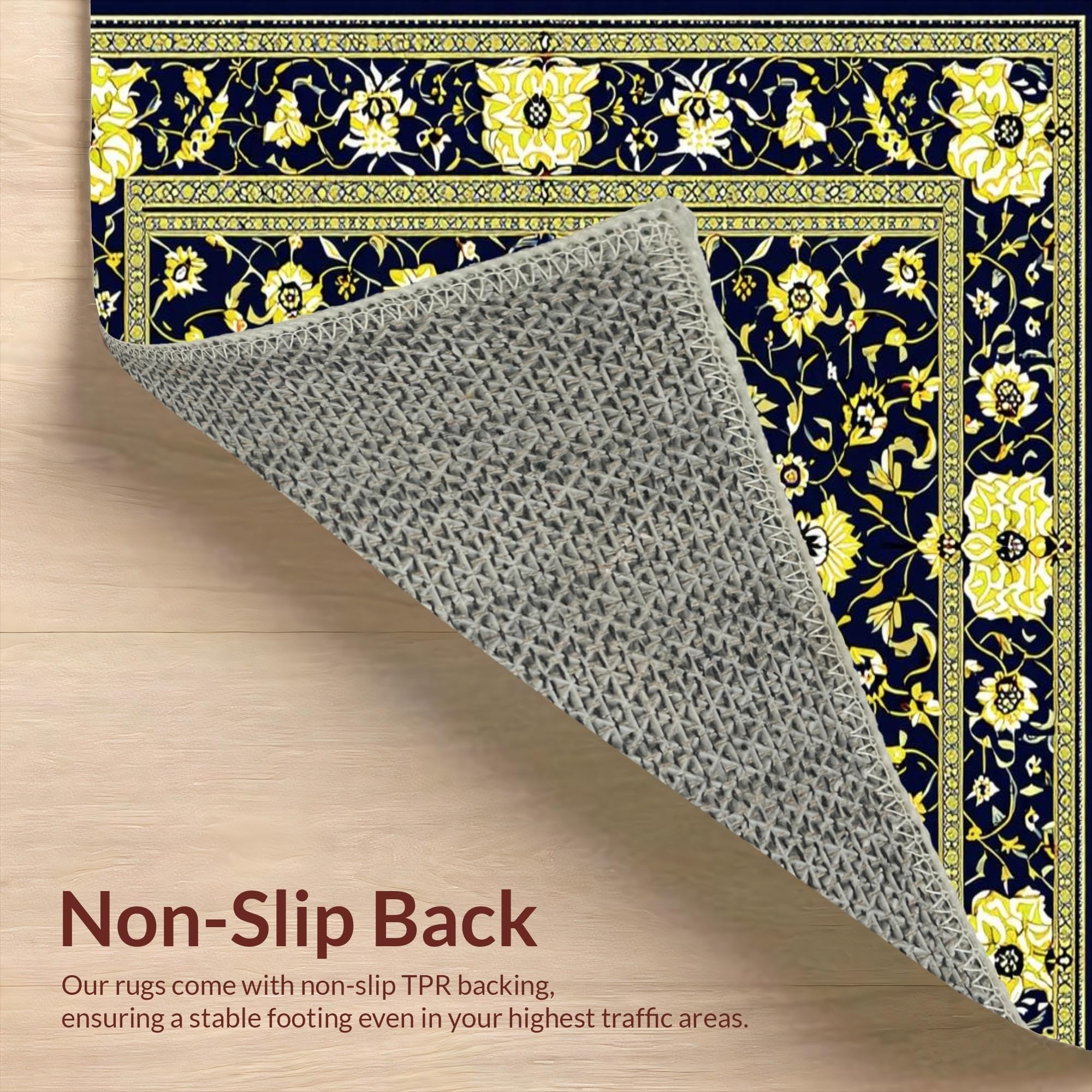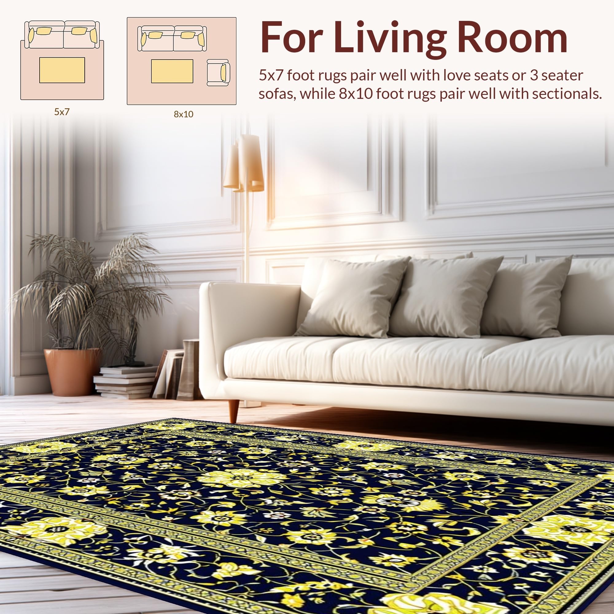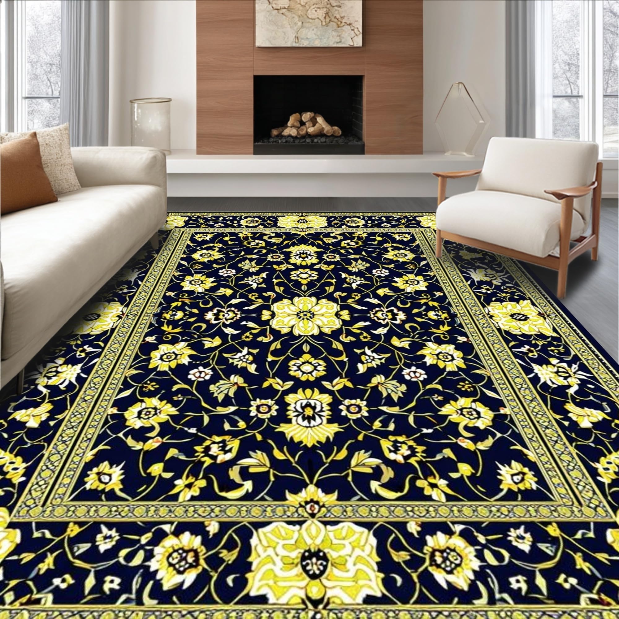 Ultra Soft Area Rug, Non Slip, Stain Resistant, Washable Area Rugs for Living Room, Bedroom, Navy Yellow Geometric Elegance(Black) Overview: