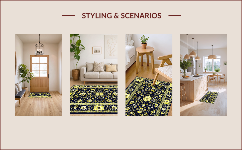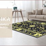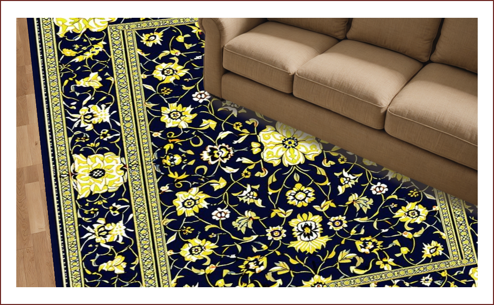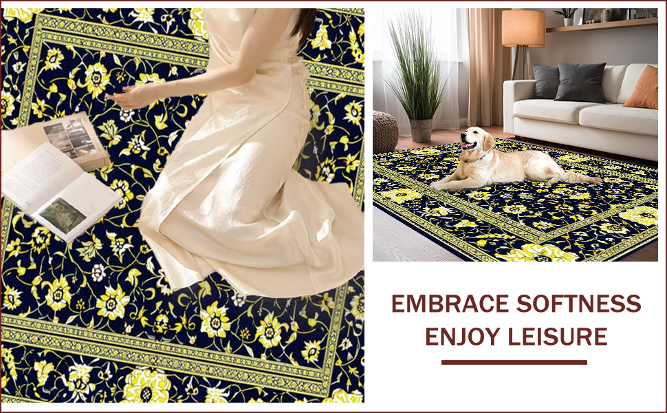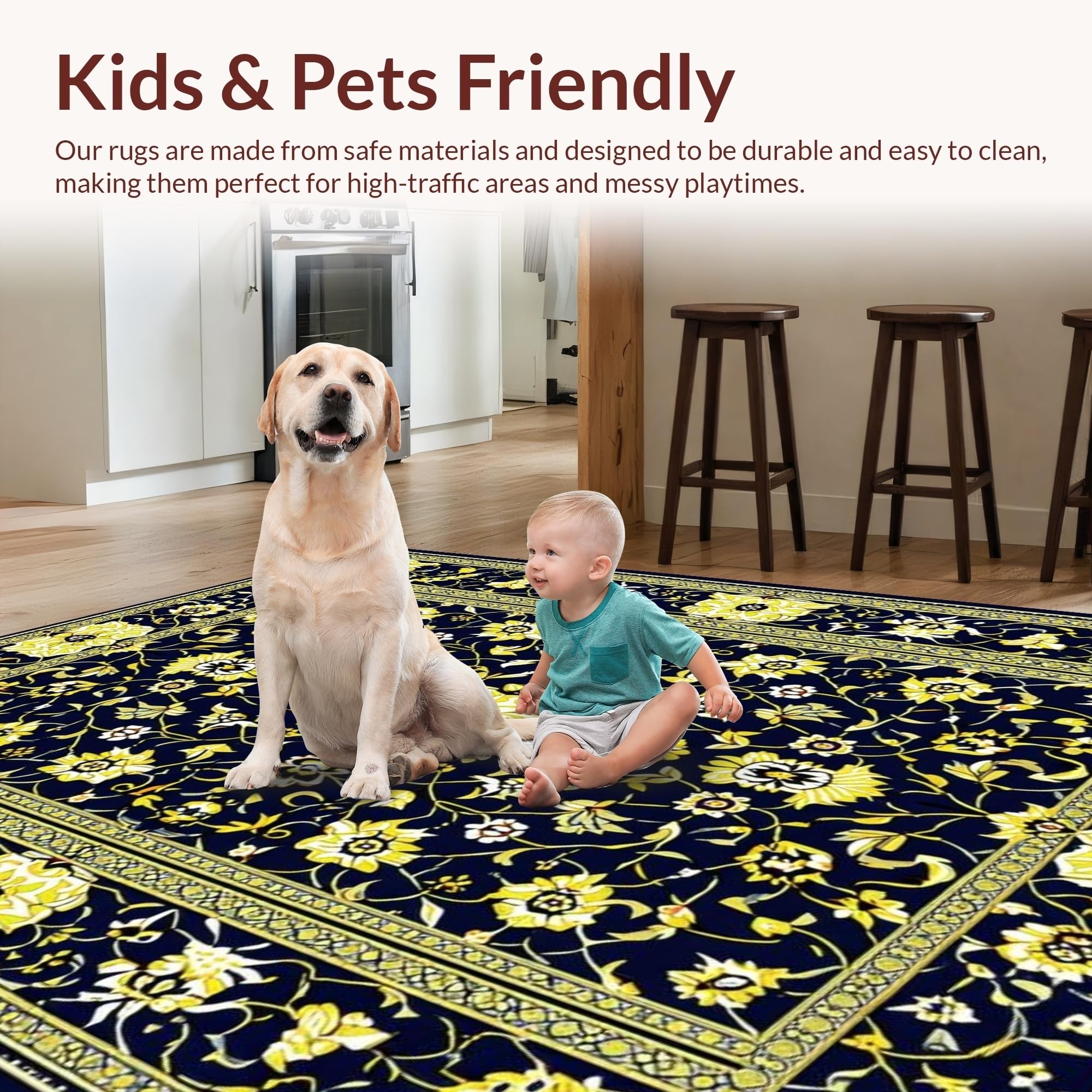 Ultra Soft Area Rug, Non Slip, Stain Resistant, Washable Area Rugs for Living Room, Bedroom, Navy Yellow Geometric Elegance(Black) Overview: