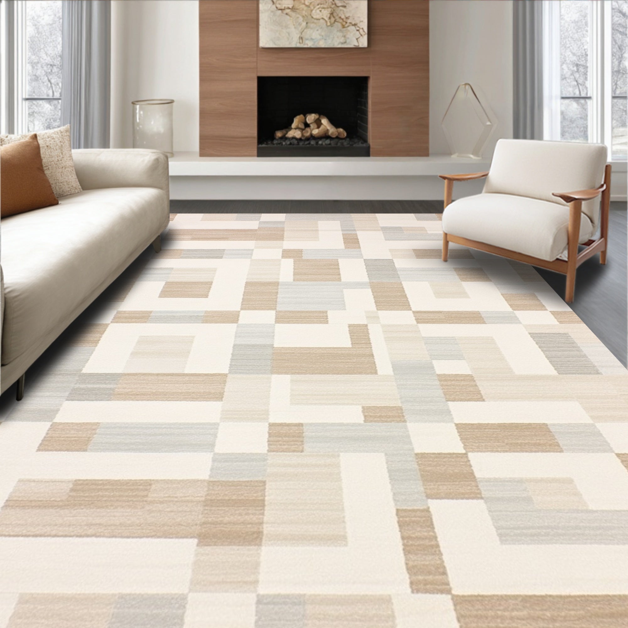 Ultra Soft Area Rug, Non Slip, Stain Resistant, Washable Area Rugs for Living Room, Bedroom, Neutral Harmony Geometric Beige Woven Accent Area(Beige) Overview: