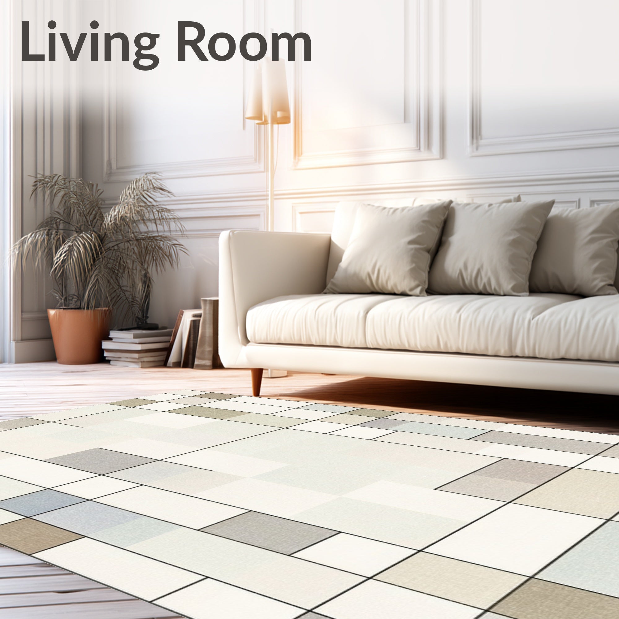 Ultra Soft Area Rug, Non Slip, Stain Resistant, Washable Area Rugs for Living Room, Bedroom, Neutral Modern Grid Area with Subtle Overlapping Rectilinear(Beige) Overview: