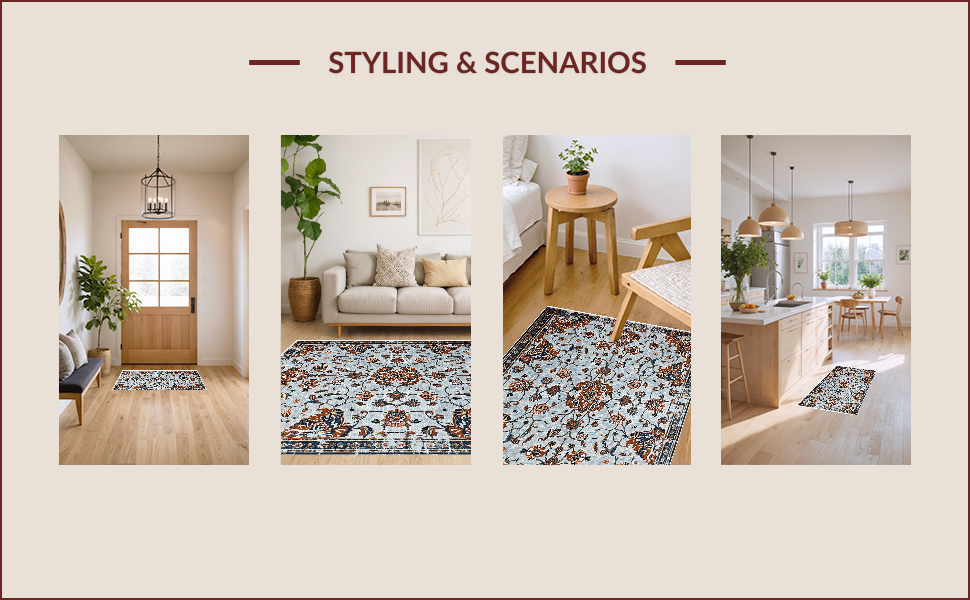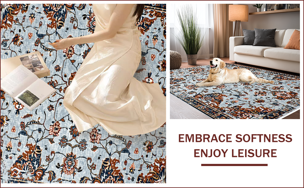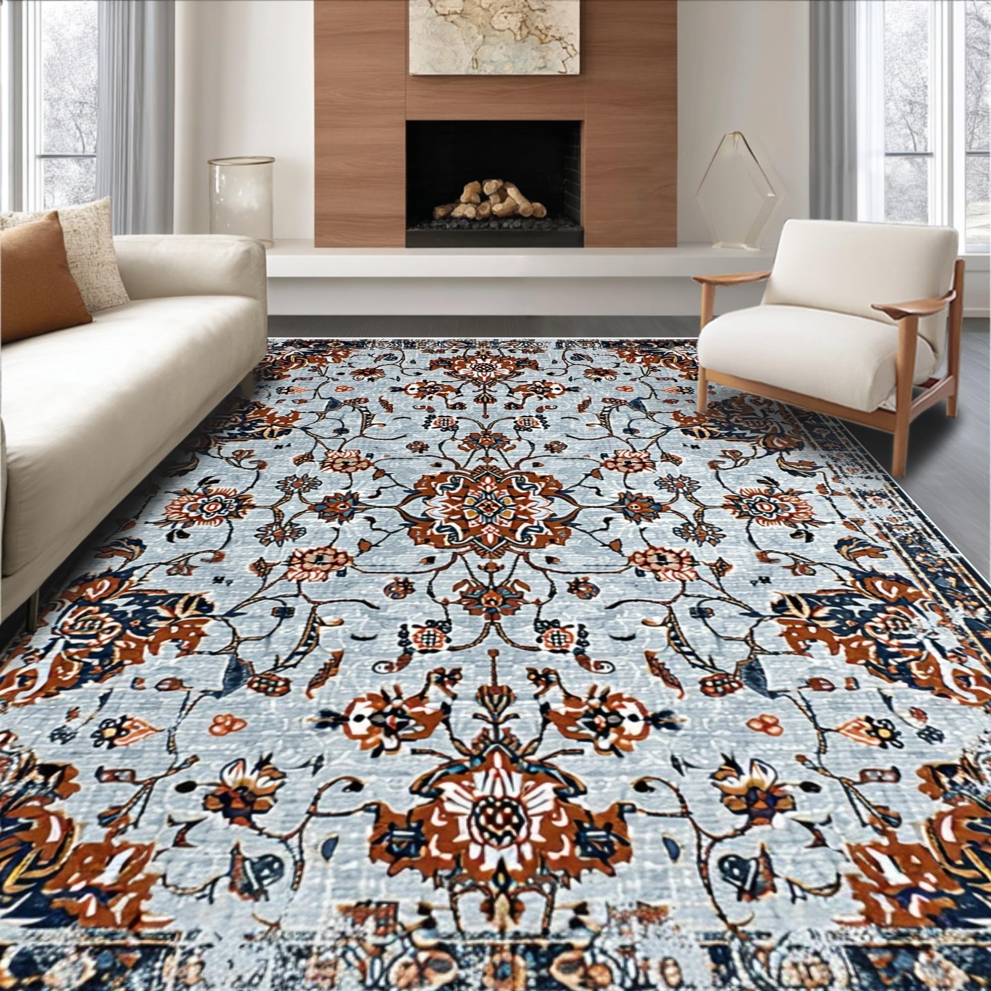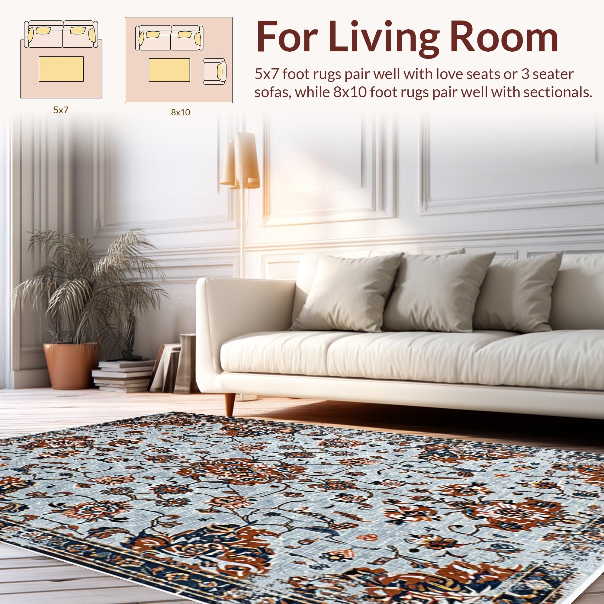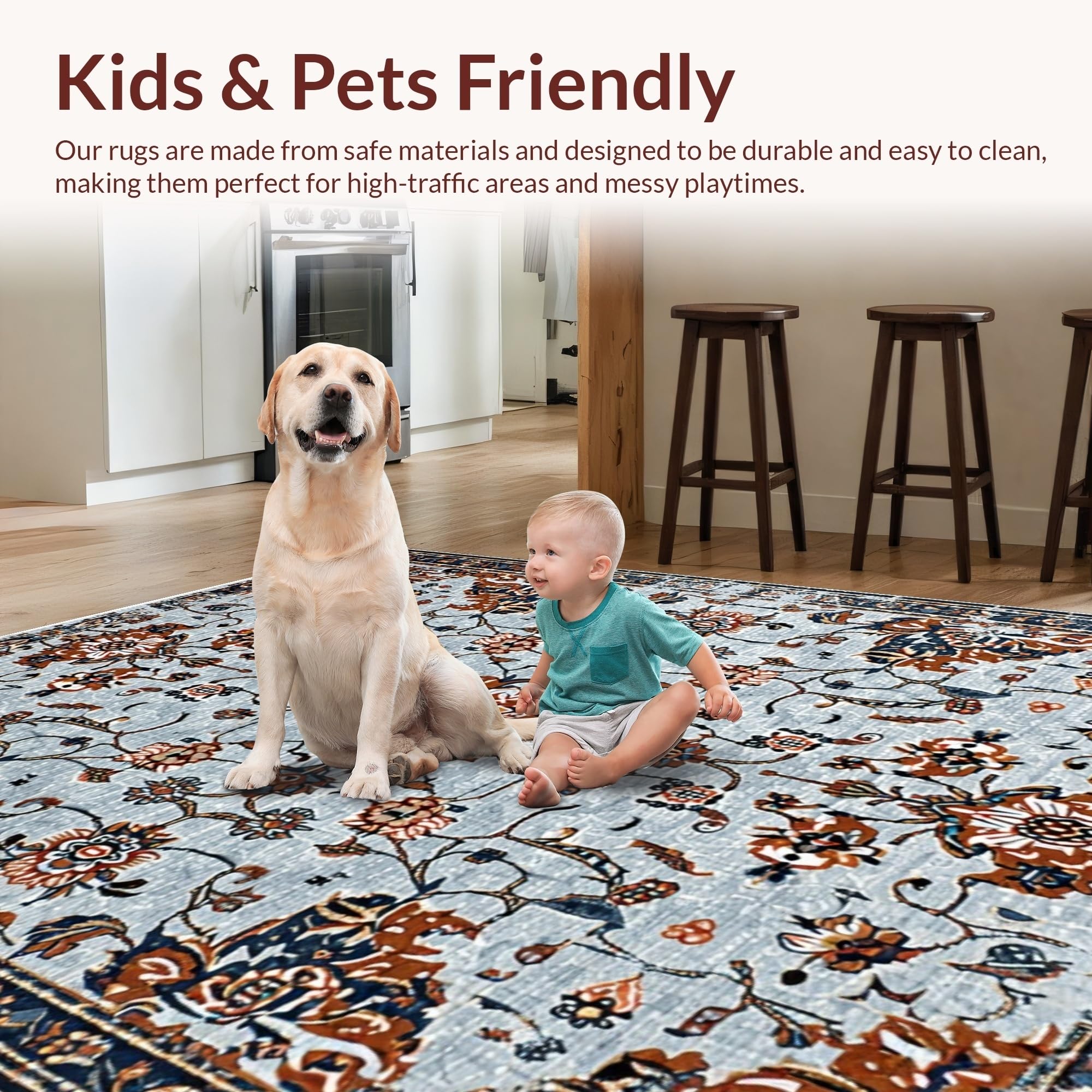 Ultra Soft Area Rug, Non Slip, Stain Resistant, Washable Area Rugs for Living Room, Bedroom, Neutral Oriental Large Area Rug for Under Dining Table(Gray) Overview: