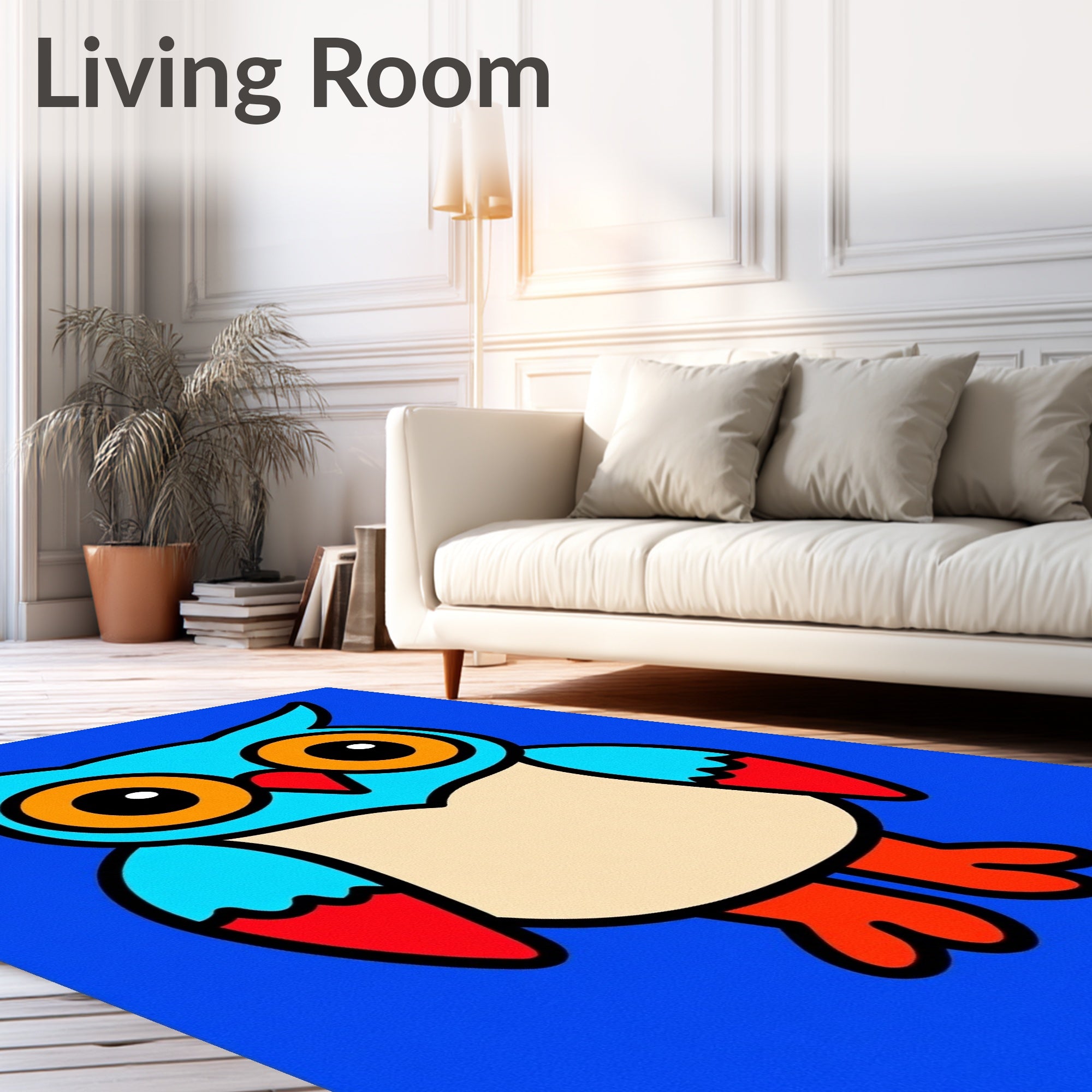 Ultra Soft Area Rug, Non Slip, Stain Resistant, Washable Area Rugs for Living Room, Bedroom, Nocturnal Wisdom Creature Juvenile Artisan Crafted(Blue) Overview: