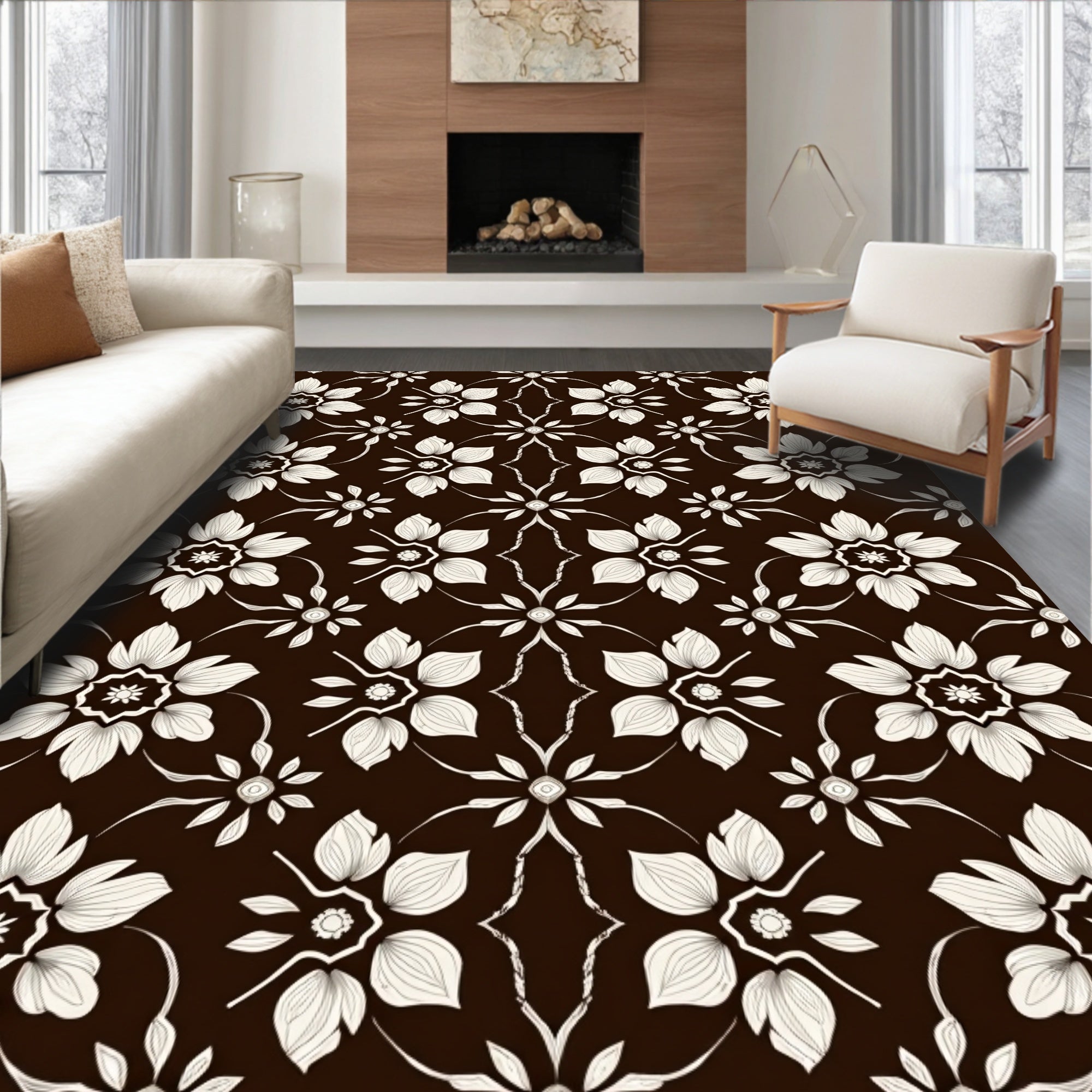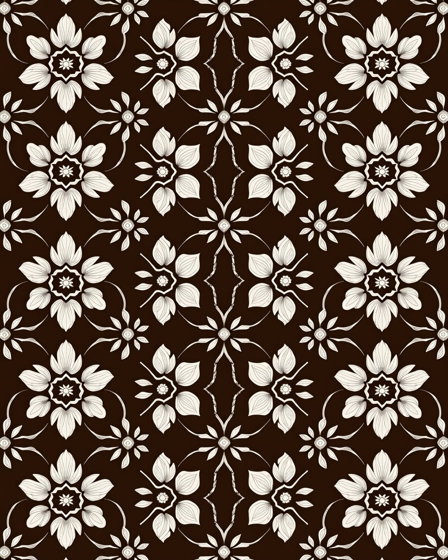 Noir Blossom Interlocking Floral Motif Modern Elegance Design(Brown)