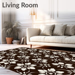 Flatwoven High Traffic Area Rug, Noir Blossom Interlocking Floral Motif Modern Elegance Design, Non Slip, Stain Resistant, Washable Area Rugs for Living Room, Bedroom (Brown) Overview: