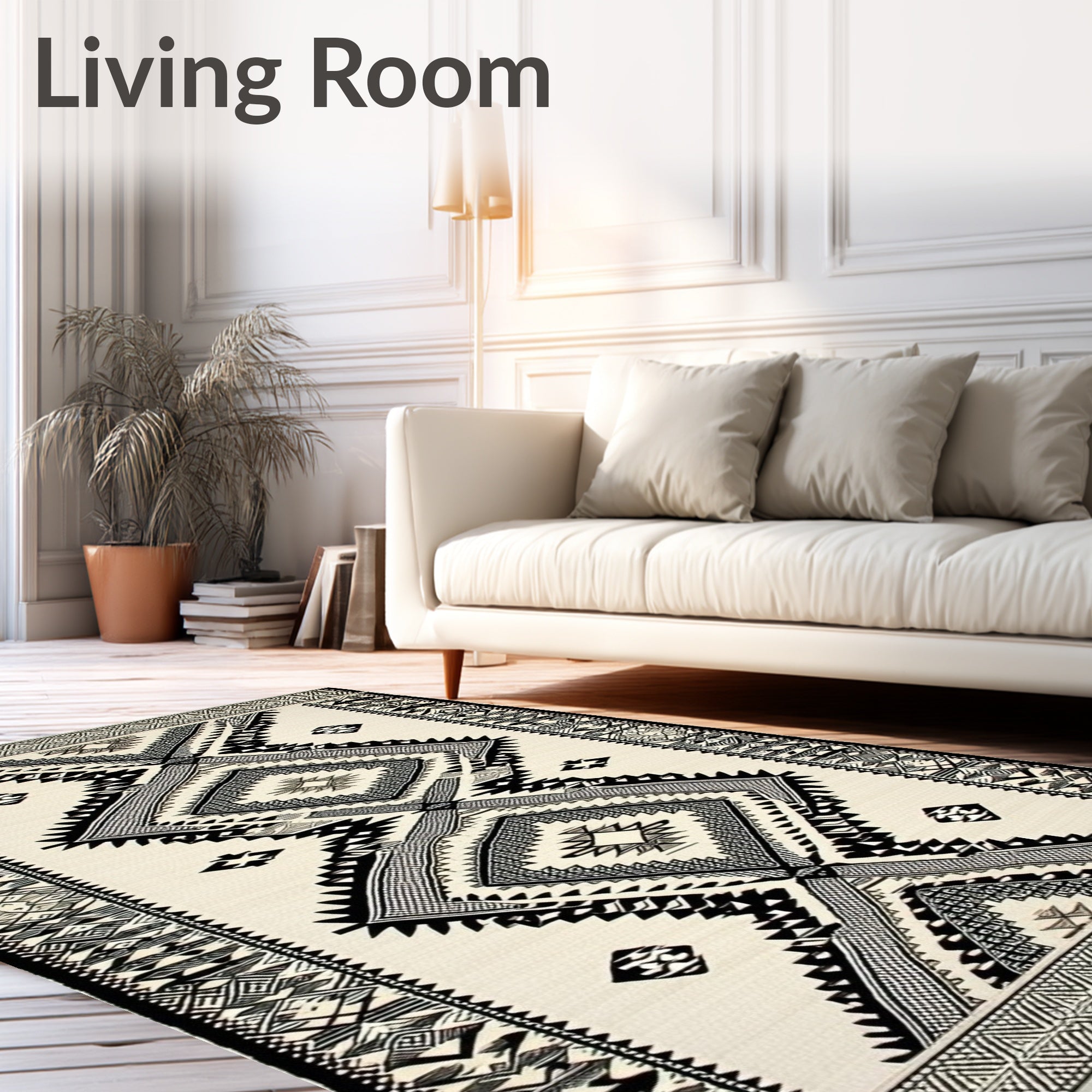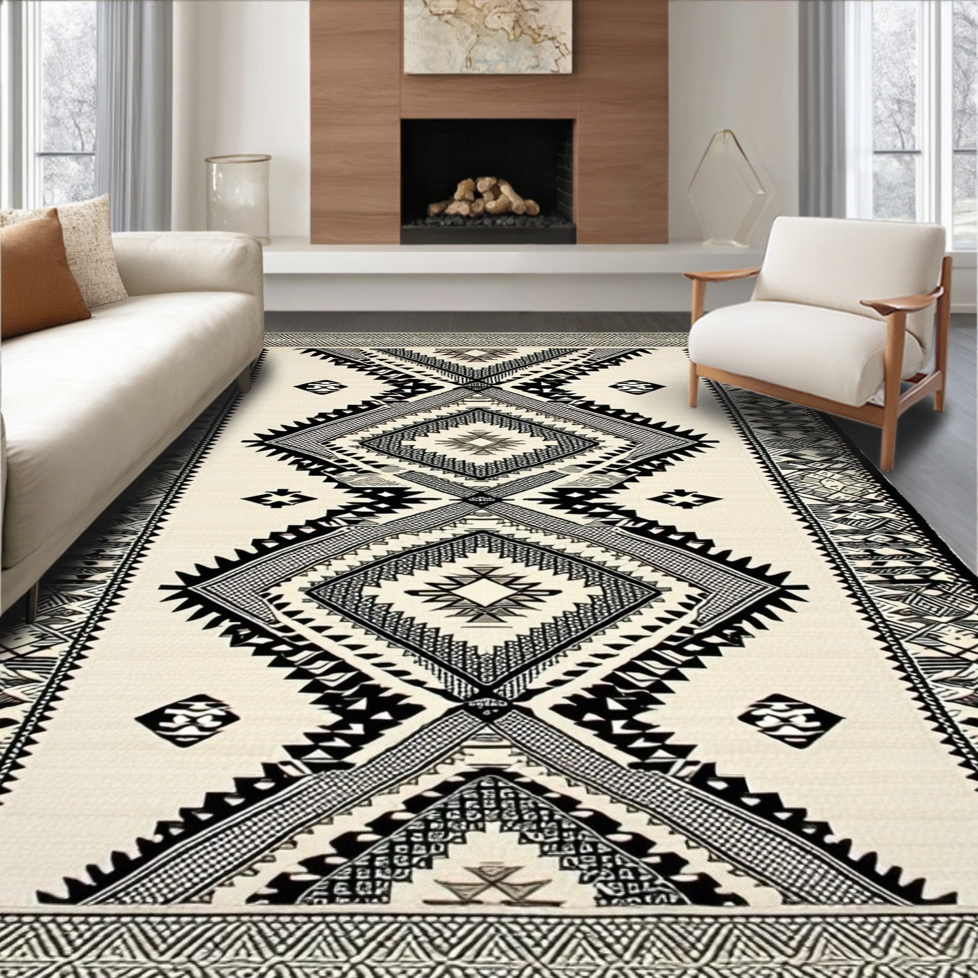 Ultra Soft Area Rug, Non Slip, Stain Resistant, Washable Area Rugs for Living Room, Bedroom, Nomad Lineage Runner with Tribal Diamonds and Ethnic Chevron Area(Black) Overview: