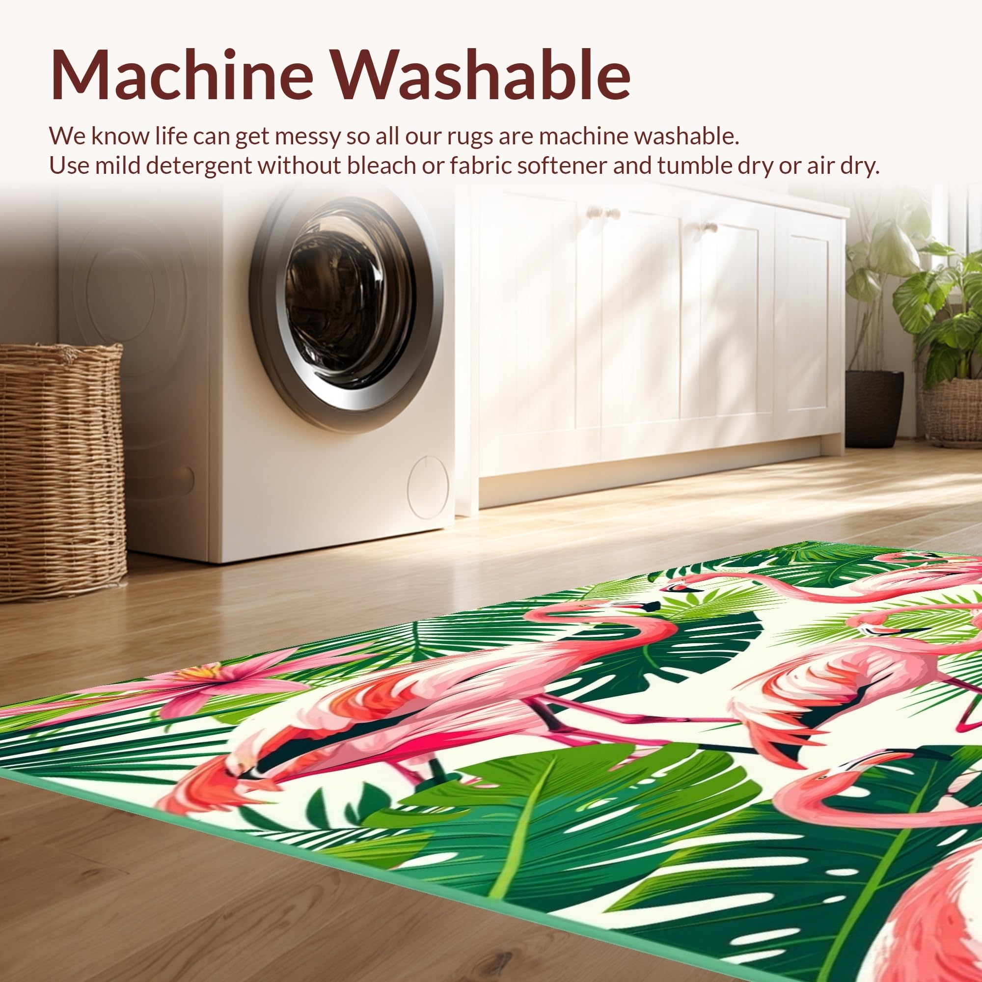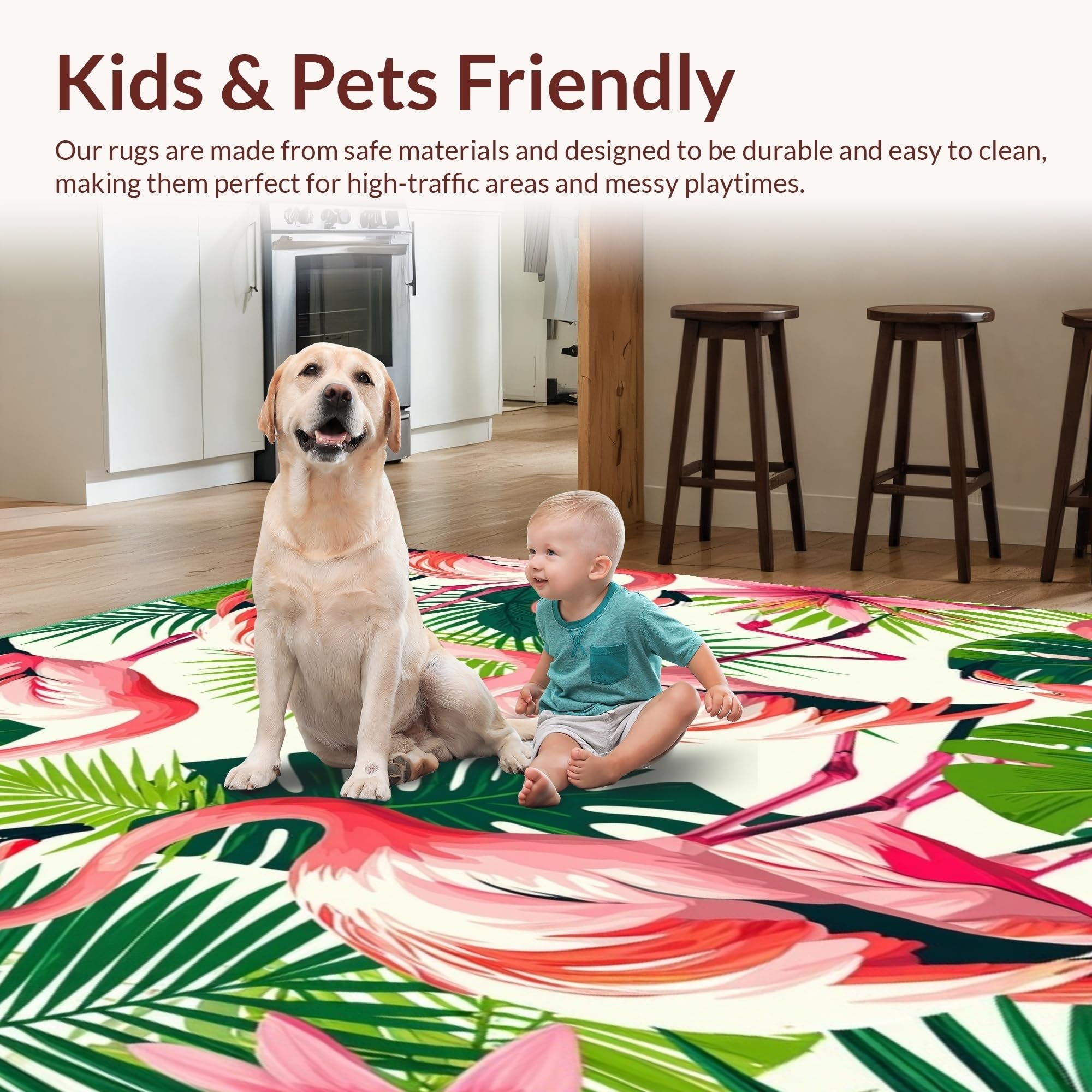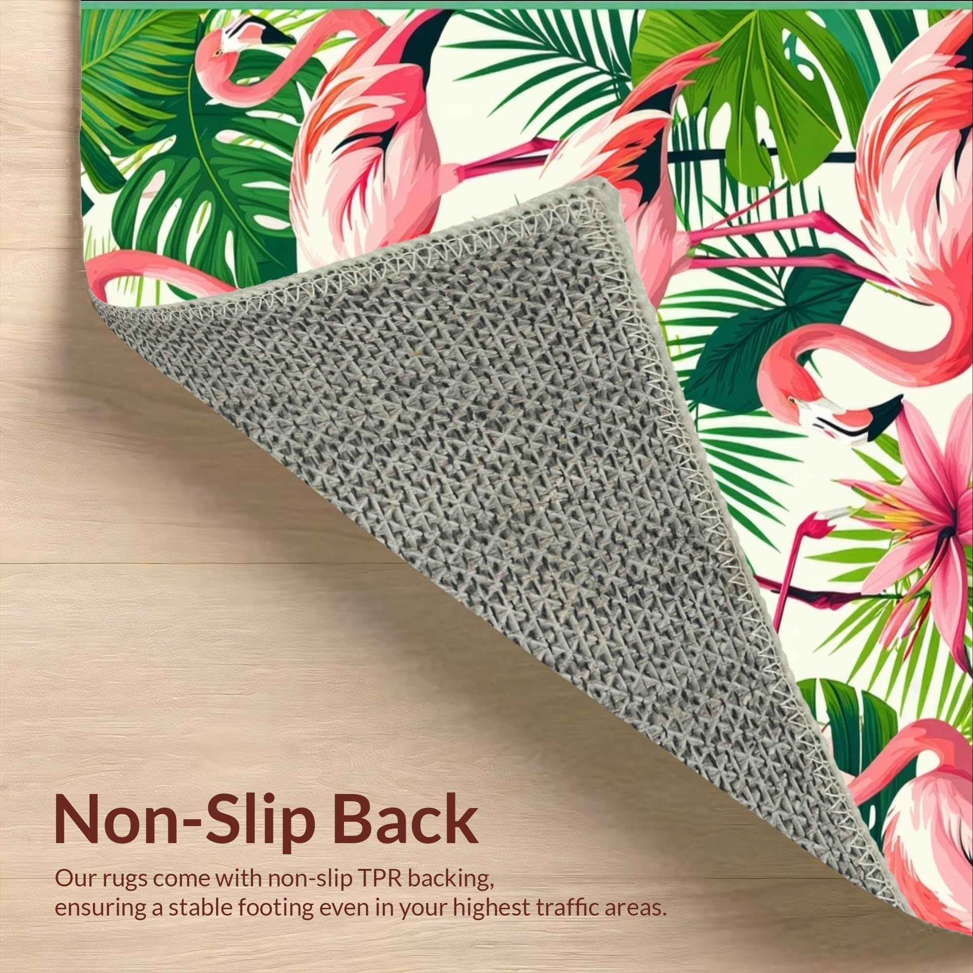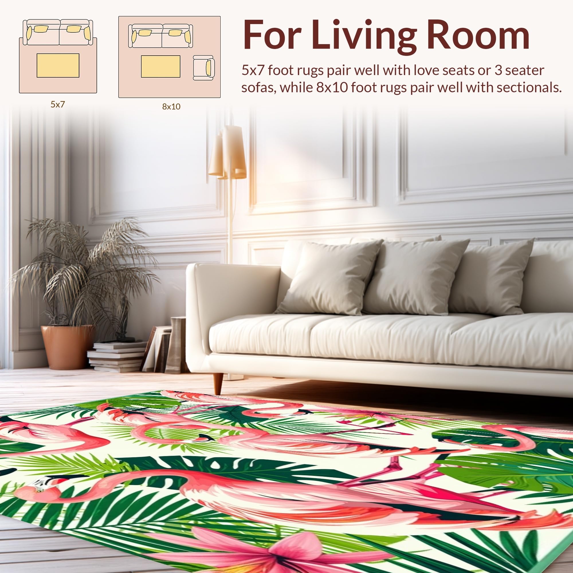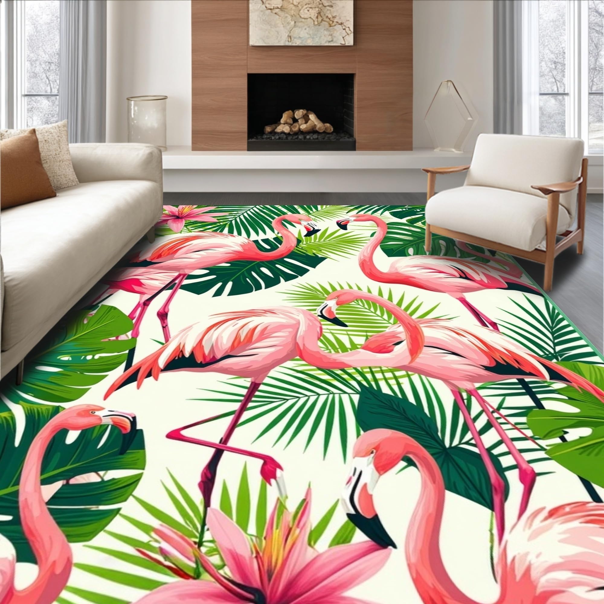Ultra Soft Area Rug, Non Slip, Stain Resistant, Washable Area Rugs for Living Room, Bedroom, Non Shedding Tropical Pink Flamingo Pattern Rug(Pink) Overview: