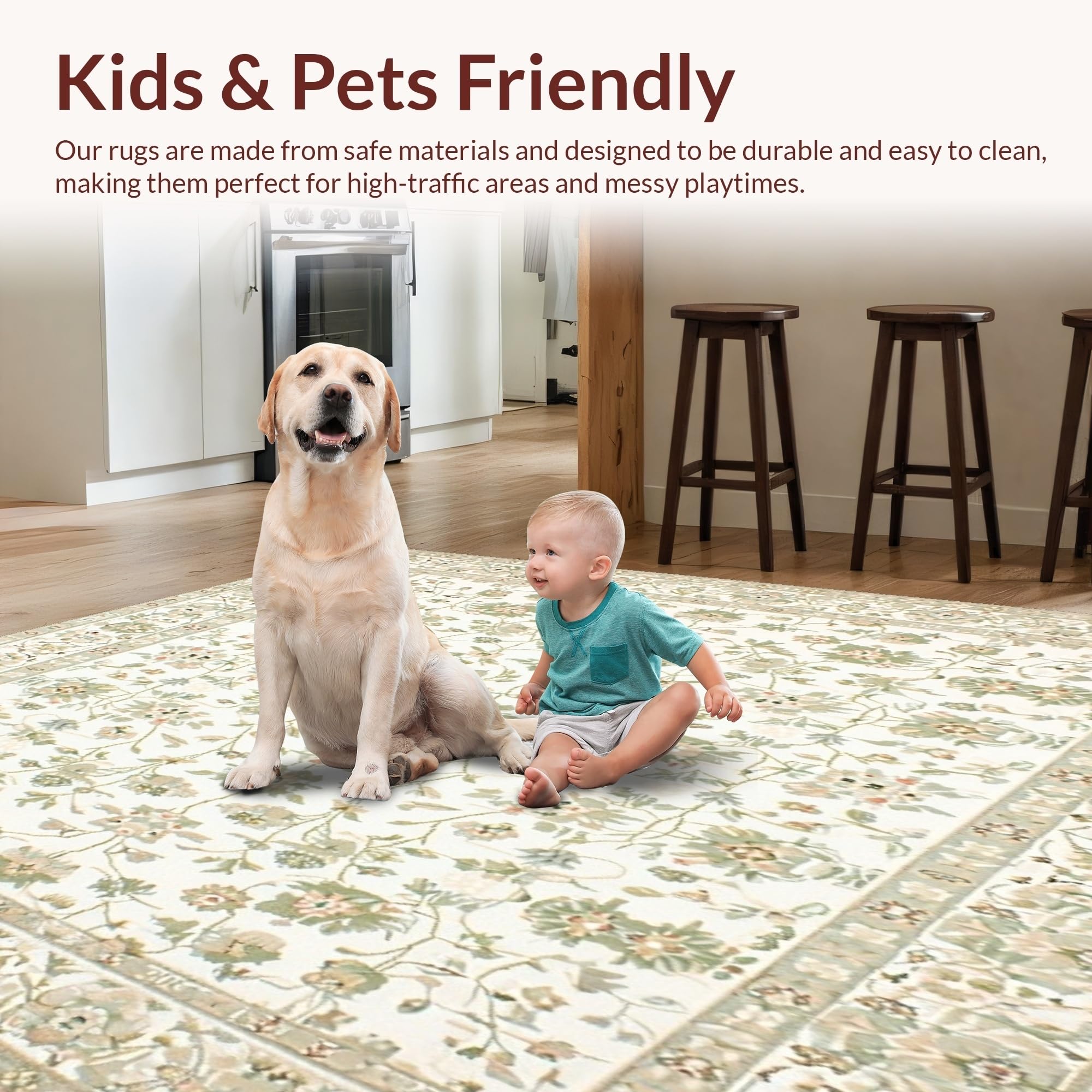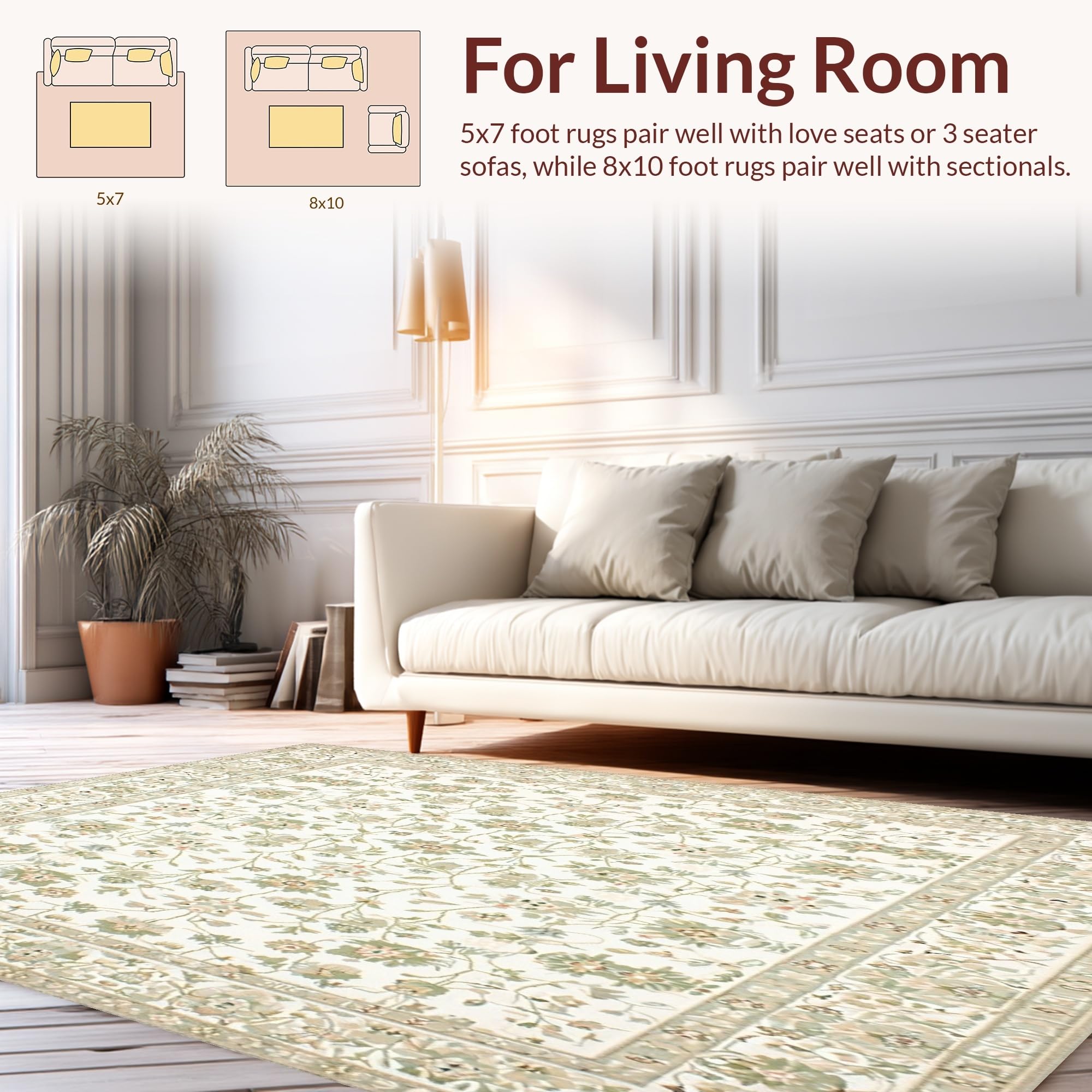 Ultra Soft Area Rug, Non Slip, Stain Resistant, Washable Area Rugs for Living Room, Bedroom, Non Slip Area in Beige and Sage Green Farmhouse Flower Style(Beige) Overview: