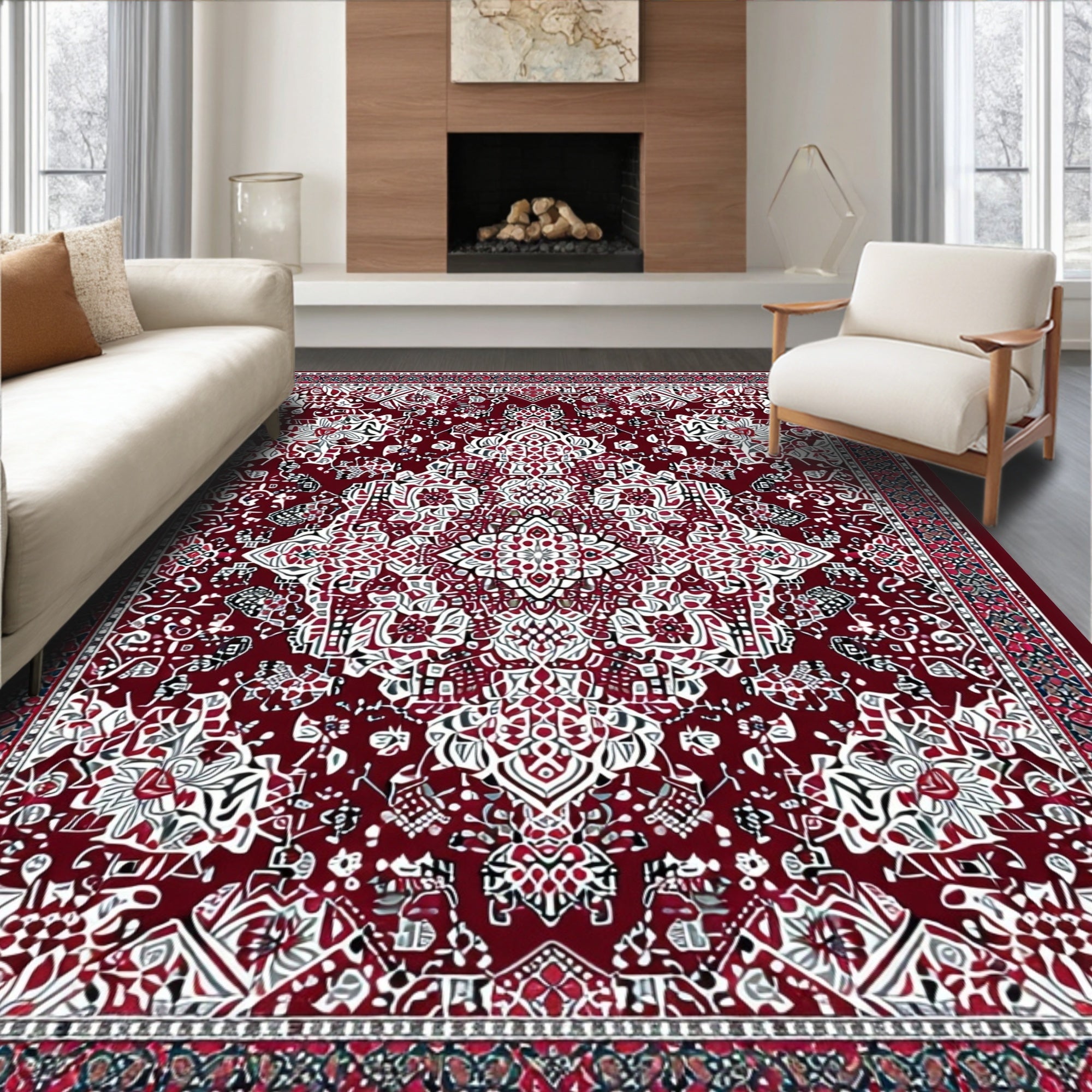 Ultra Soft Area Rug, Non Slip, Stain Resistant, Washable Area Rugs for Living Room, Bedroom, Non Slip Rubber Stair Runner Pack Staircase Step Treads(Red) Overview: