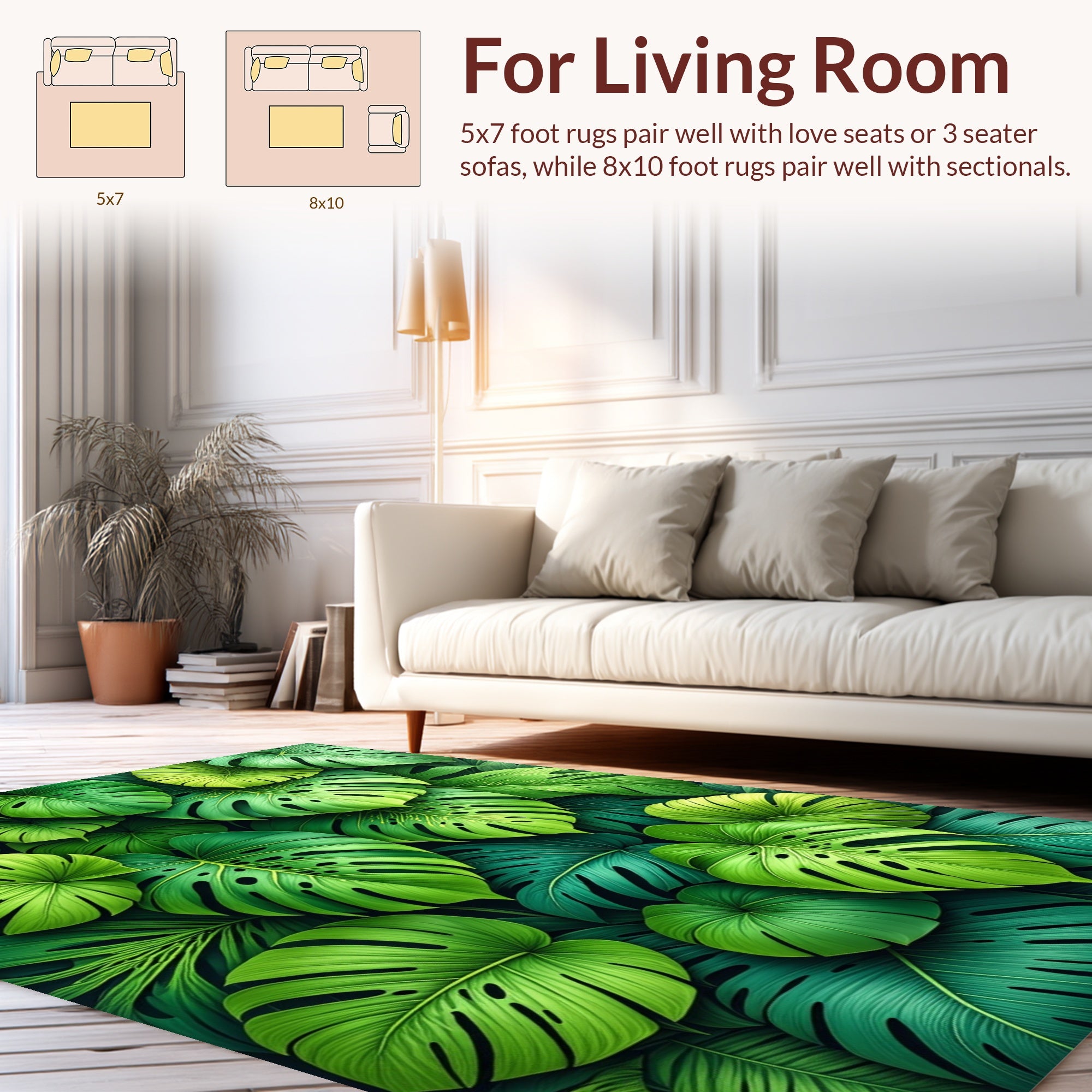 Flatwoven High Traffic Area Rug, Non Slip Tropical Green, Non Slip, Stain Resistant, Washable Area Rugs for Living Room, Bedroom (Green) Overview: