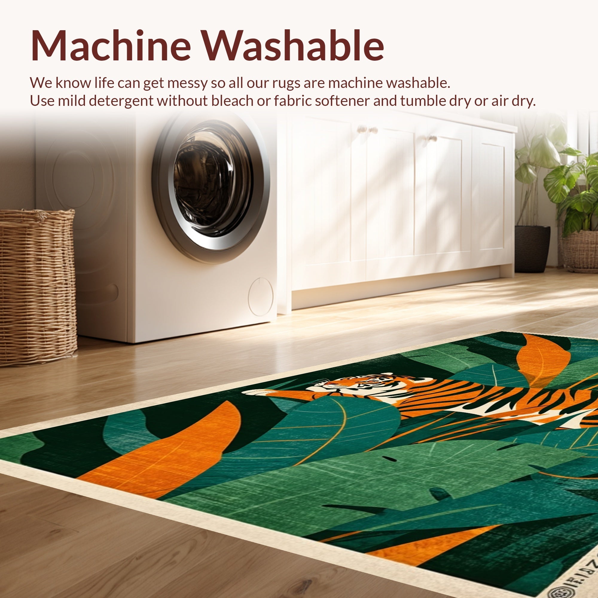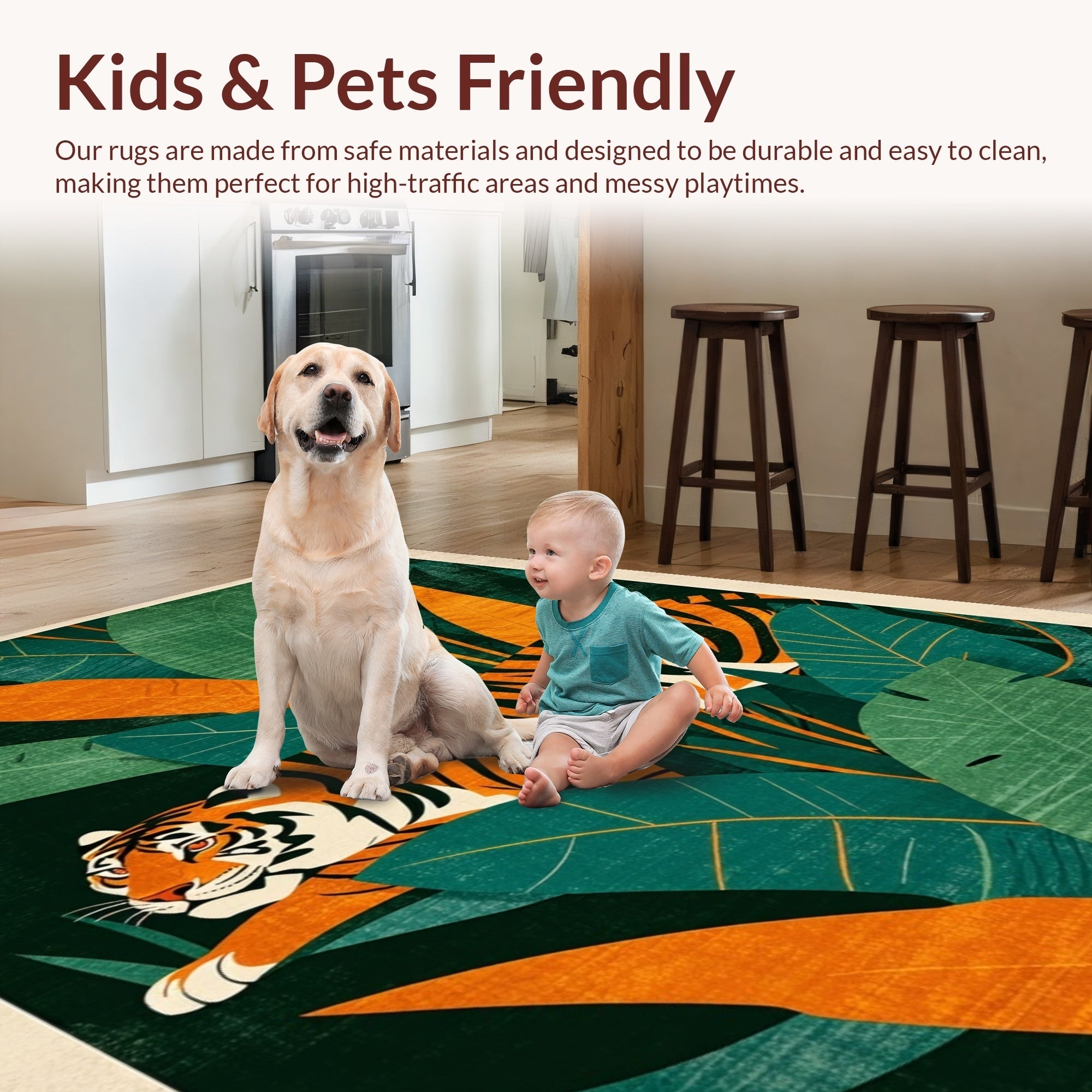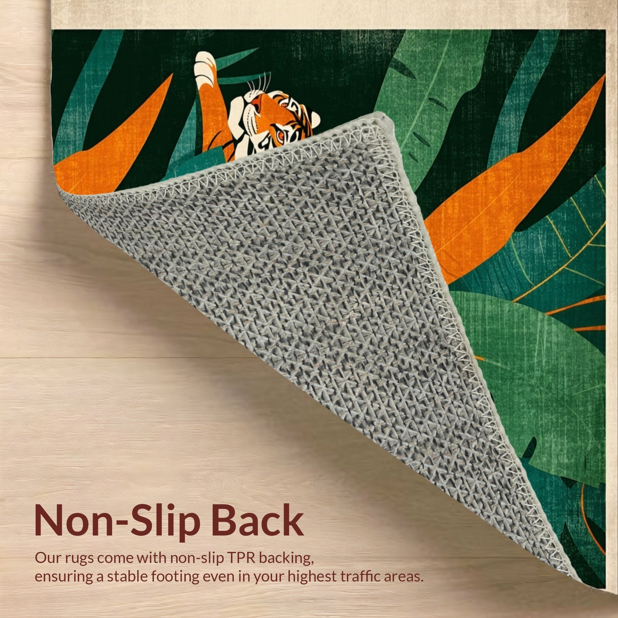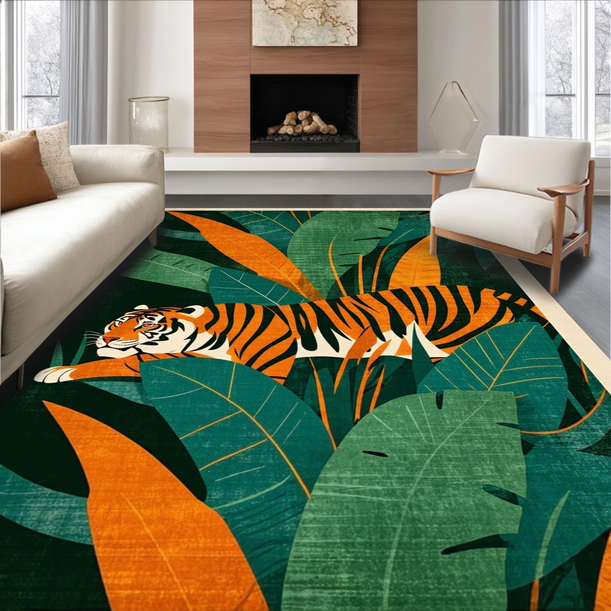 Ultra Soft Area Rug, Non Slip, Stain Resistant, Washable Area Rugs for Living Room, Bedroom, Non-Slip Ultra Thin Bedroom Jungle Tiger Carpet(Green) Overview: