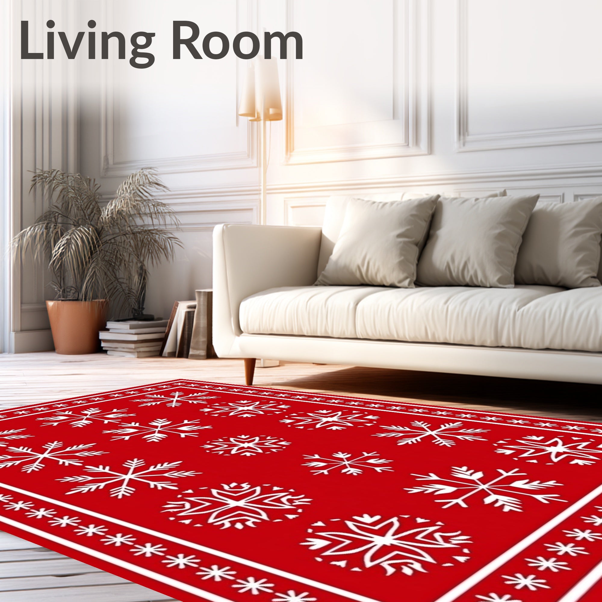 Ultra Soft Area Rug, Non Slip, Stain Resistant, Washable Area Rugs for Living Room, Bedroom, Nordic Crystal Celebration Decorative(Red) Overview: