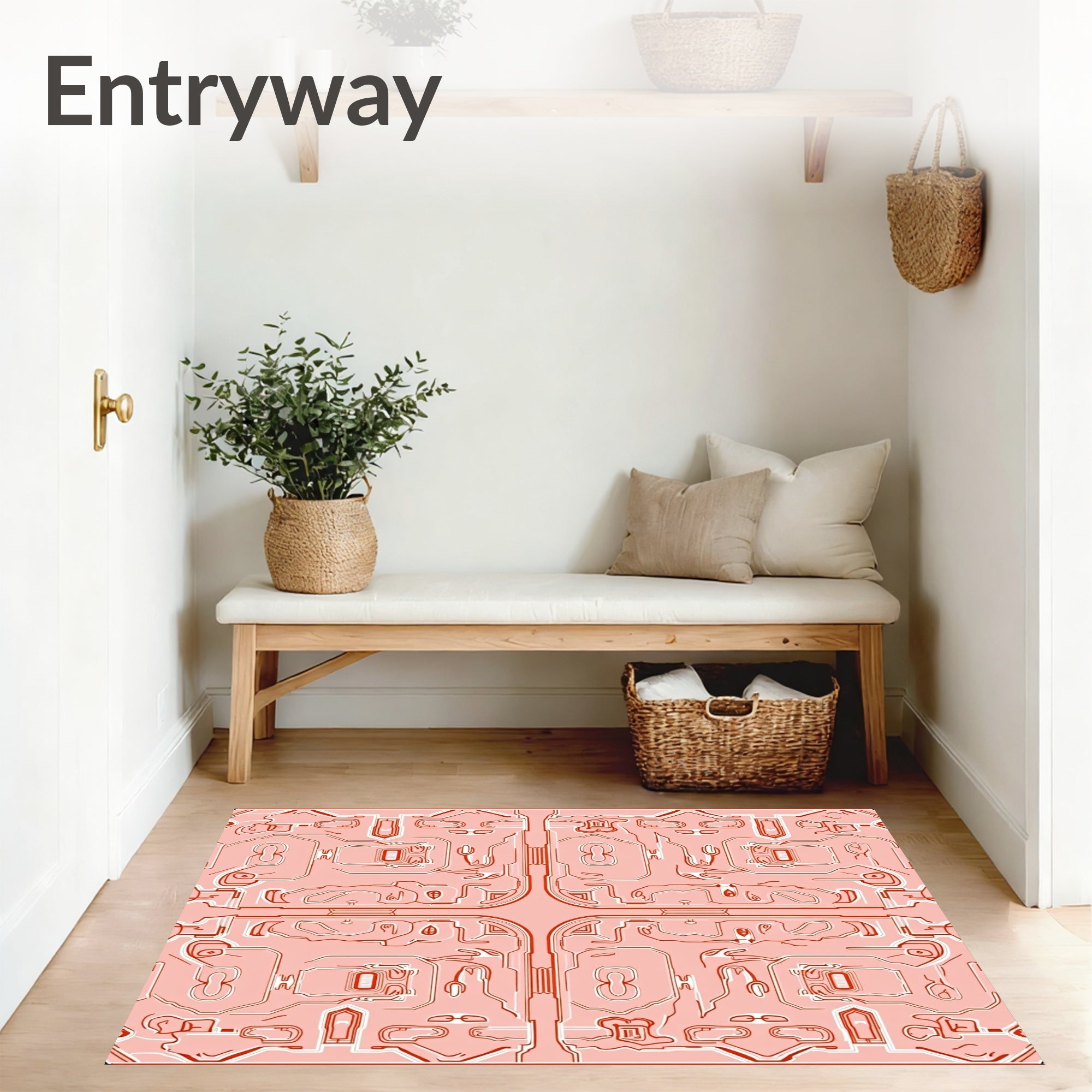 Ultra Soft Area Rug, Non Slip, Stain Resistant, Washable Area Rugs for Living Room, Bedroom, Nordic Inspired Interlocking Maze with Subtle Influences(Pink) Overview: