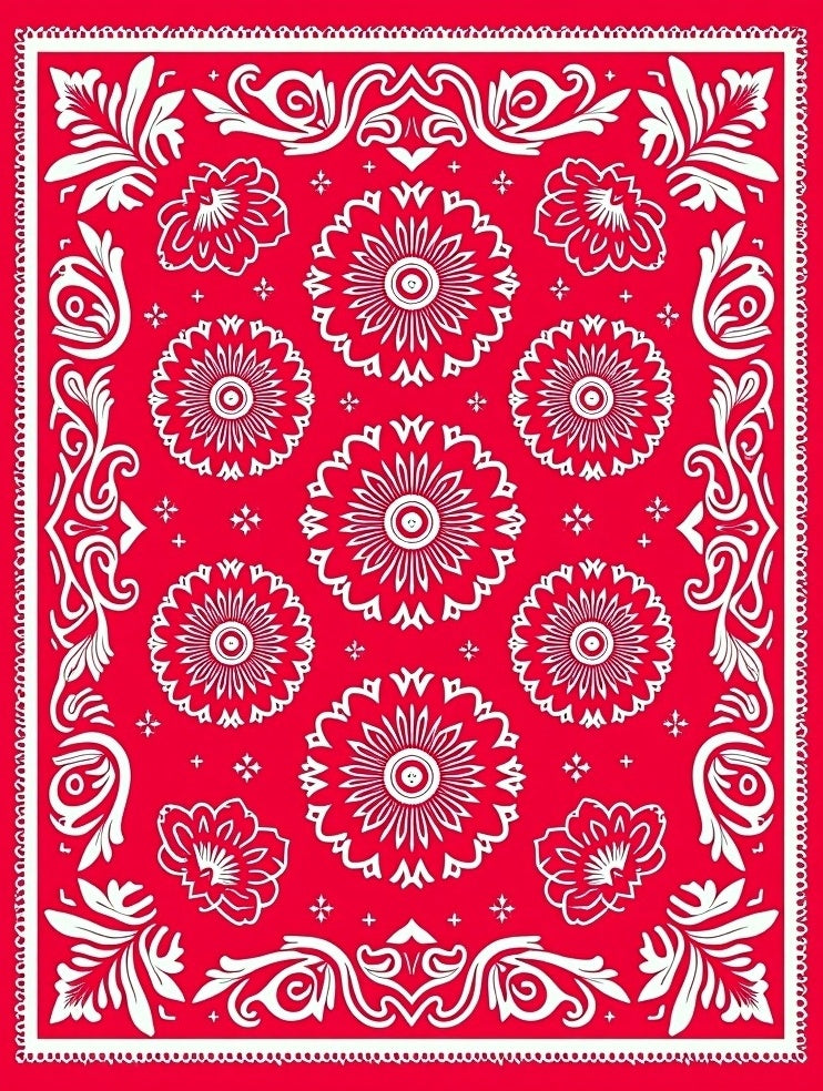 Nordic Inspired Starburst Medallion and Botanical Scrollwork Design(Red)